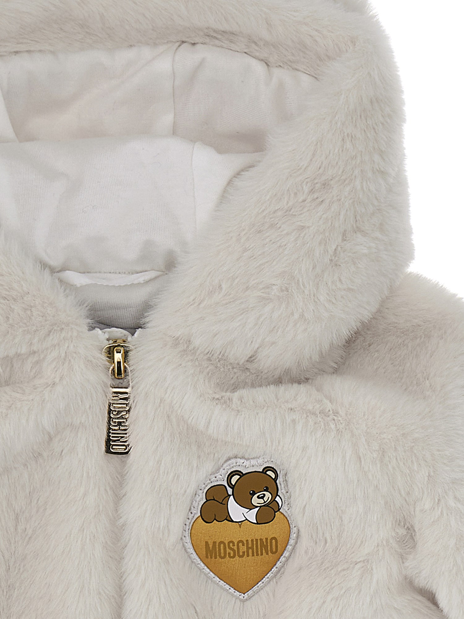 The Teddy Bear Hooded Jacket from Moschino combines playful design with high fashion, featuring an adorable teddy bear motif that embodies the brand's signature whimsical style. Crafted from premium materials, this jacket offers both comfort and warmth, making it an ideal choice for casual outings or cosy days at home. The hood adds an extra layer of protection against the elements, while the unique design ensures that the wearer stands out with a touch of charm and sophistication.