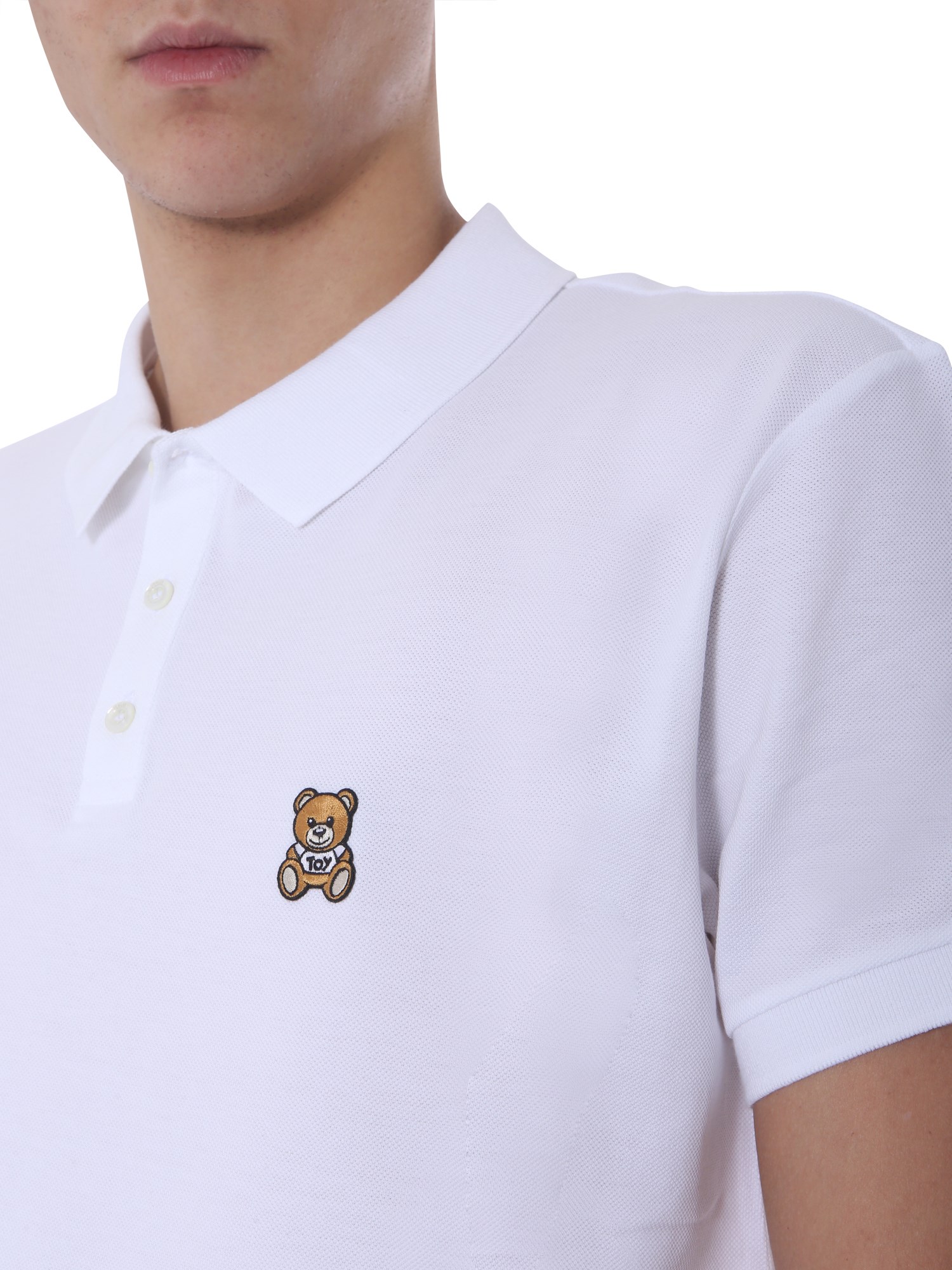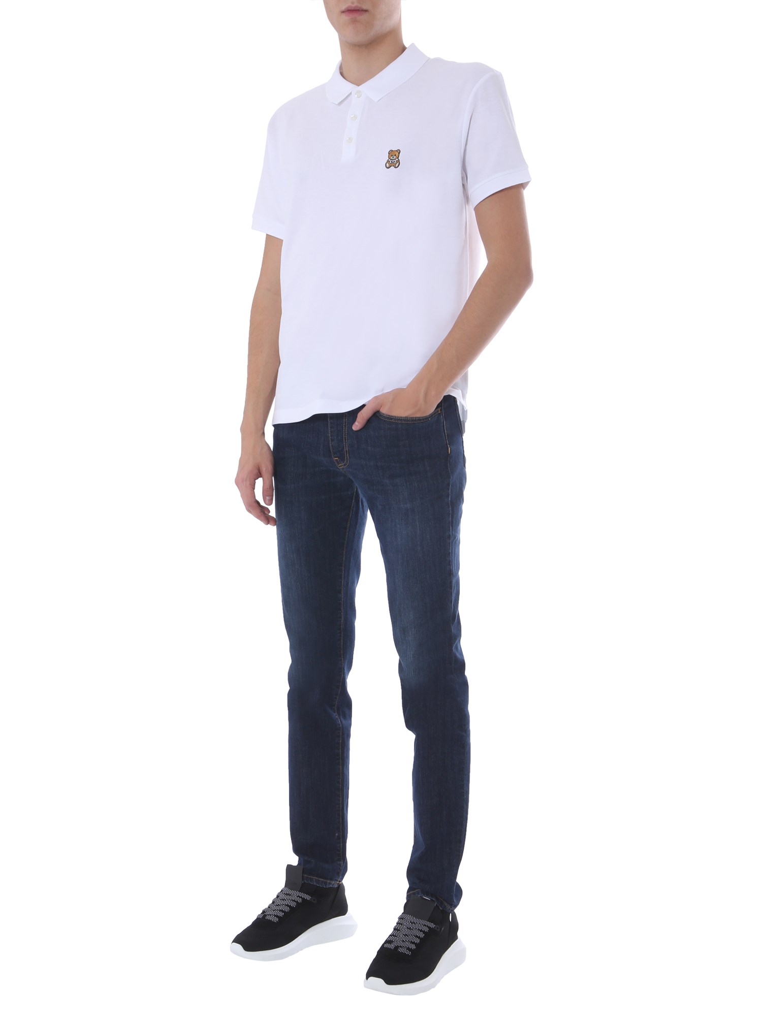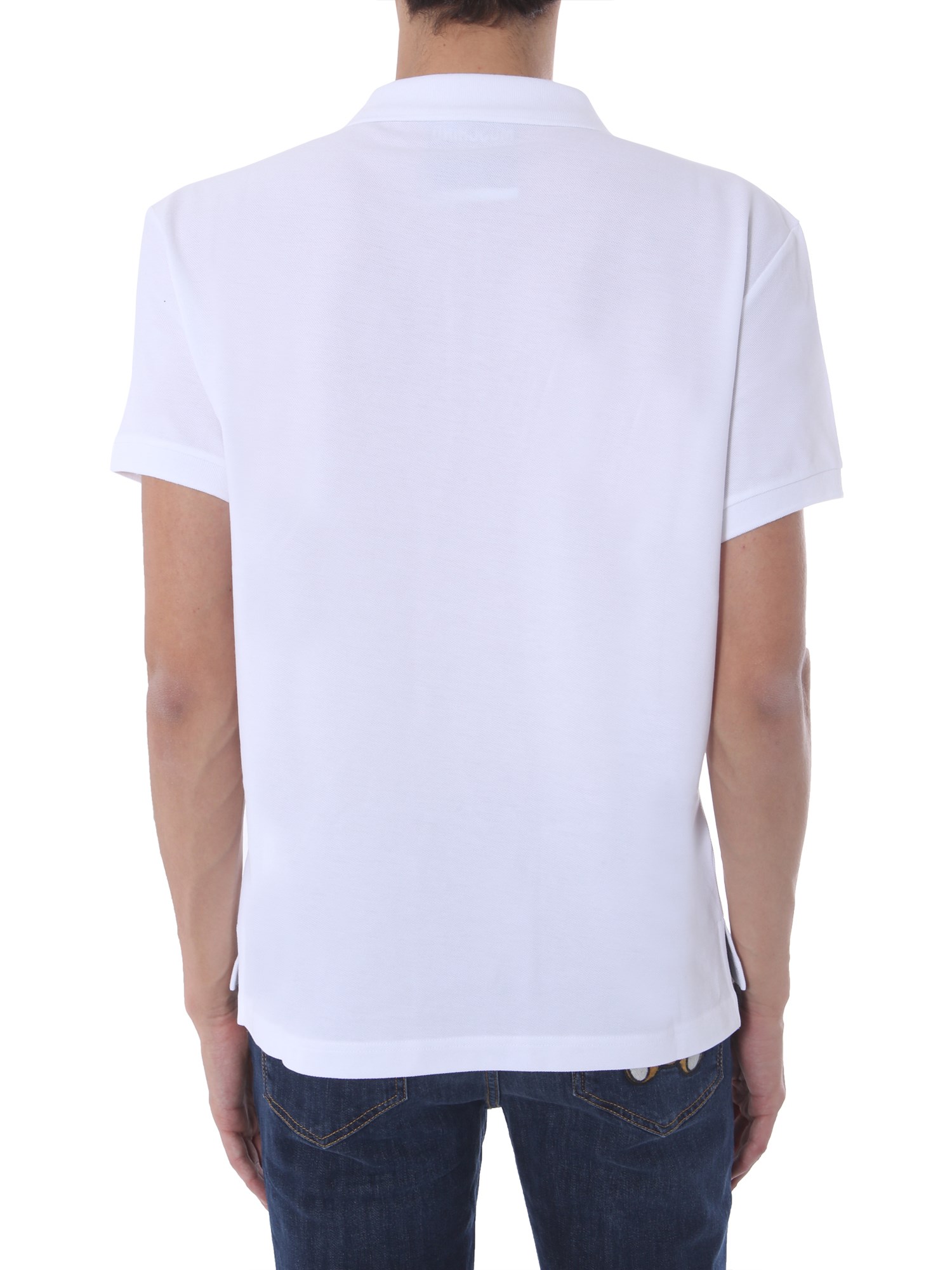 Polo tees are the need of every office goer, so why wait? Just get this teddy bear polo by Moschino. It has a subtle design with a three-button plaque and classic collar at the front. The tiny teddy bear patch adds a funky touch to the look. The top-quality cotton fabric promises a breathable experience throughout the wear.