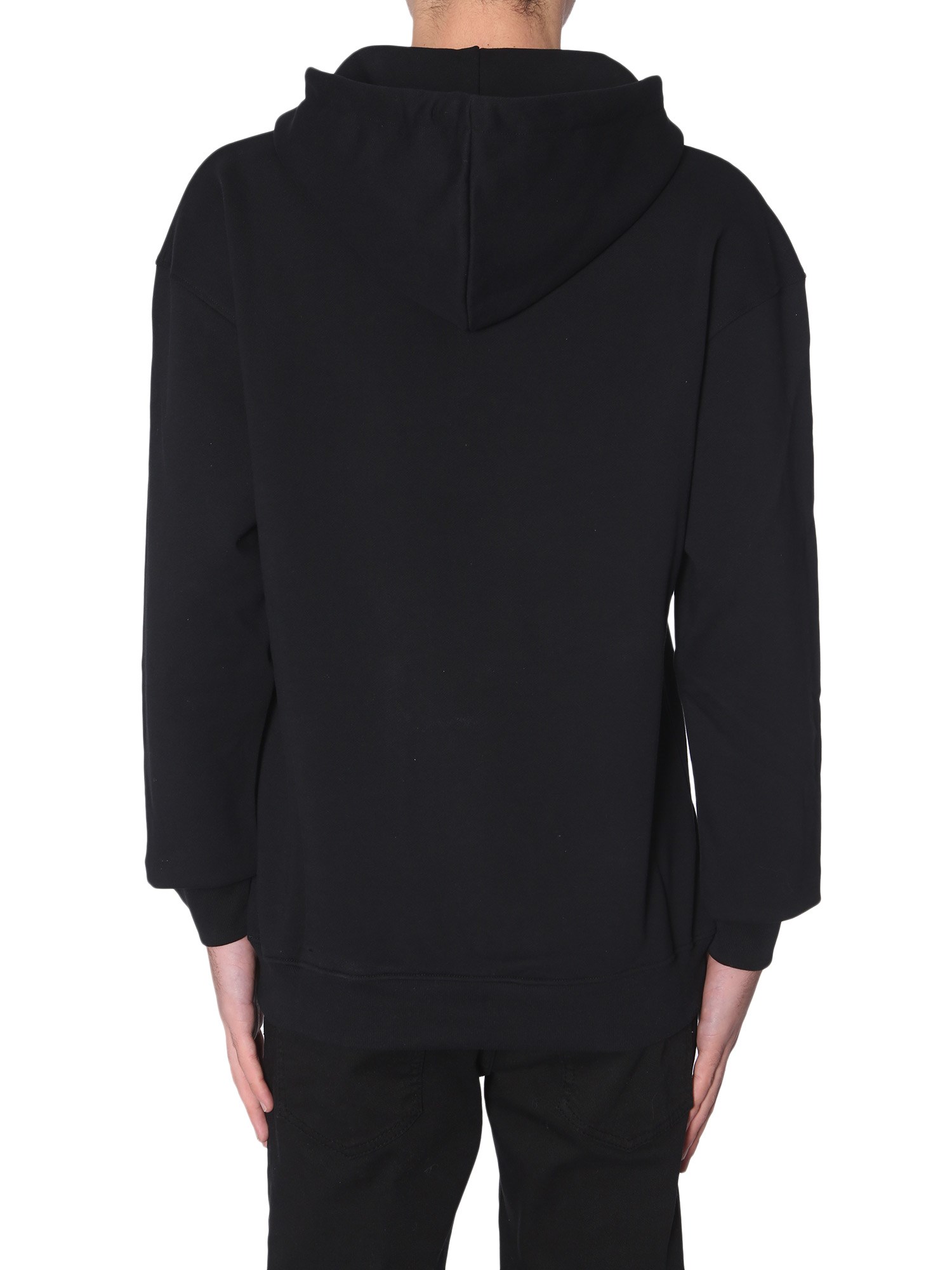 Give your winter look a stylish makeover with this sweatshirt from Moschino. You can club it with a pair of jeans and moccasins to complete your look. The sweatshirt comes with a hooded neck that keeps you warm and provides a dapper appeal to your outfit.