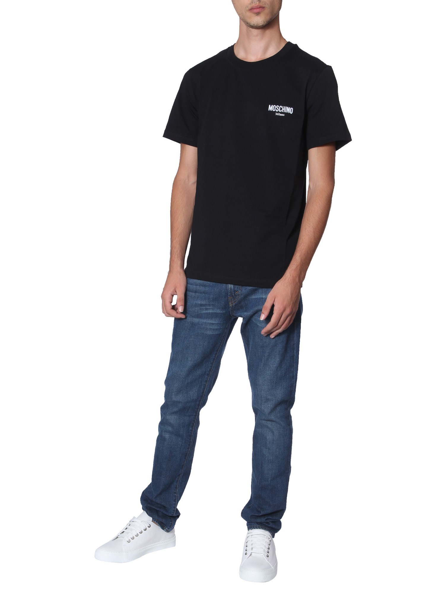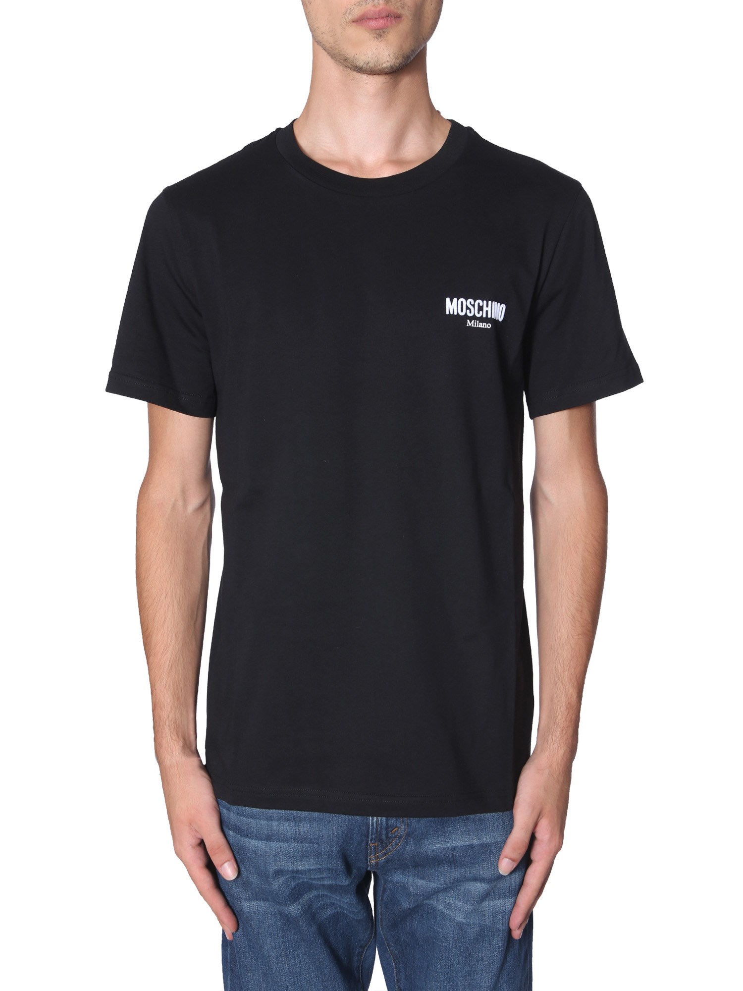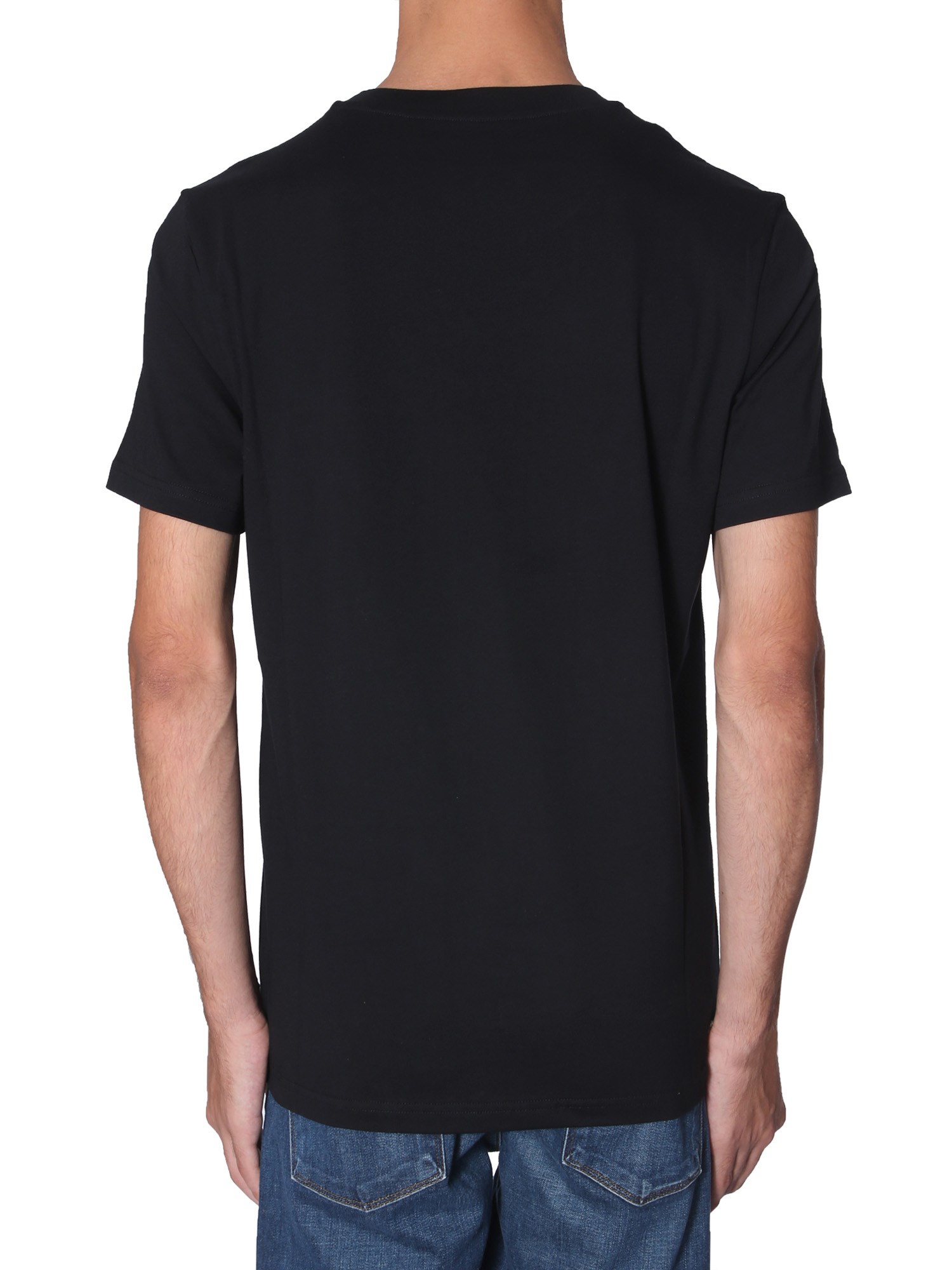 Give your casual wardrobe a trendy update with this round neck T-shirt from Moschino. The T-shirt is designed while keeping the ongoing trend in mind to keep your style bar up. With a plain and simple front panel, the T-shirt will never fail to provide a basic yet classy look. Club it with a pair of cotton shorts and canvas shoes for a complete look.