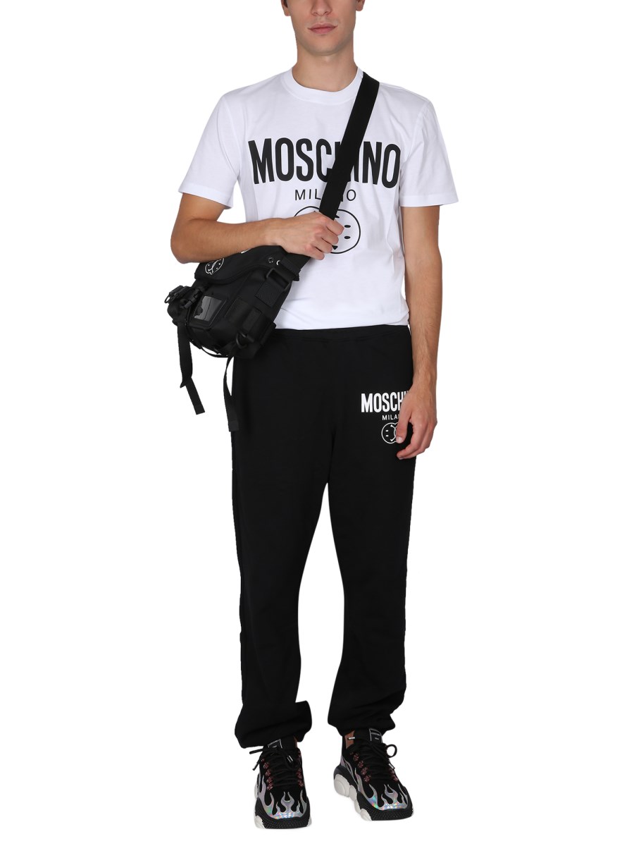 Do you want to wear a T-shirt that's made of quality cotton and features a cool front logo? Then this T-shirt by Moschino is for you! It's got a comfortable regular fit, so it's perfect for everyday wear. The front logo is in an awesome print, so you'll be the coolest guy on the block.