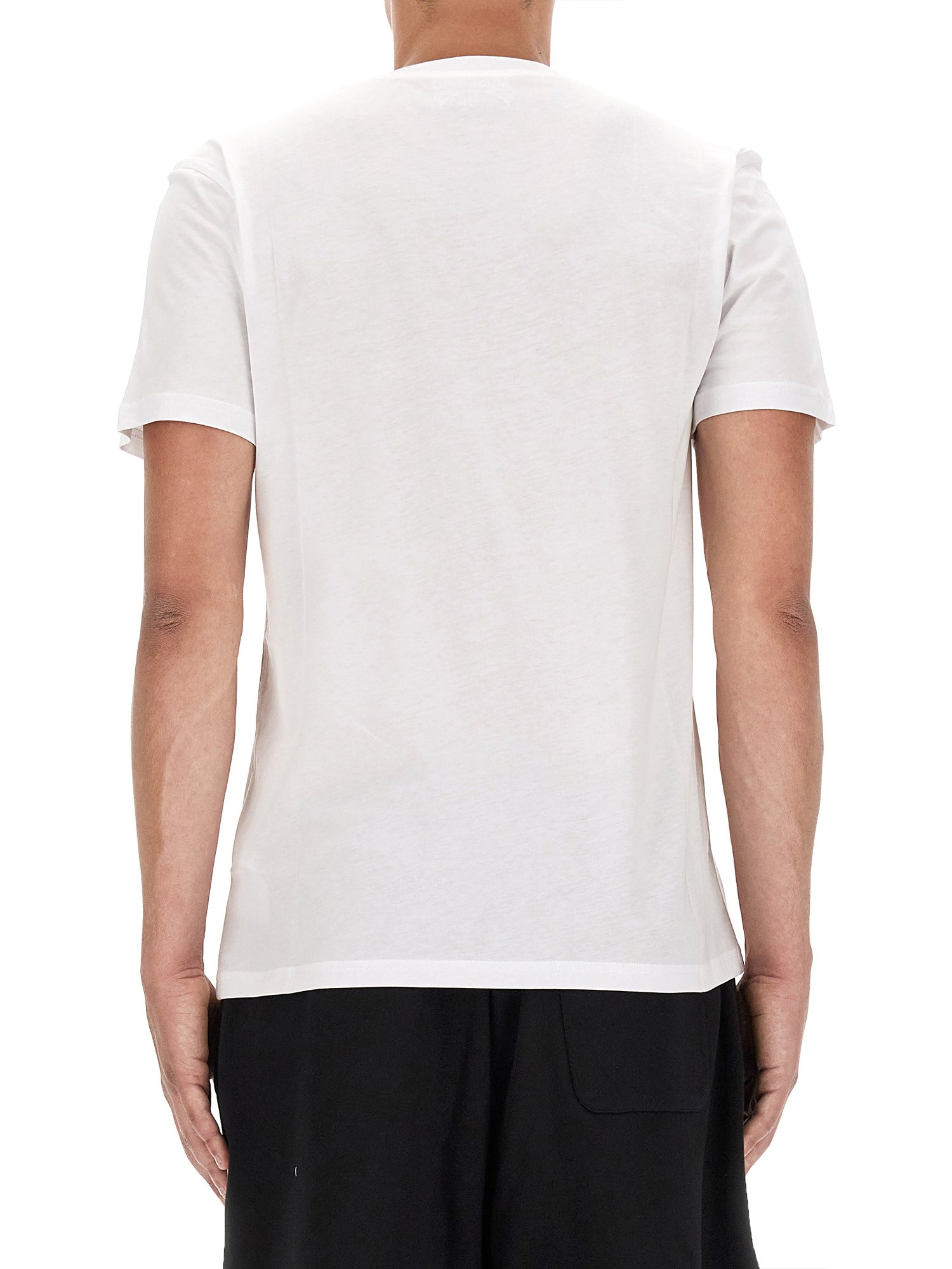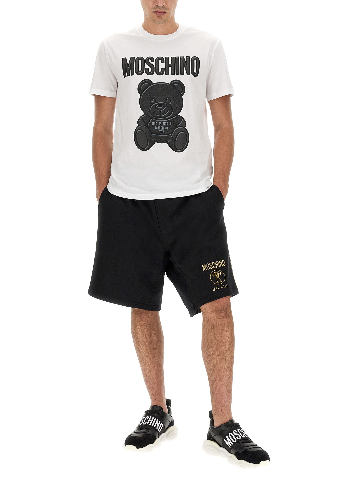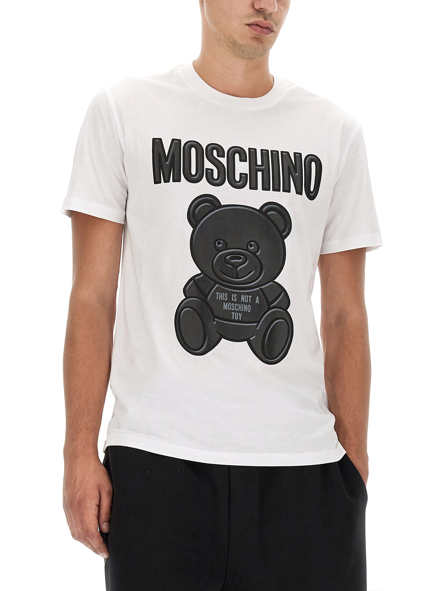 Invest in this versatile piece from Moschino today and experience both comfort and fashion in one! Made with the finest quality cotton, this crew neck tee offers a perfect blend of comfort and style. The clean and crisp white colour gives it a fresh and versatile look, making it an ideal addition to your wardrobe. Featuring a trendy crew neck design, this T-shirt ensures a flattering fit for both men and women.