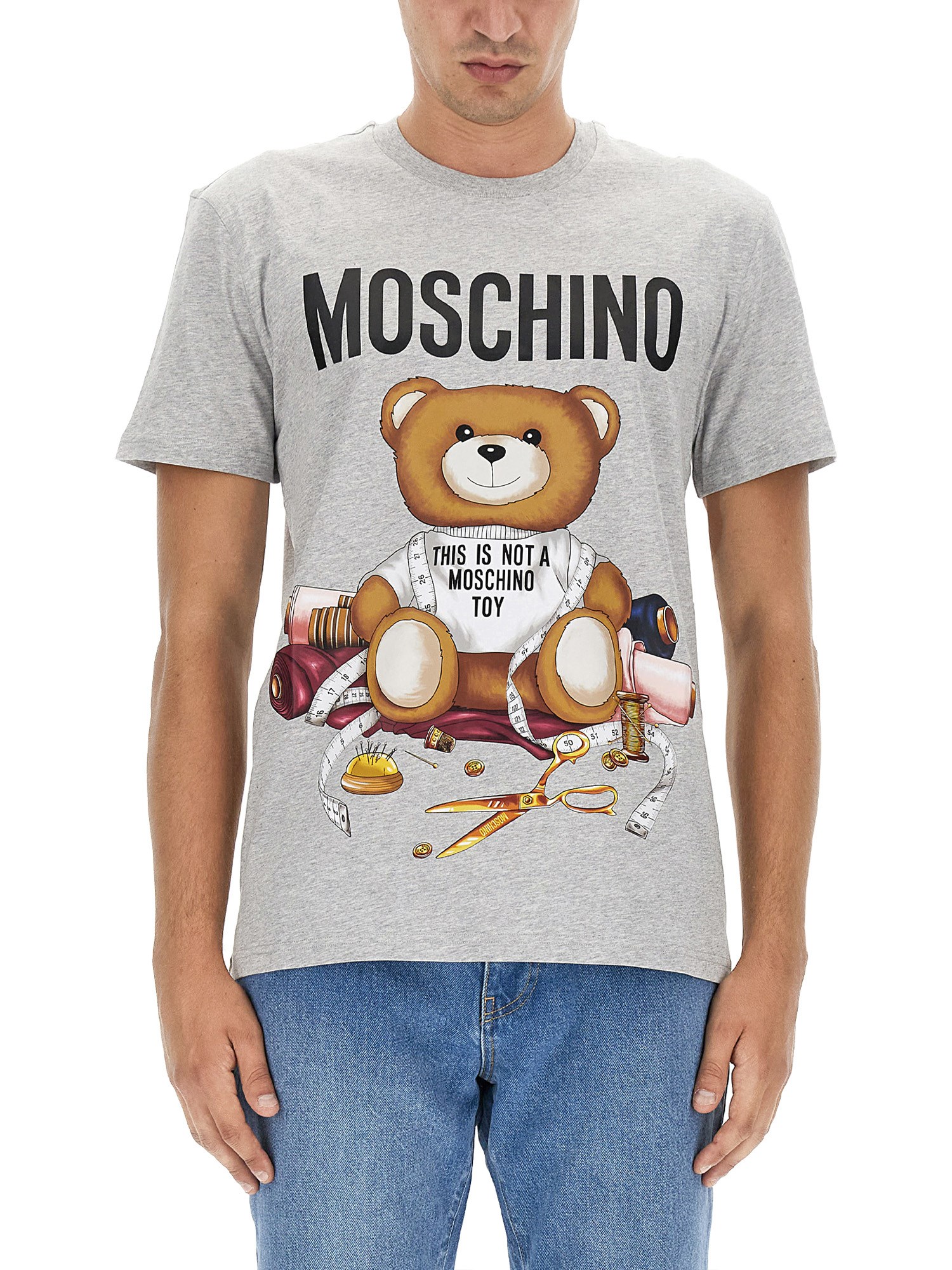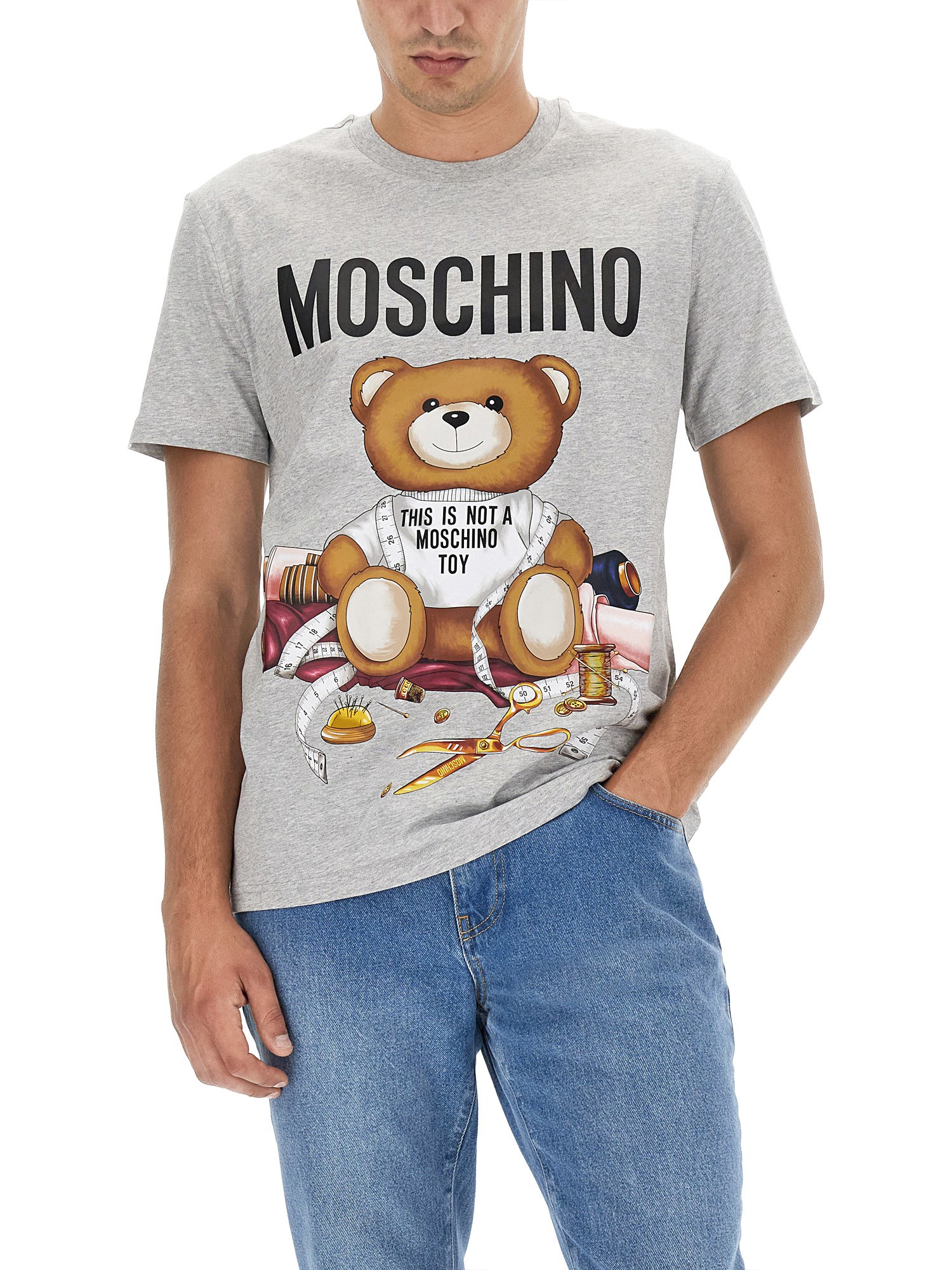 This T-shirt from Moschino offers both comfort and style. Featuring our adorable teddy bear logo print, this T-shirt is designed to add a playful touch to your everyday look. The grey colour adds versatility, allowing you to effortlessly pair it with a variety of bottoms. The crew neck design provides a classic and timeless appeal, while the half-sleeves add a modern twist.