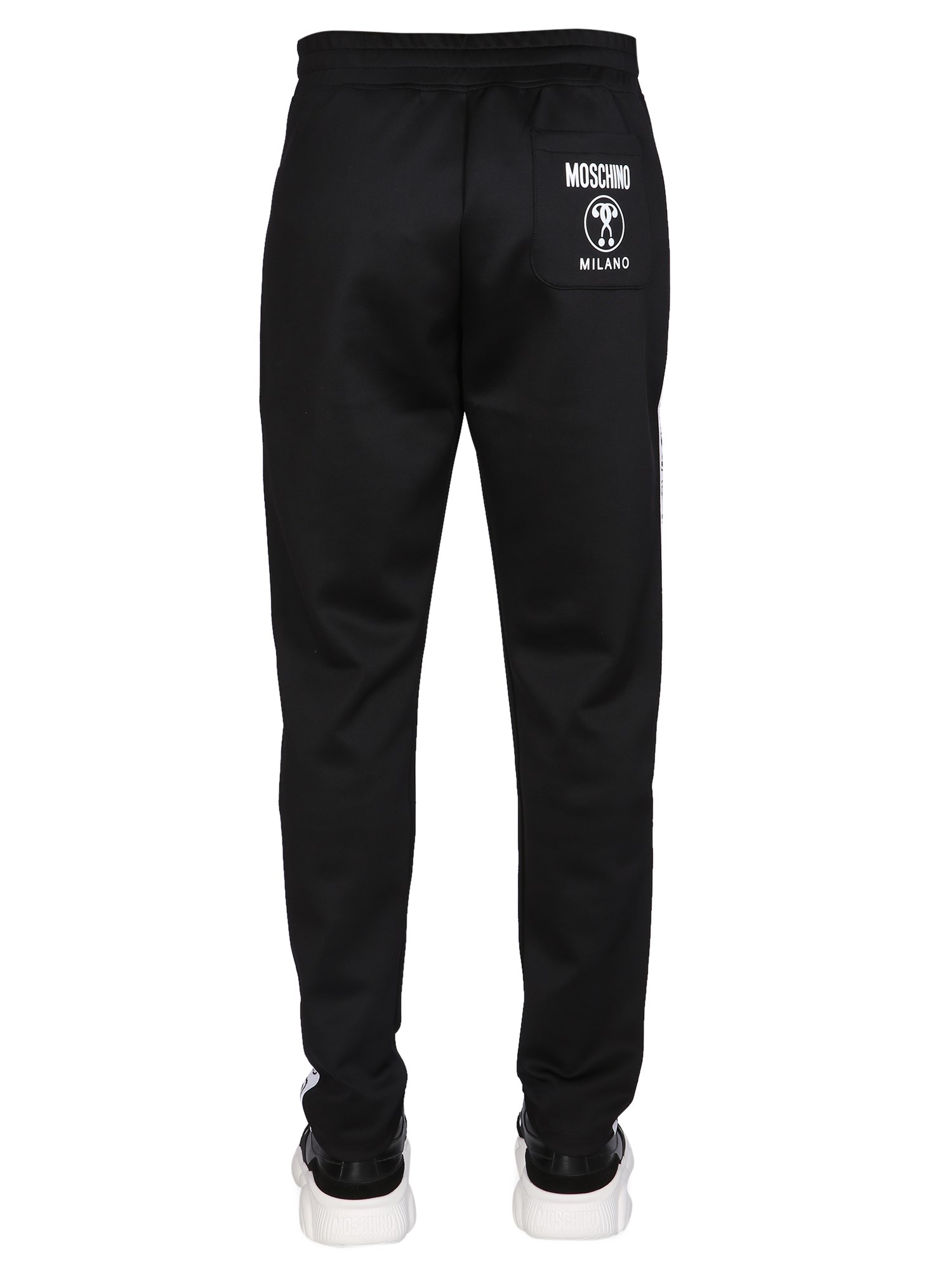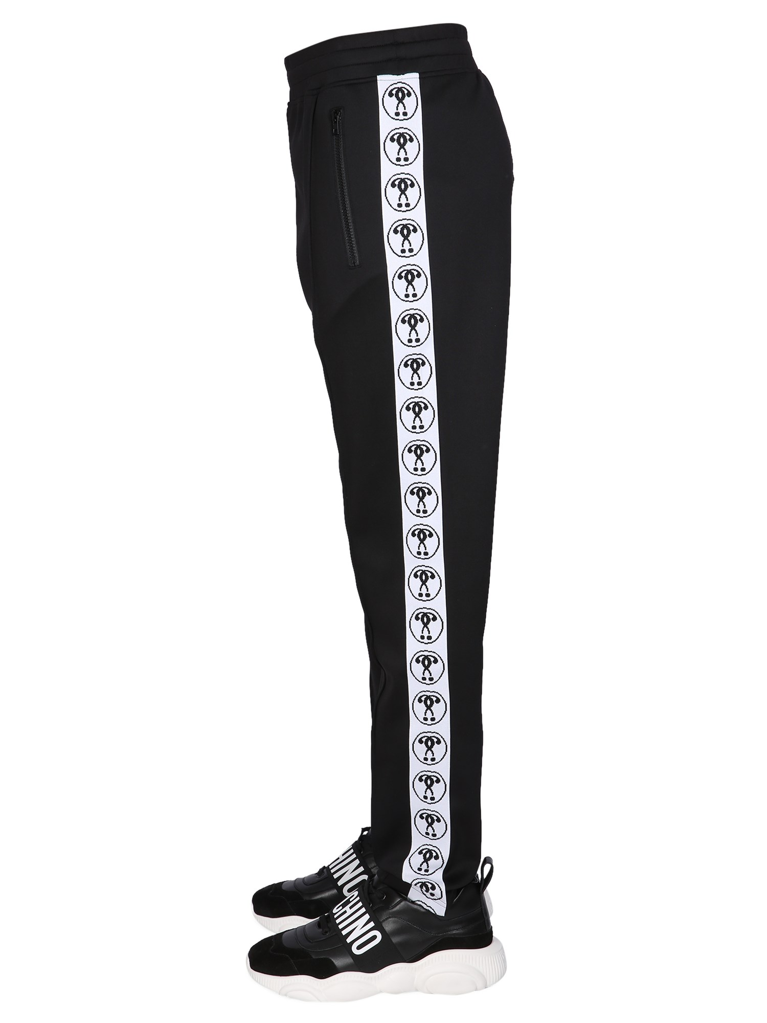 No need to get jogging when you can be comfy at home! These light-weight, elasticated waistband, regular fit jogging pants by Moschino are made of polyester and elastane, so they're durable and perfect for lounging around the house. It features a back pocket with logo print, zippered side pockets and an elasticated waistband.
