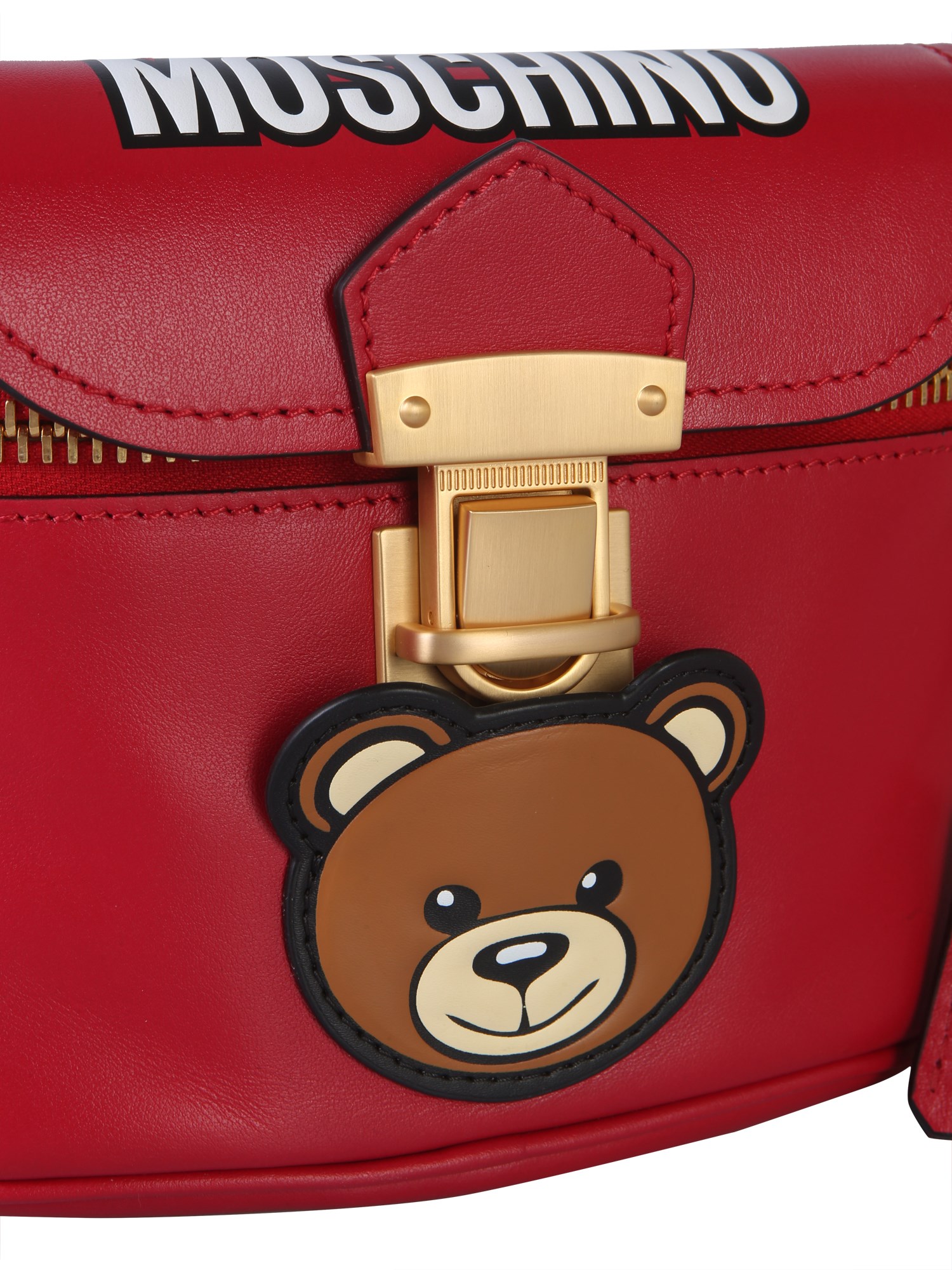 Carry your belongings in a hands-free manner using this teddy bear leather pouch from Moschino. The cute pouch has a teddy bear printed front that combines with various other stitched accents to give a trendy appearance. It is made of genuine leather to ensure durability and a classy finish.