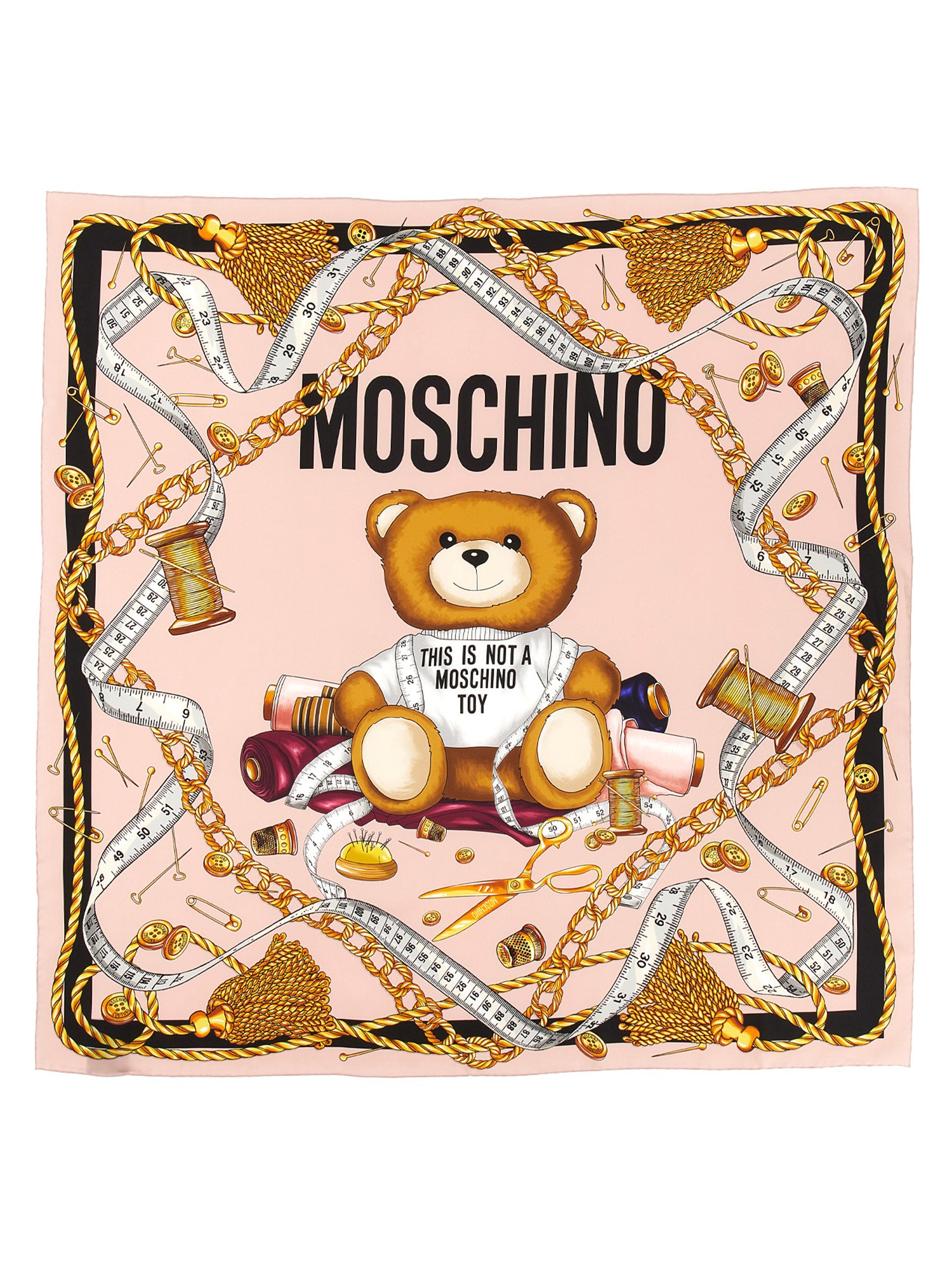 SILK SCARF WITH SARTORIAL TEDDY BEAR PRINT