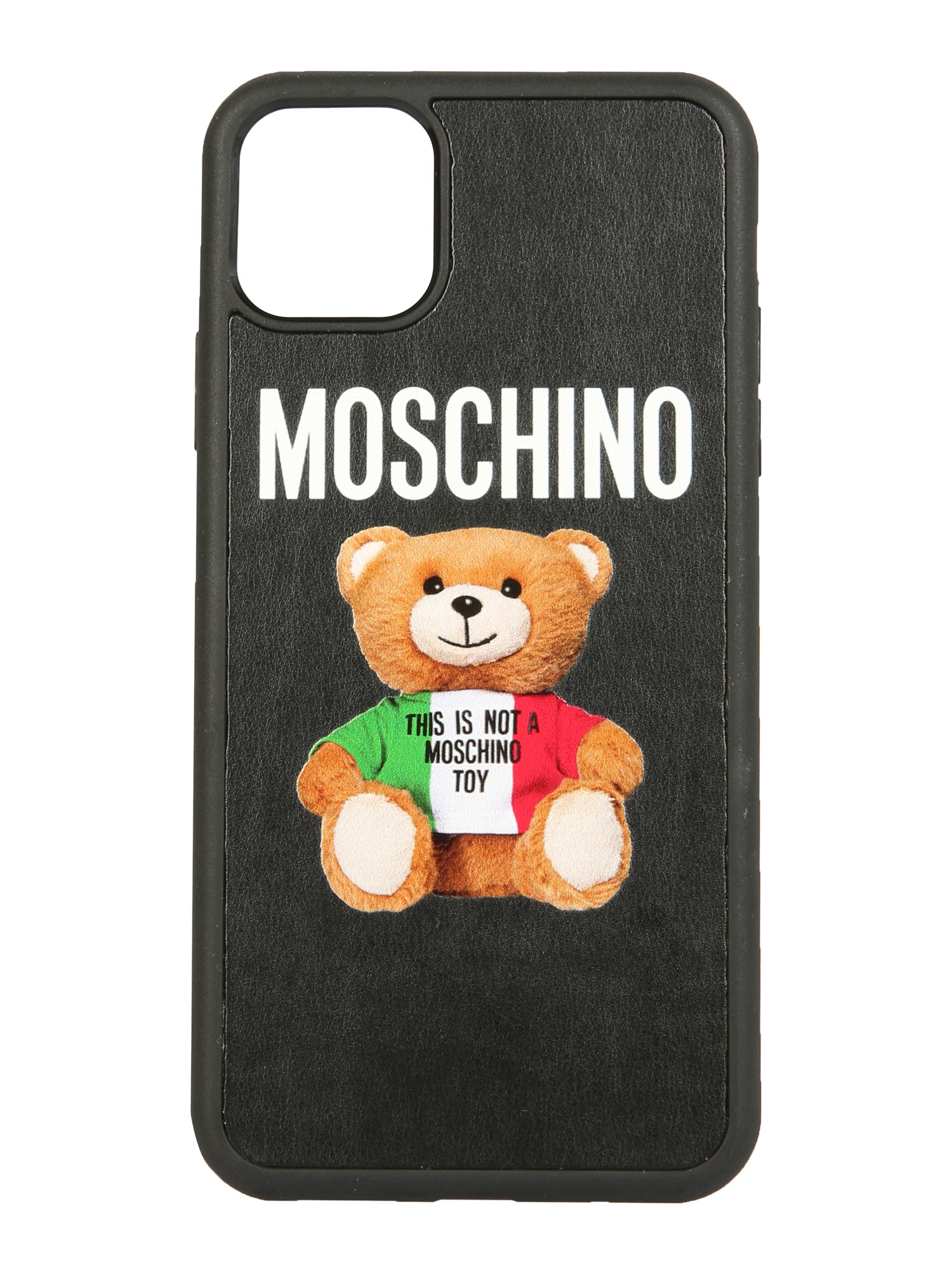 The Italy-made iPhone 11 Pro Max Cover by Moschino is the perfect adorable cover for your smartphone. Not only does your outfit need a stylish look, but your smartphone completes your look. The teddy bear front print is complemented by a contrasting lettering logo print on the inner side of the cover. The shiny look paired with a fine print cover goes well with your iPhone 11 Pro Max phone. It is made from 100 % polyurethane to grant not only a stylish but a protective layer to the smartphone.