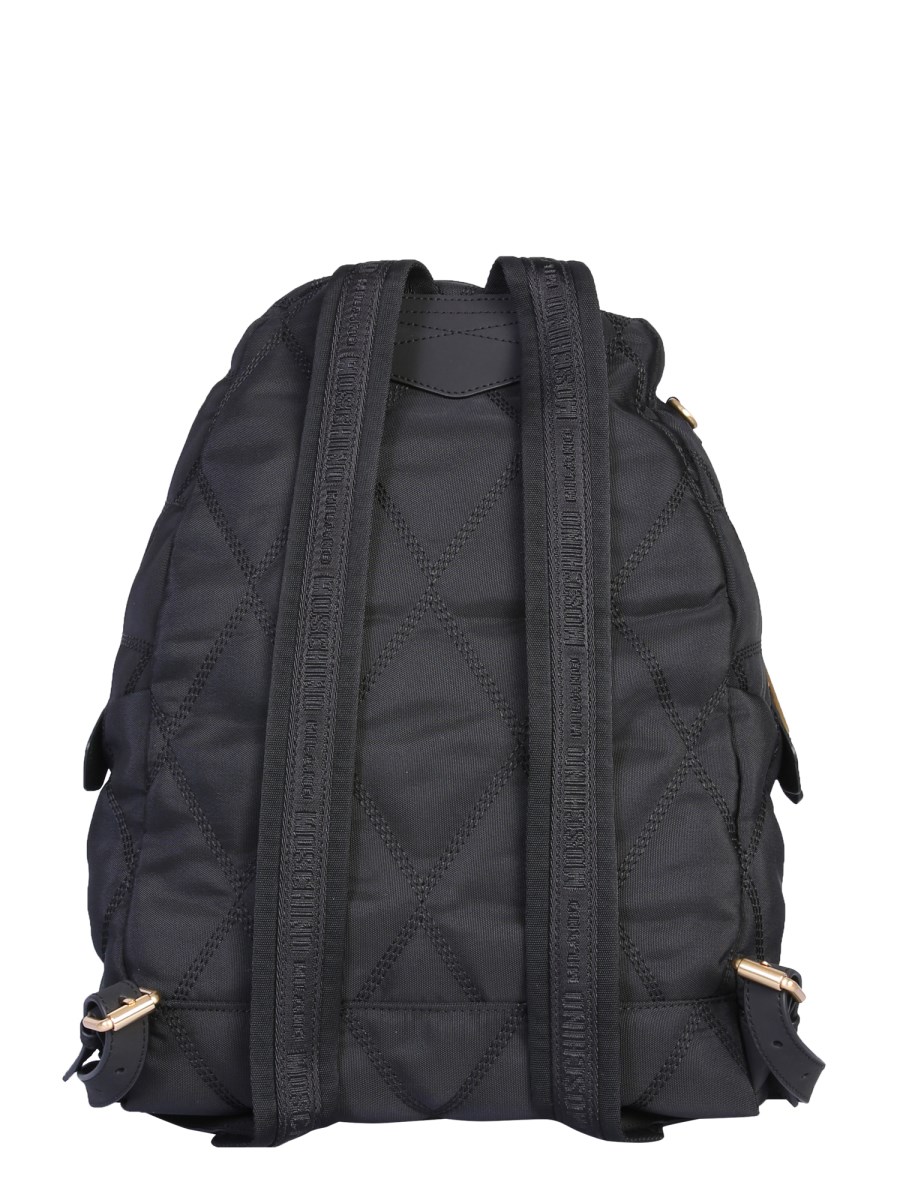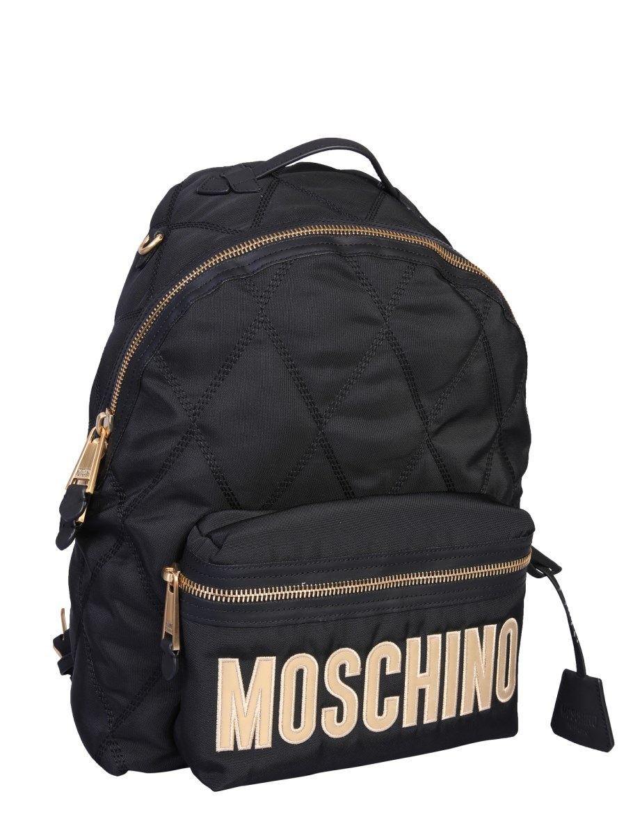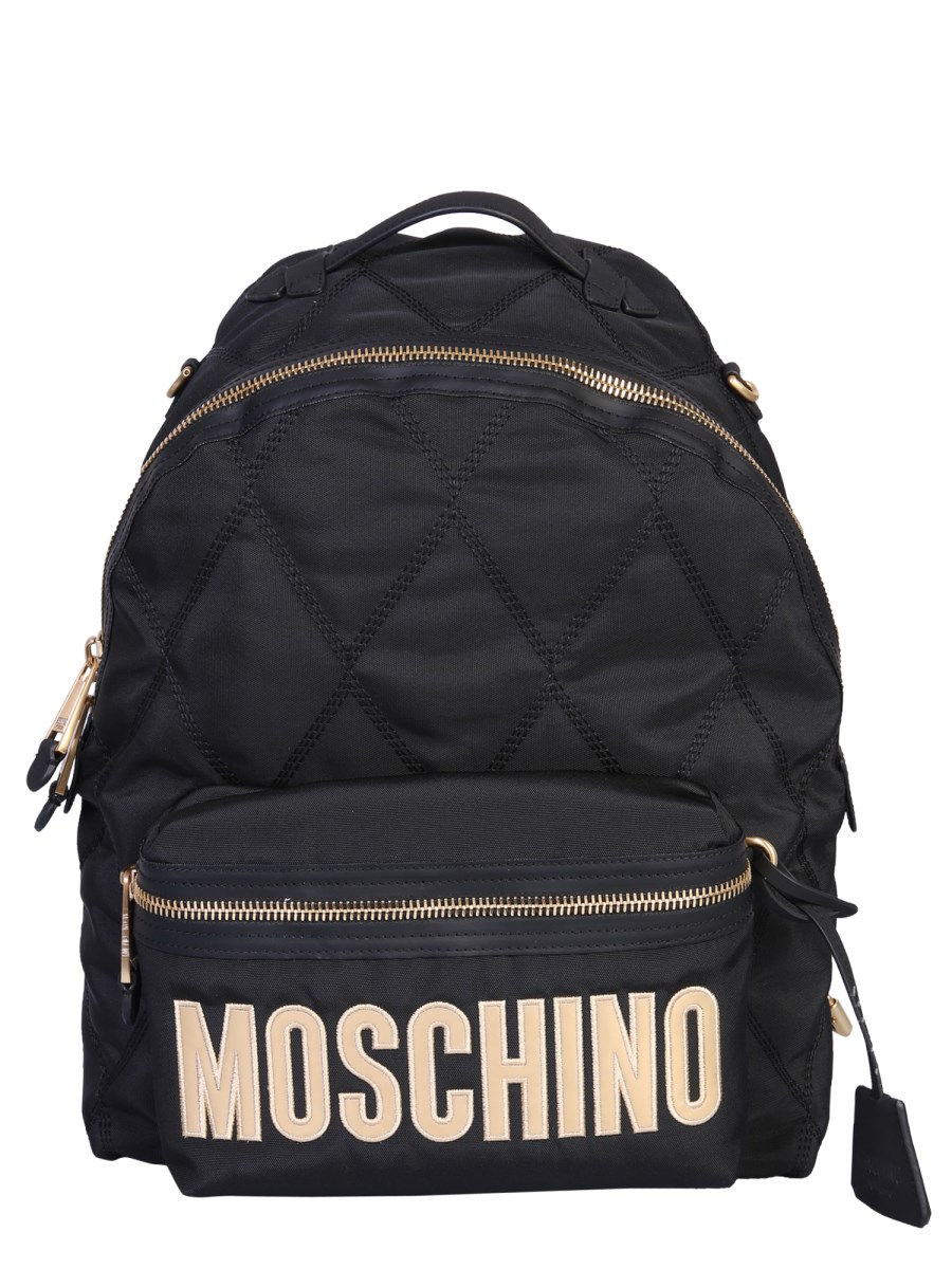 Tote your school or college essentials sophisticatedly anywhere you like with this quilted backpack with a logo designed by Moschino. With multiple zip closures securing the main and outer compartments, it gives you ample space to store things. On the other hand, the adjustable shoulder straps and cushioned back provide the comfort that you require even while travelling.