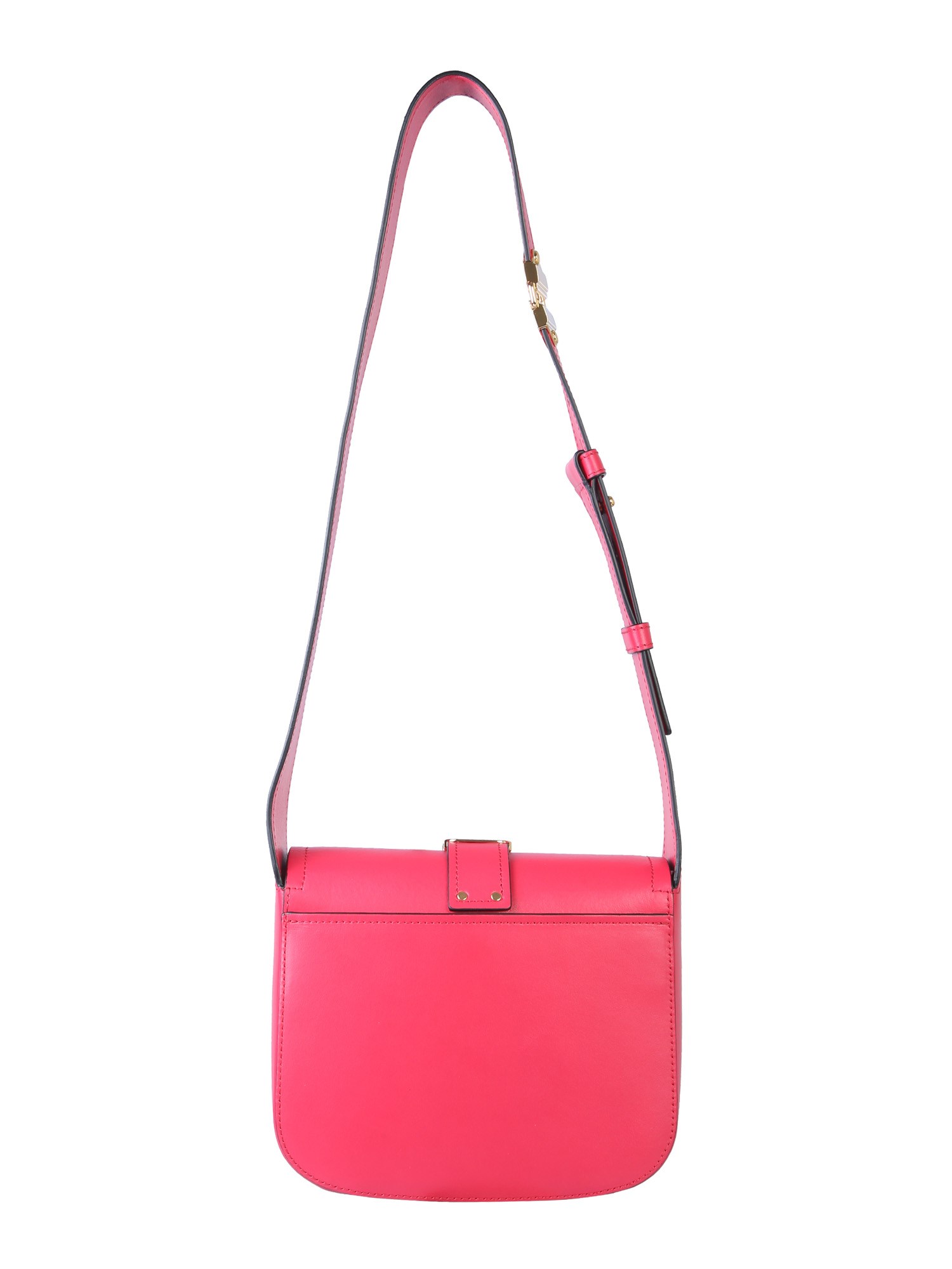 Make a lasting impression on everyone with this shoulder bag from Moschino. The bag is decorated with a large and metallic logo that goes well with its sleek calf leather body. The adjustable strap simplifies the carrying process while the spacious interior offers a better organisation of your valuables.