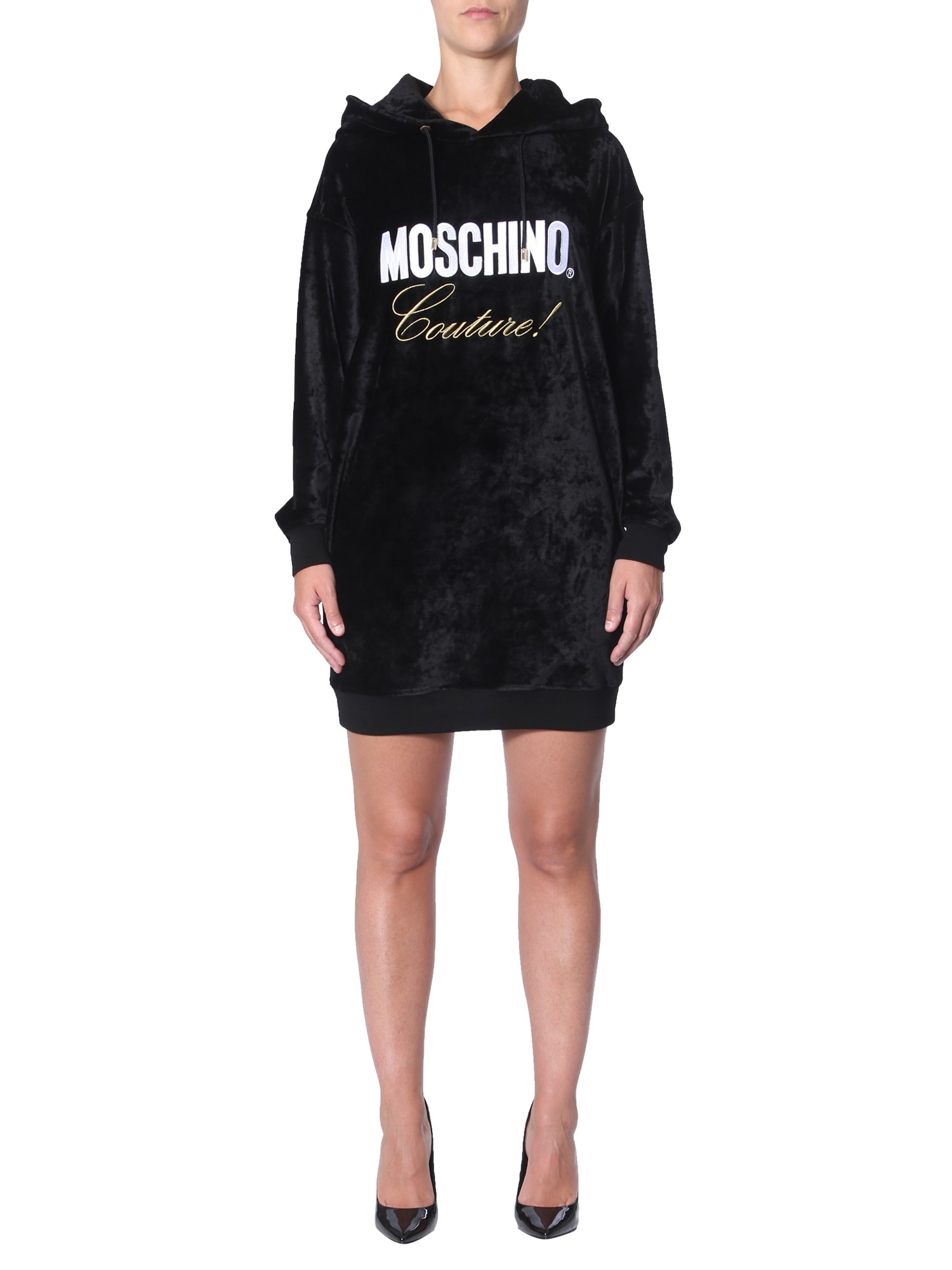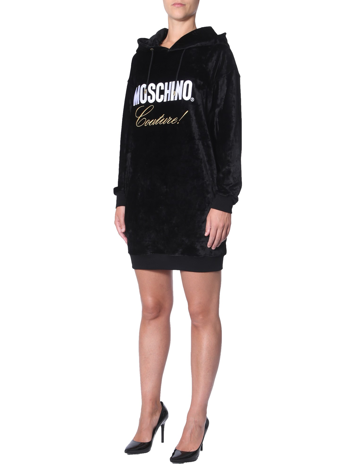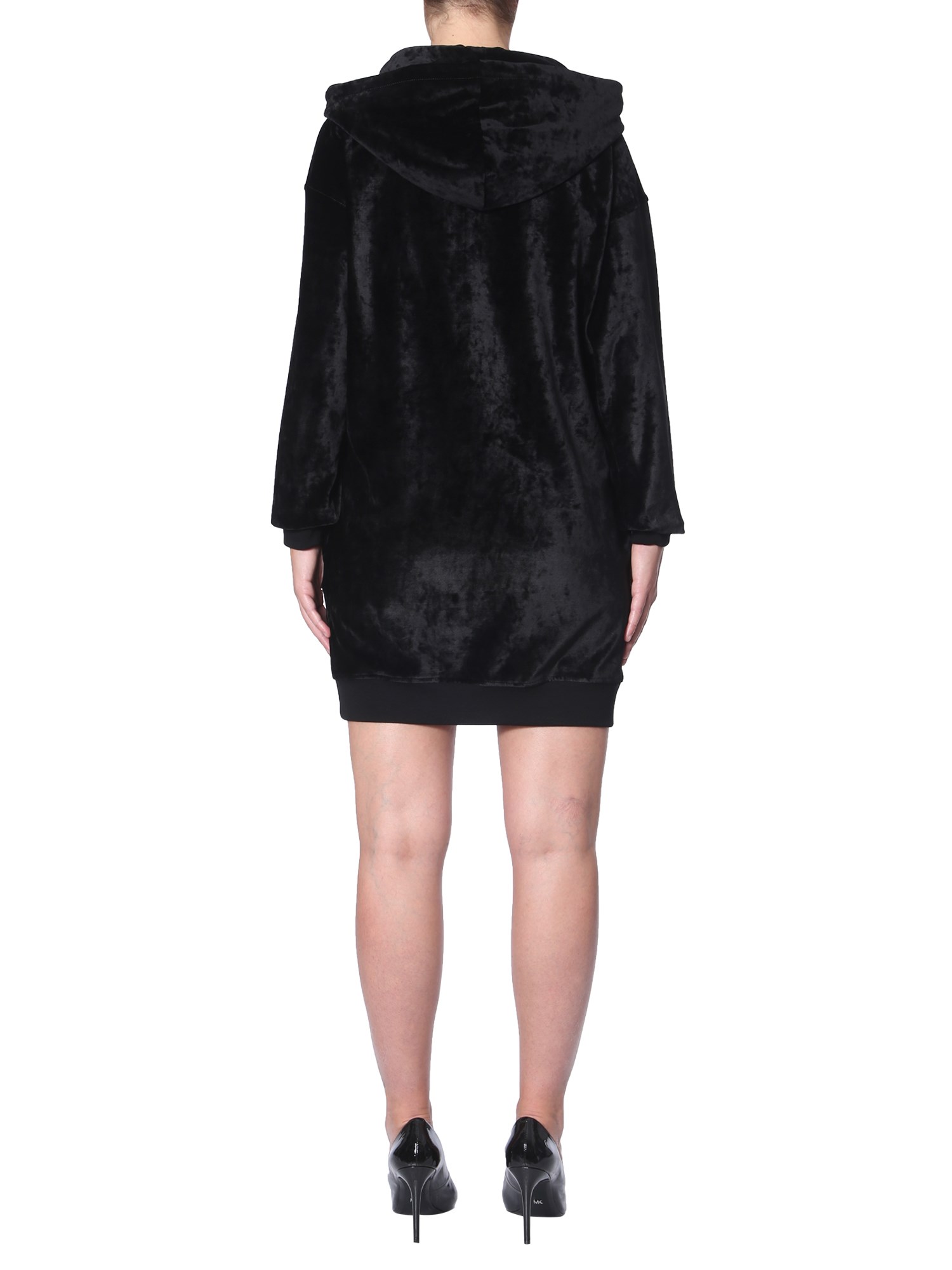 Add variety to your wardrobe with this sweat dress from Moschino. Made from a blend of viscose and polyamide, this dress has a soft and smooth texture. It comes with ribbed neckline and hem that adds textural contrast to its design. Designed with a contrasting branding on the front, the dress will raise your style bar easily.