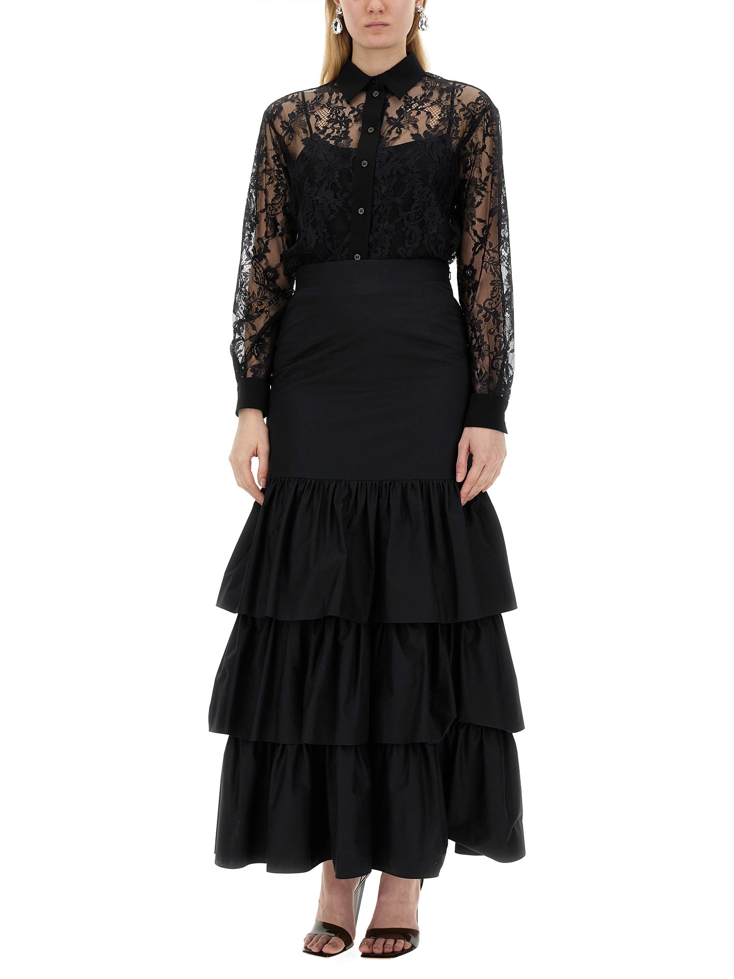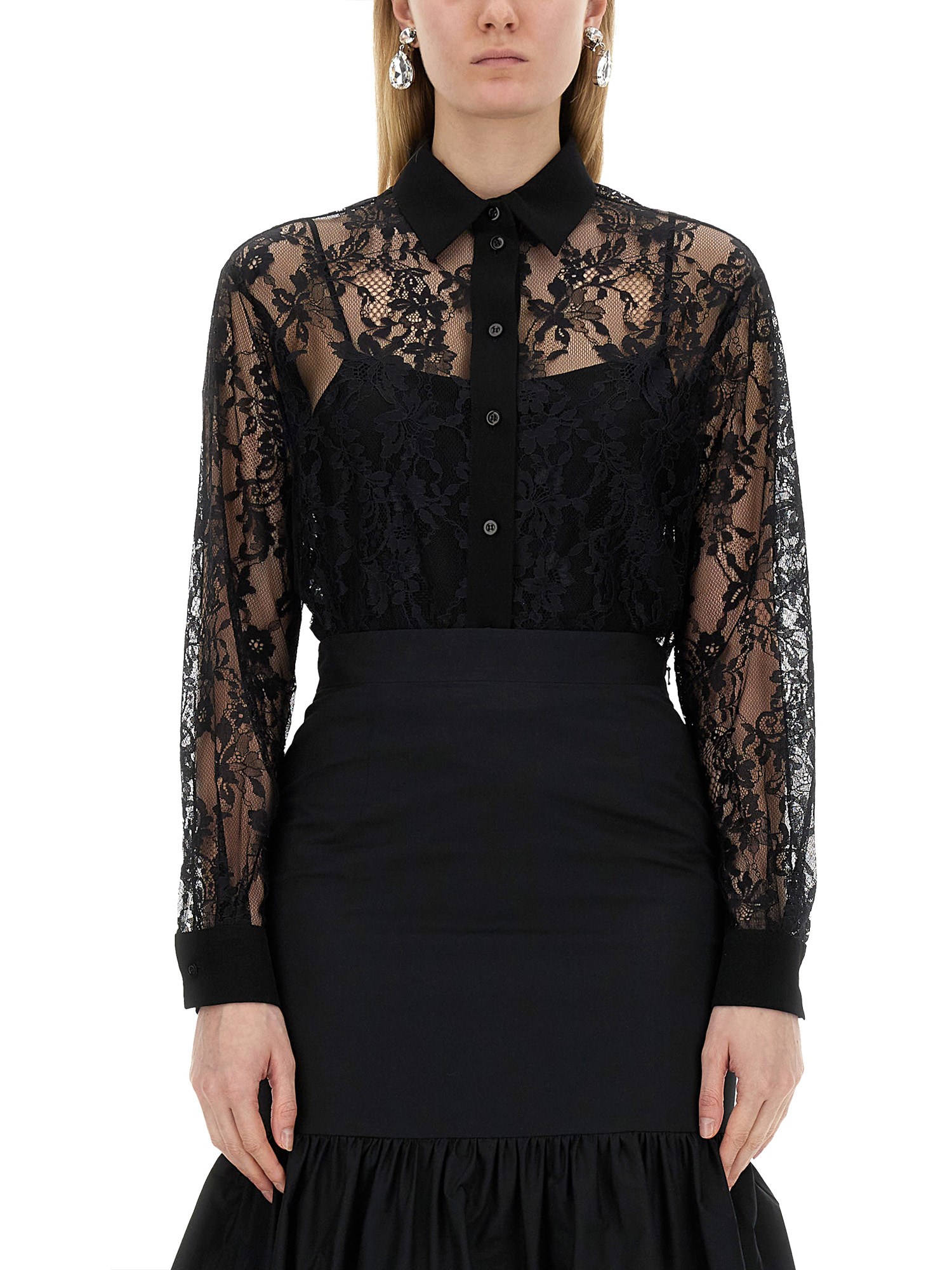 This elegant shirt from Moschino features a delicate black lace overlay that adds a touch of feminine charm and sophistication. Made from high-quality materials, it offers both comfort and style, making it the perfect choice for a day at the office or a night out on the town. Designed with intricate lace detailing, this shirt exudes an air of grace and elegance, making you stand out from the crowd.