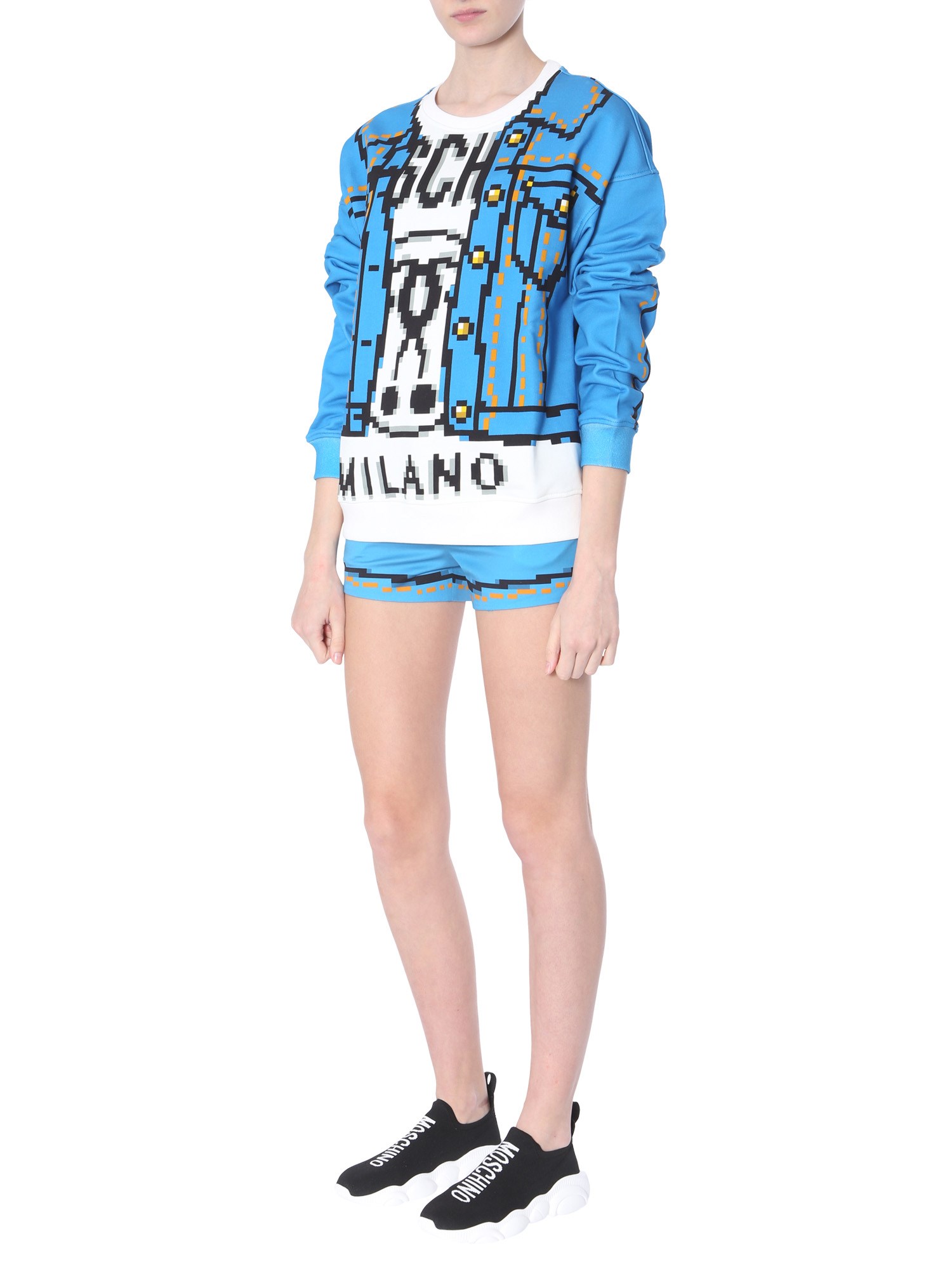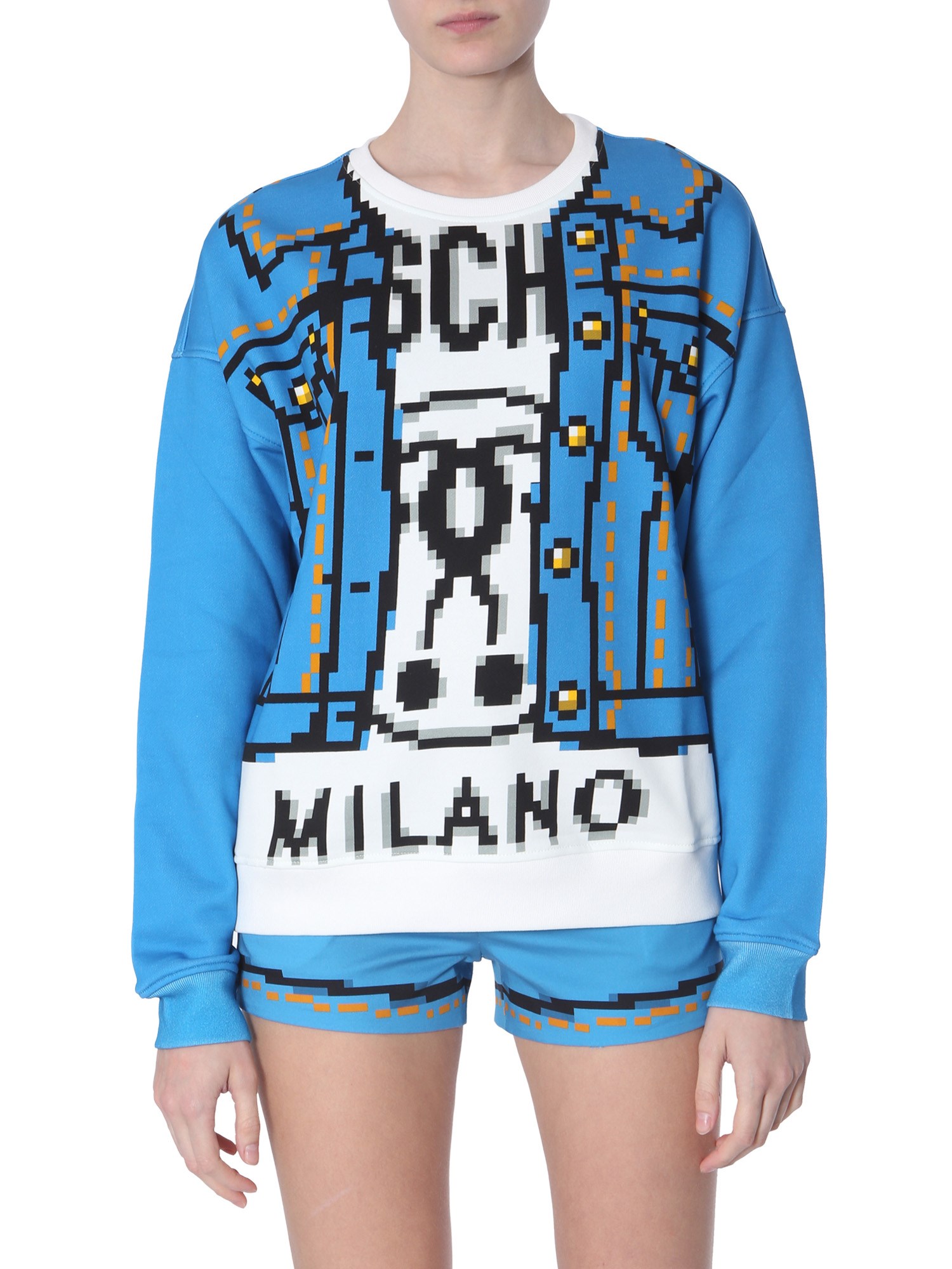 Redefine your winter wardrobe with these crew neck sweatshirt from Moschino. The garment is fabricated from good quality cotton to ensure comfort all day long. It features a round neck with brushed interior that feels soft against your skin. It comes with a printed front panel that reflects a quirky style.