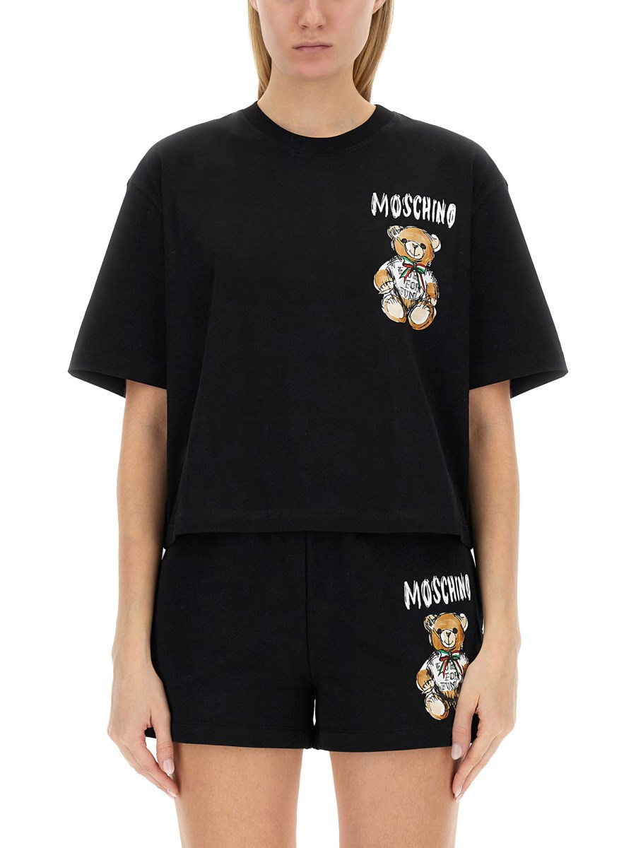 - NECKLACE- CRYSTAL TEDDY BEAR LOGO FRONT- REGULAR FIT- 100% COTTON- MODEL IS 180 CM TALL AND WEARS SIZE 40 IT