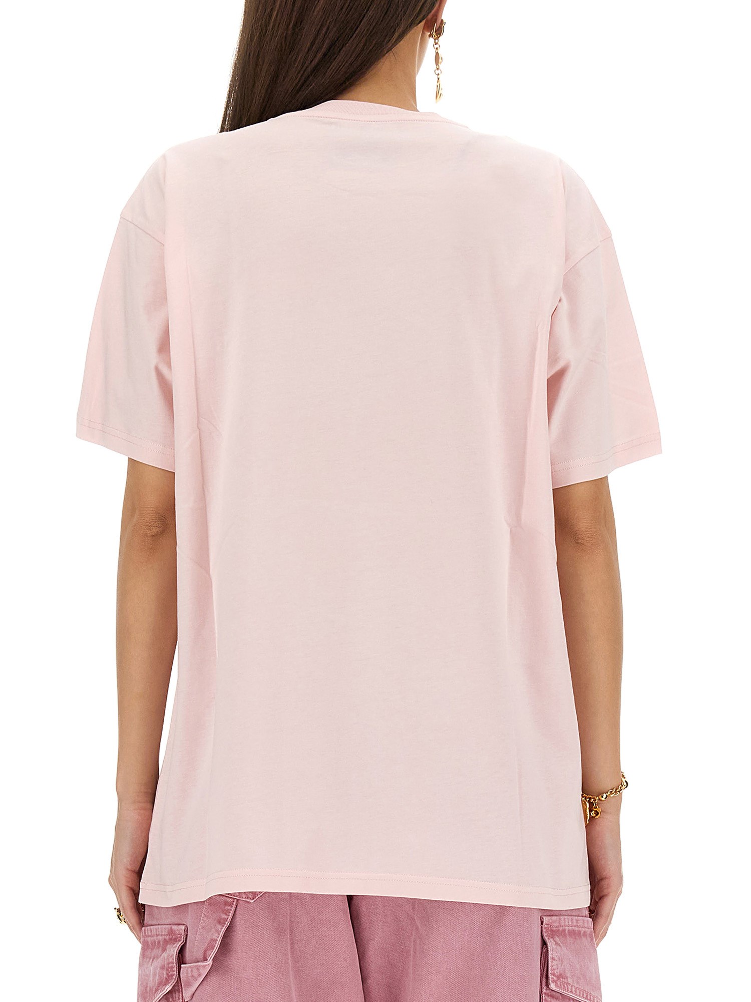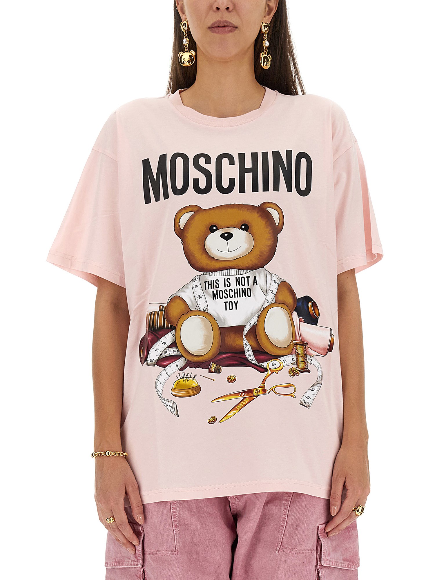 The Moschino T-shirt is a cute and chic way to show your love for the brand. With a crew neck, half-sleeve design, this short-sleeve top is perfect for layering over a tank top or sweater in the colder months. The adorable bear print on the front of this shirt is sure to be a hit with all of your friends.