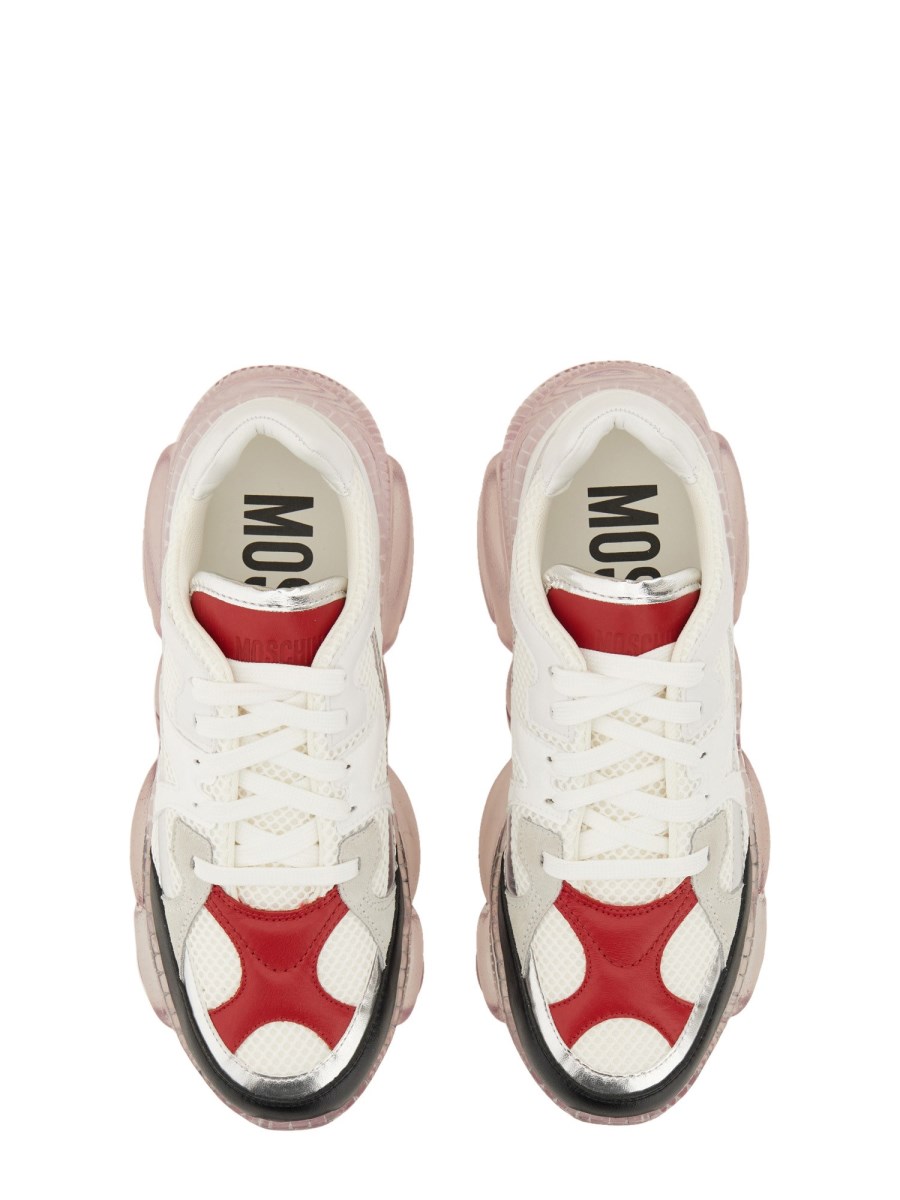 These shoes from Moschino are the perfect combination of fashion and comfort, making them a must-have addition to your footwear collection. Made from a premium polyester blend, these shoes are designed to provide breathability and durability, ensuring long-lasting wear. The flat lace closure adds a touch of elegance to the overall look, while also ensuring a secure and adjustable fit.