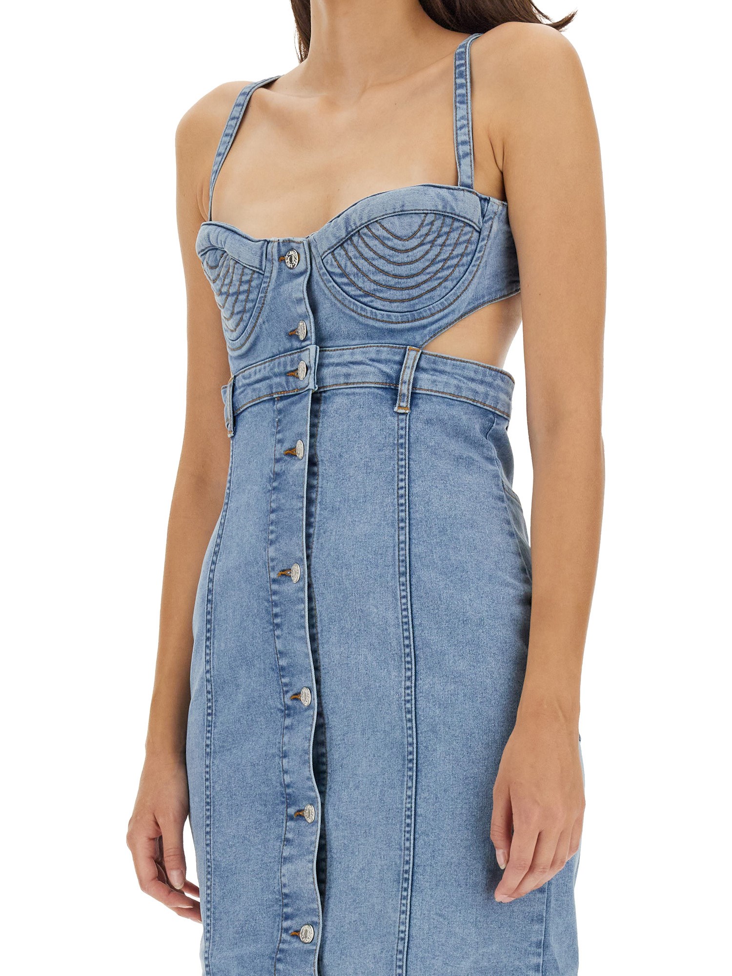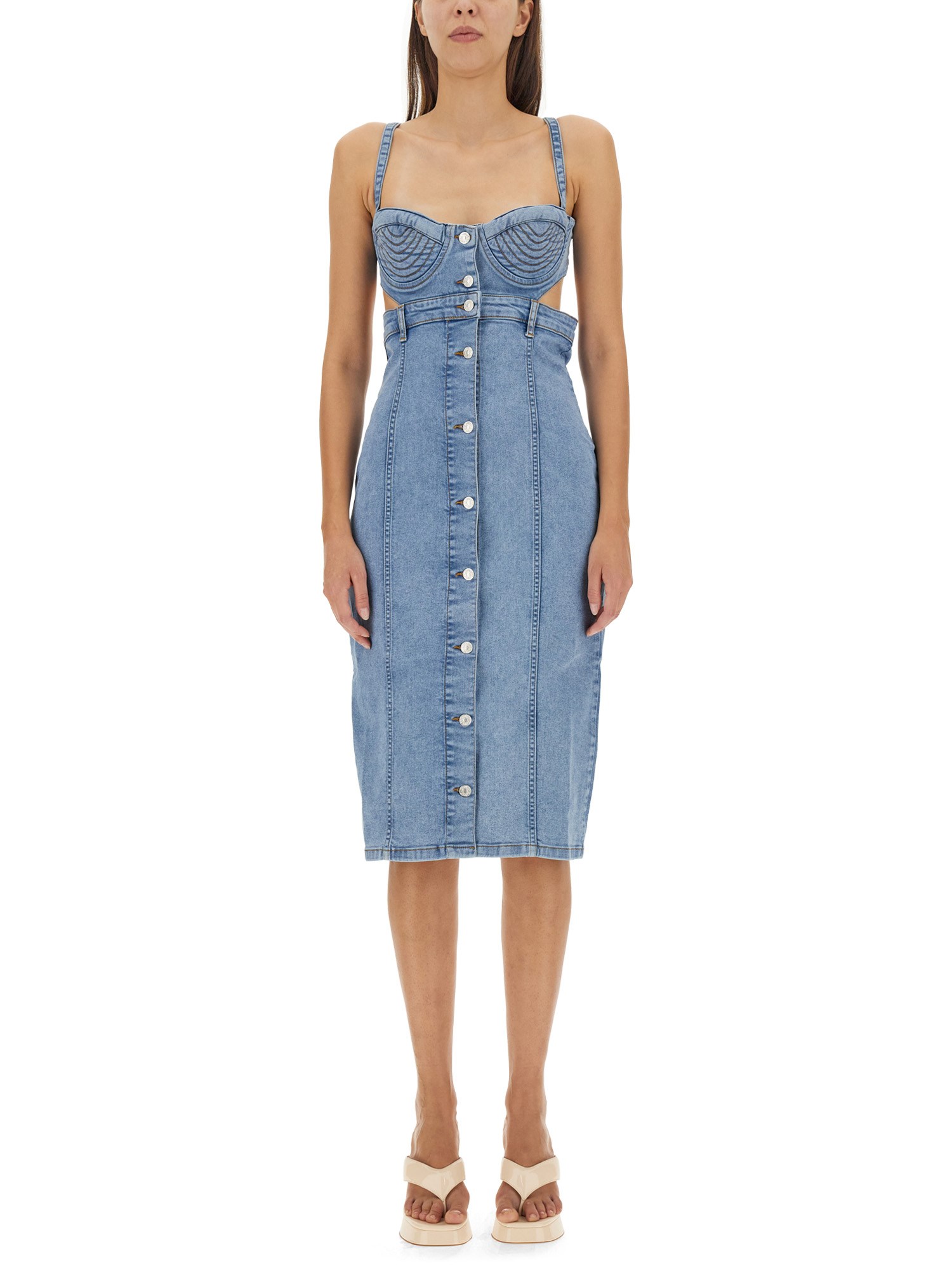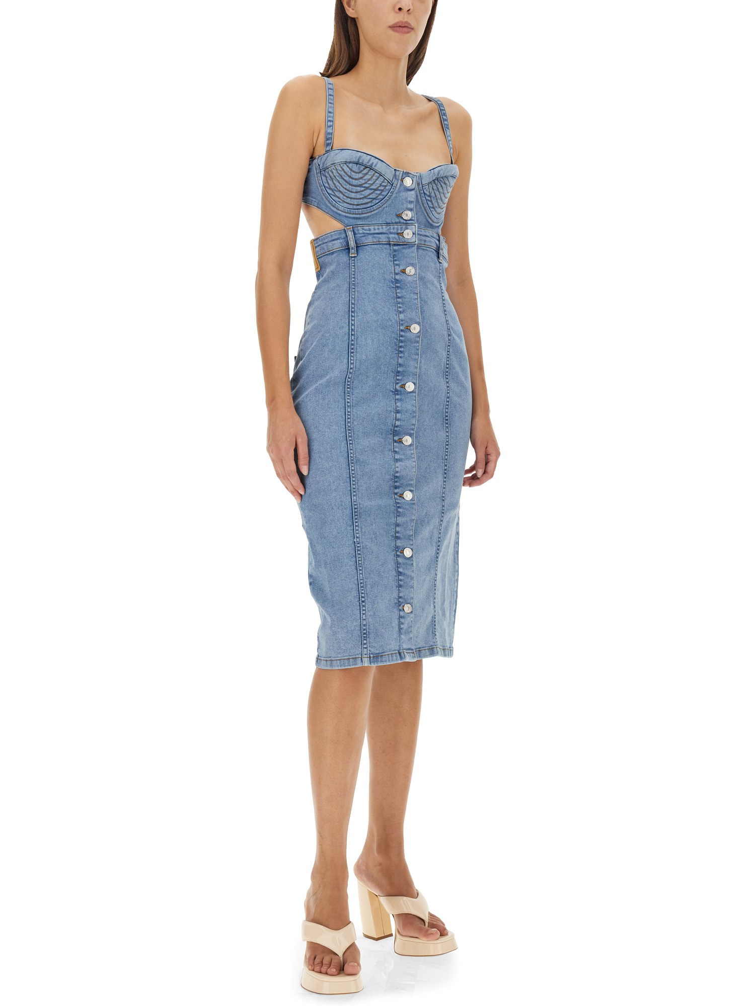 This lightweight, stretchy dress from Moschino Jeans is perfect for warm-weather occasions. With a button-closure front, adjustable shoulder straps, and two back pockets, it's versatile and comfortable. The front button closure will help you stay put and the adjustable shoulder straps will help you find the perfect fit.