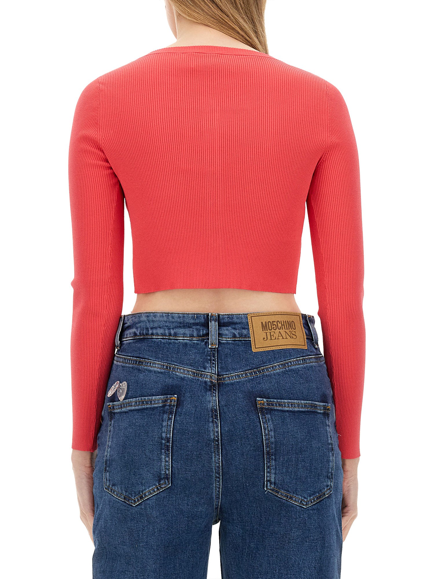 Add a touch of elegance to your wardrobe with this chic cropped cardigan from Moschino Jeans! Featuring a scoop neckline, long sleeves, front button closure, and a straight hem, this cardigan is the perfect complement to any outfit. Stay stylish and comfortable all day long with this must-have piece.