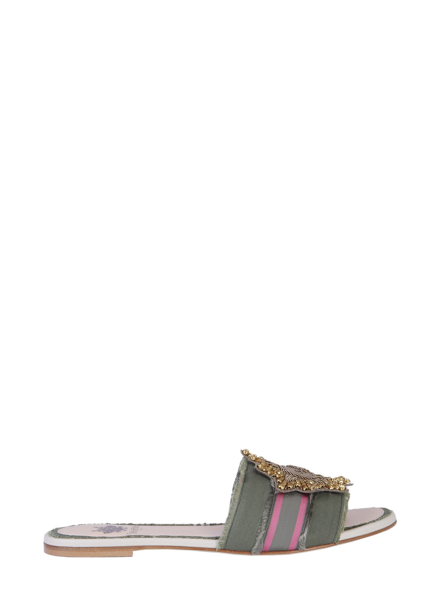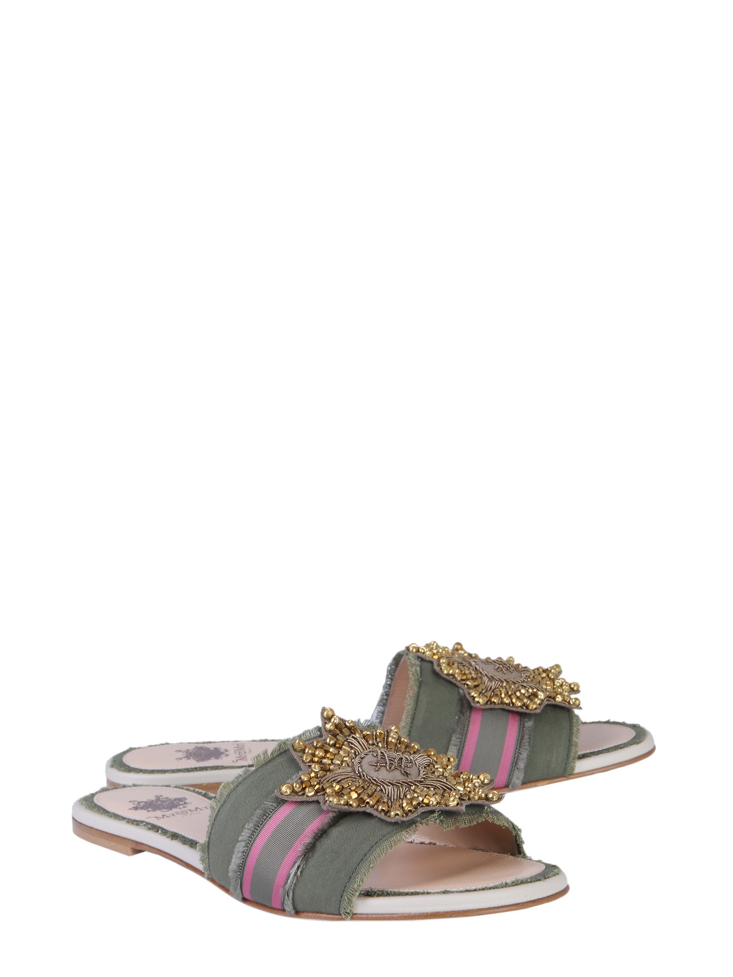 Put your next foot forward in style with these sandals with embroidered patch from the Mr. and Mrs. Italy collection. The sandals are fashioned with 100% leather for durability and a smooth finish on the surface. The leather interior of the shoes provide extra cushioning while the 0.5cm heel adds height and support for a comfortable wearing experience.