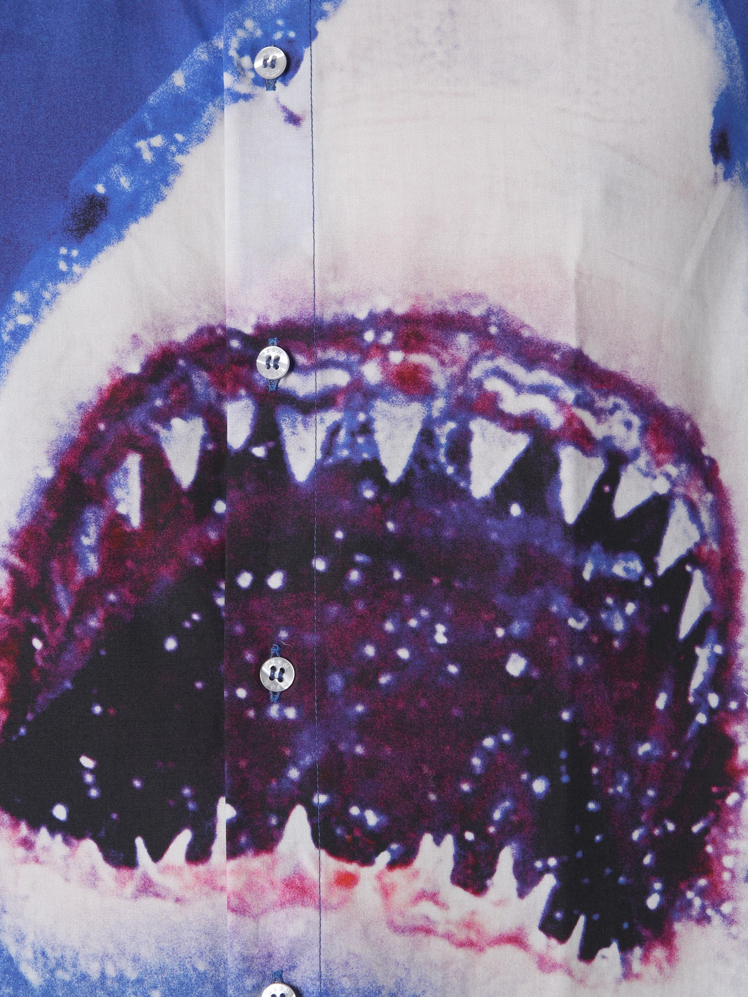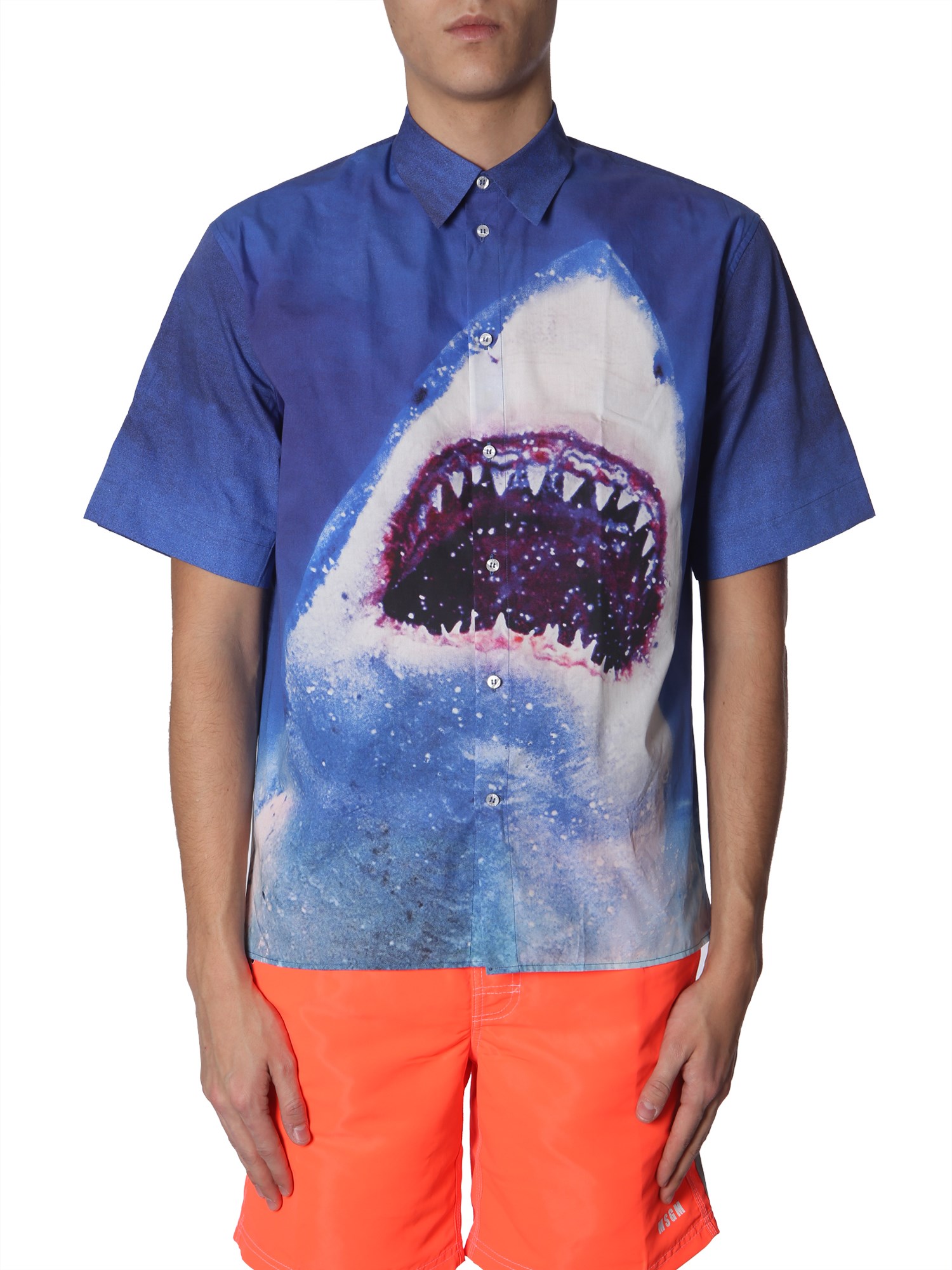 Look trendy and stylish this season with this shark print shirt from MSGM. You can wear it with denim or trousers and sneakers for a cool look. The front button closure lets you layer it over a solid hued t-shirt. Made using good quality cotton, the shirt is breathable and ideal for summer.