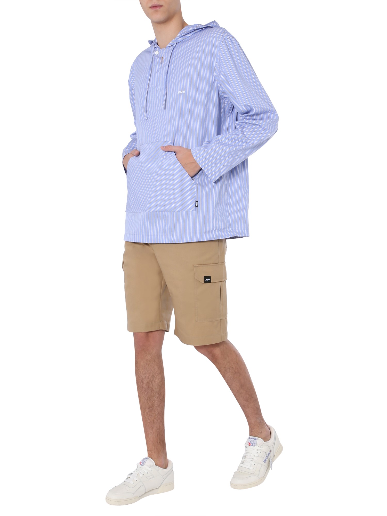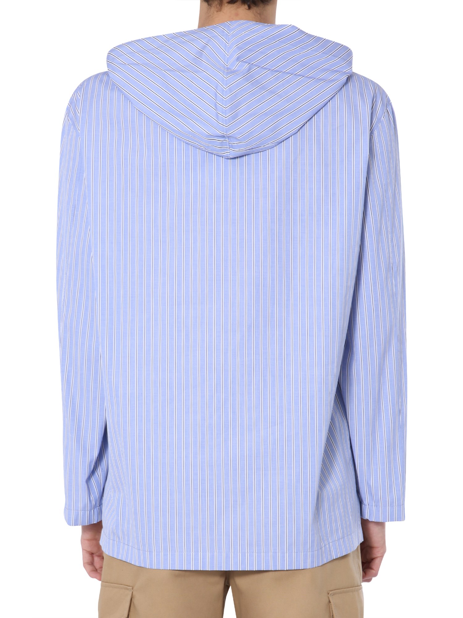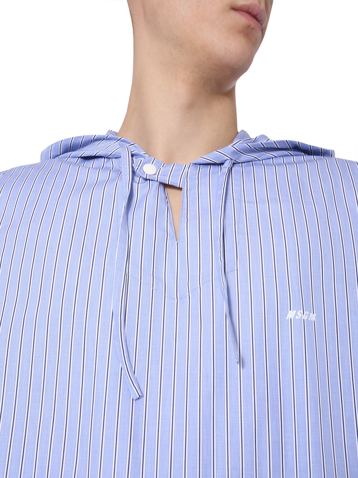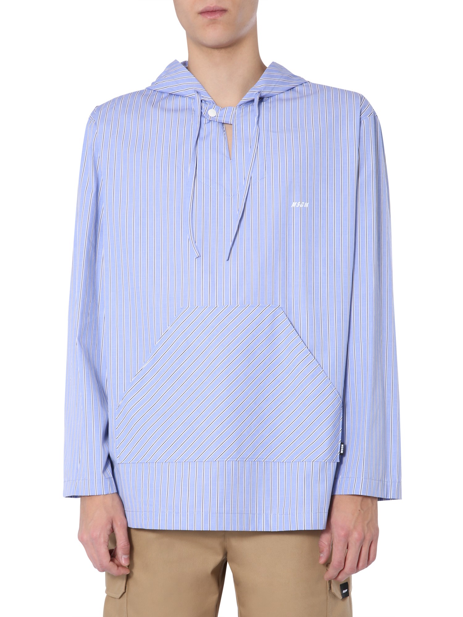 This cotton poplin hooded blouse from MSGM, with its exquisite form striped pattern, gives you an exquisite way to sport a casual outfit. It has a unique design with a V-shaped, hooded neckline and a kangaroo pouch pocket at the front. Also, the hood is secured with a coulisse closure for added coverage.