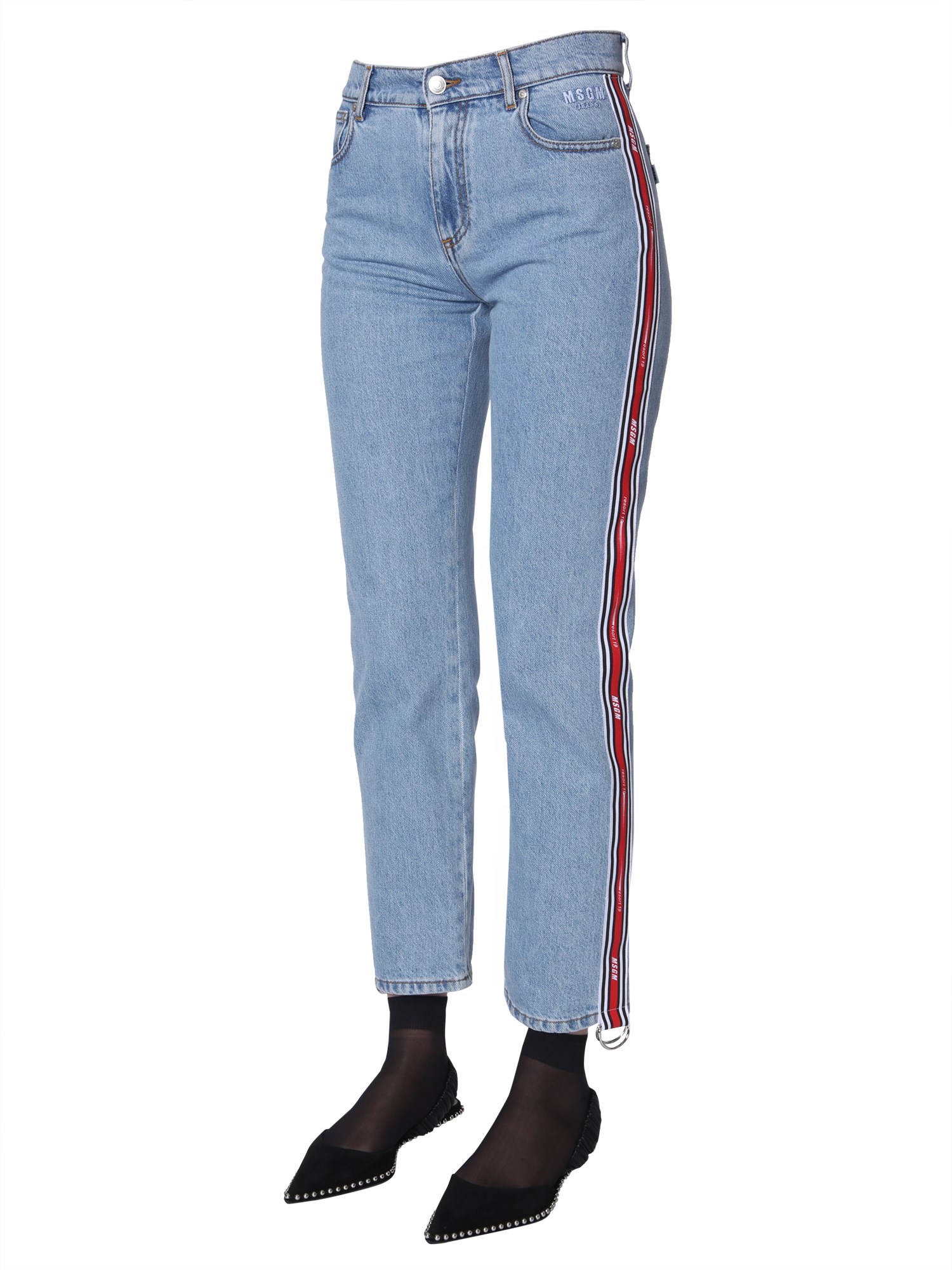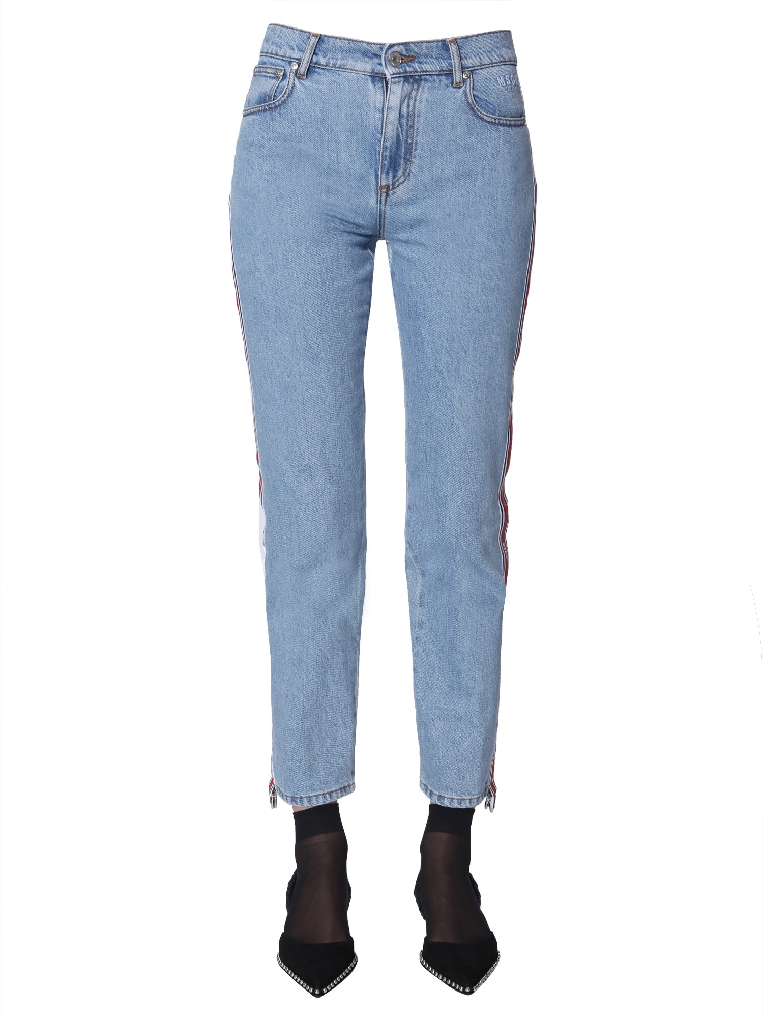 Head out in style by wearing this pair of 100% cotton jeans by MSGM. It has a hidden zip and button closure that make it easy to wear and remove. It features 5 pockets and offers a slim fit. Pair these trendy jeans with a t-shirt for a perfect look.