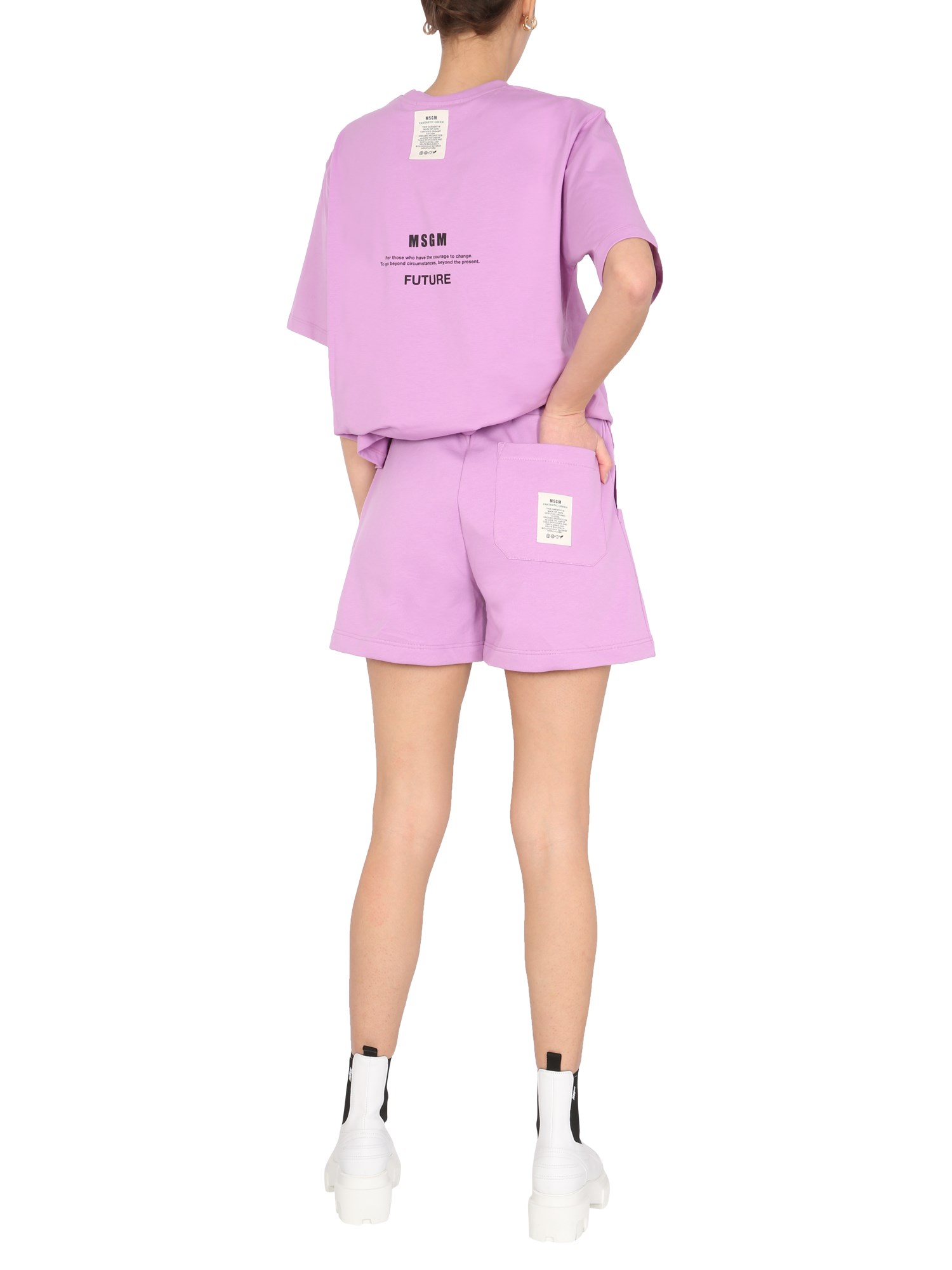 These MSGM lightweight cotton shorts are ideal for any warm-weather occasion. They are short and fitted, with a front print of 'fantastic green.' The waistband is stretchy, and the fly closes with a button. It has two side pockets as well as a logo patch on the back pocket.