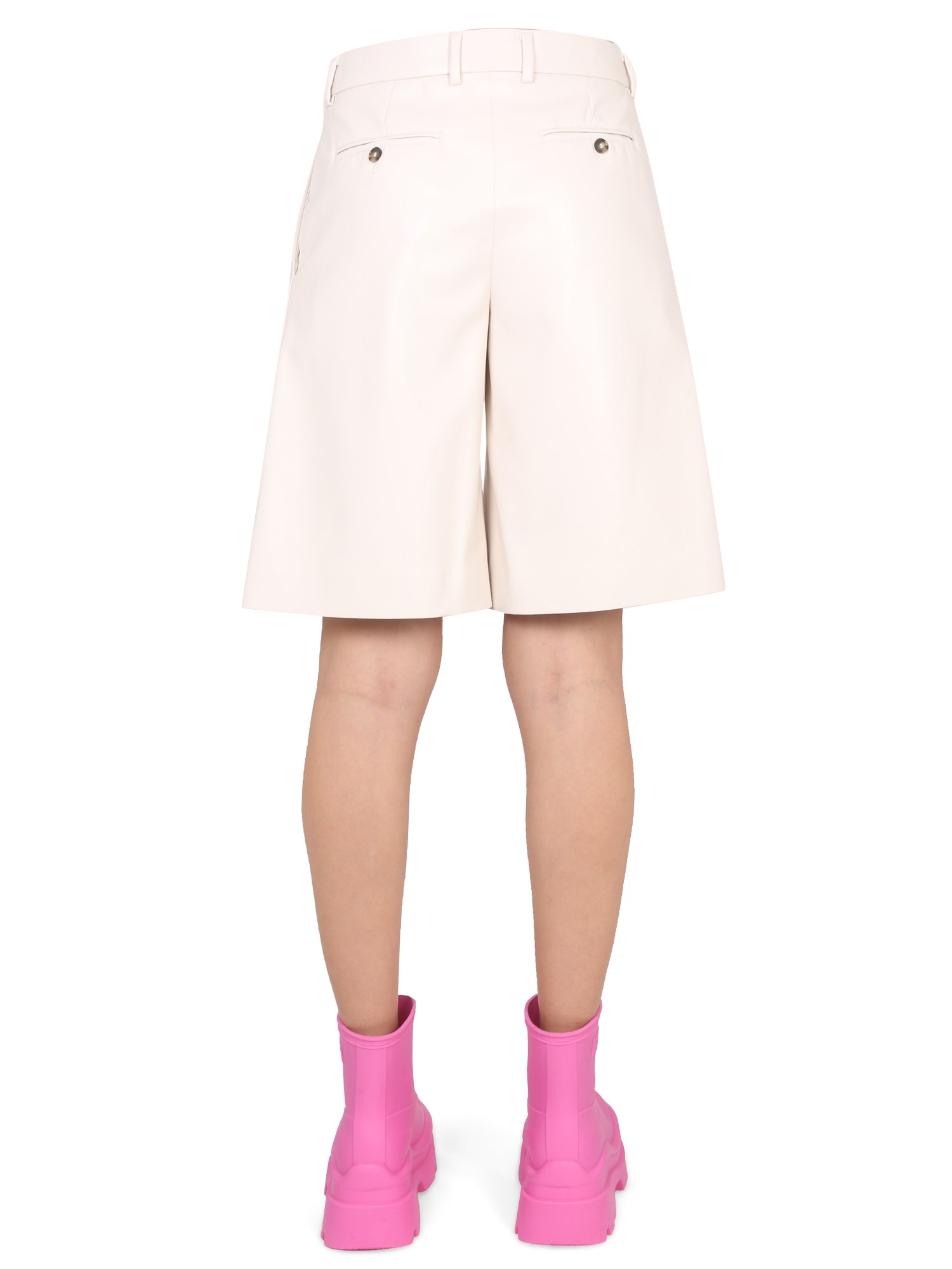 The faux leather Bermuda shorts from the house of MSGM are casual and sporty, with polyester construction. The shorts feature button closure, belt loops at the waist, two side pockets, and two welt pockets on the back. These shorts are made from a soft, thin material that is perfect for warm weather.