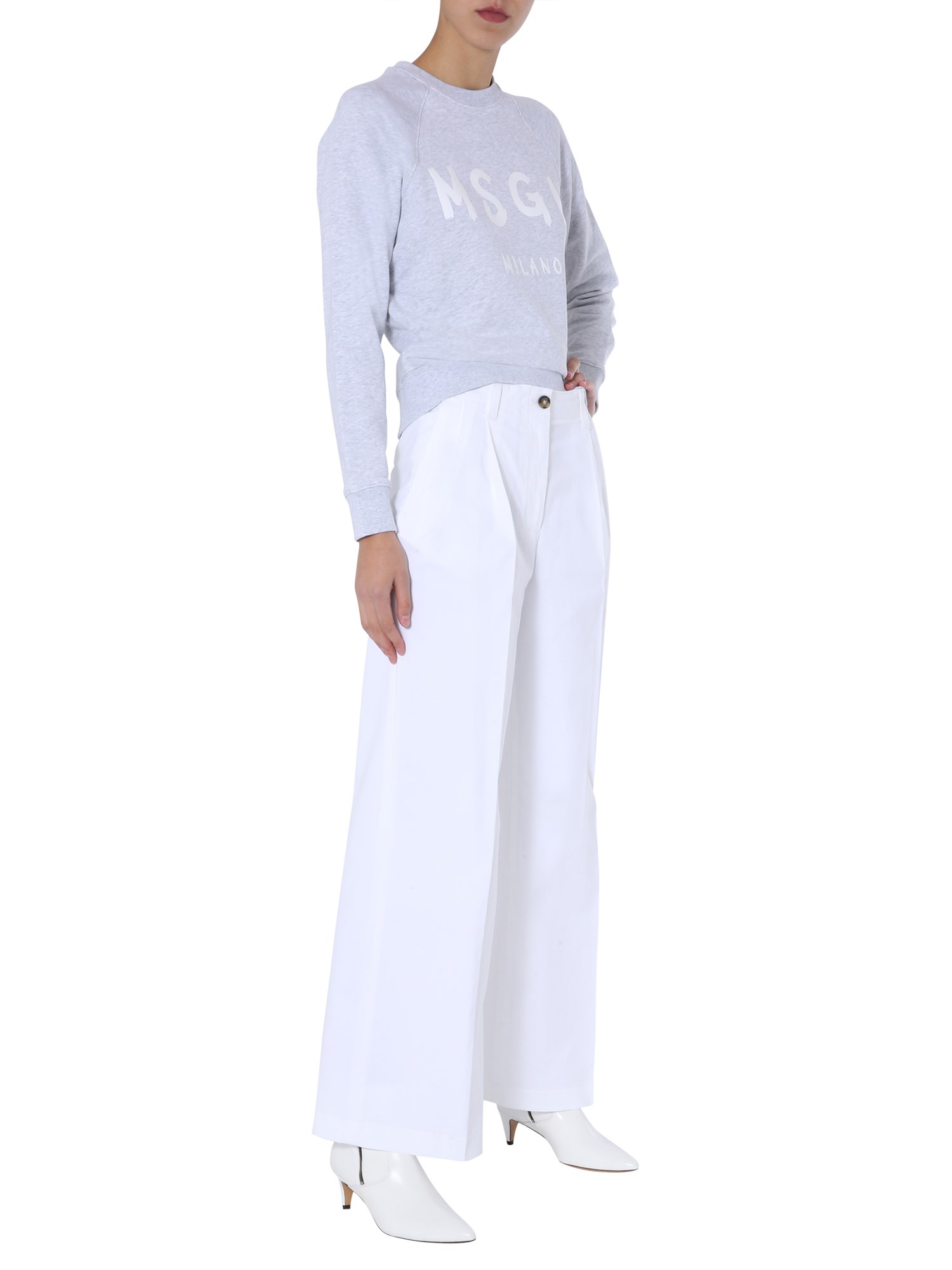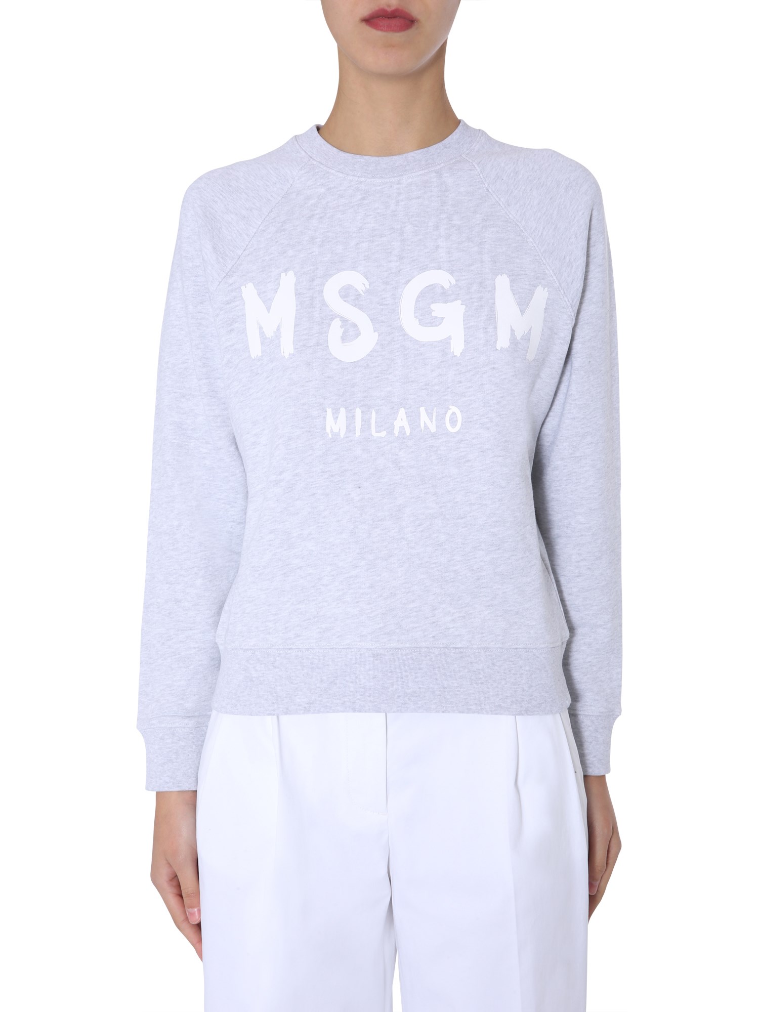 Revamp your casual clothing collection with this crew neck cotton sweatshirt from MSGM. It keeps you warm and insulated by securing the neck, cuffs and bottom with elasticated ends. The raglan-style sleeves complete the comforting structure. Also, the brushed logo at the front adds to the charming appeal of this sweatshirt.
