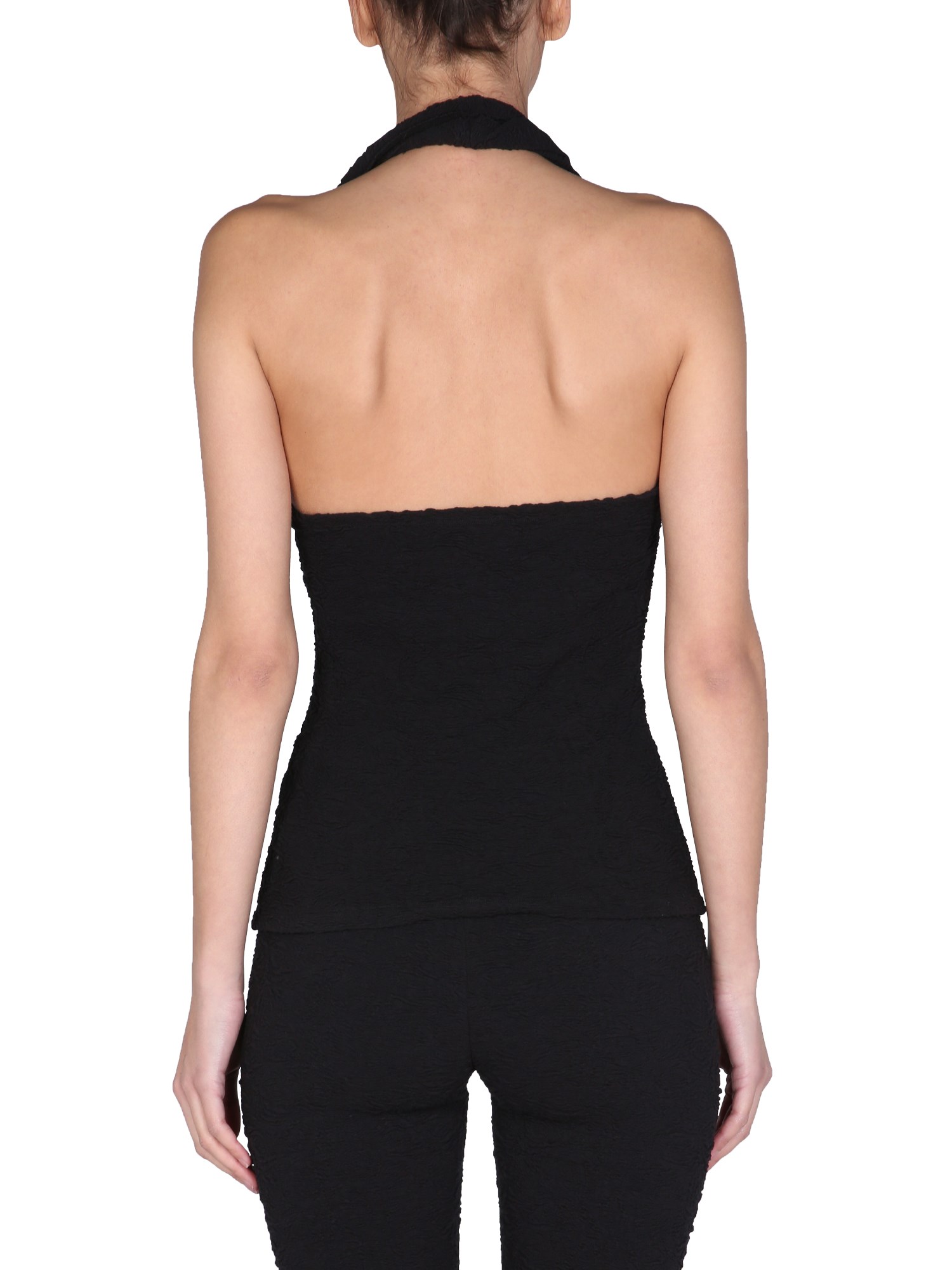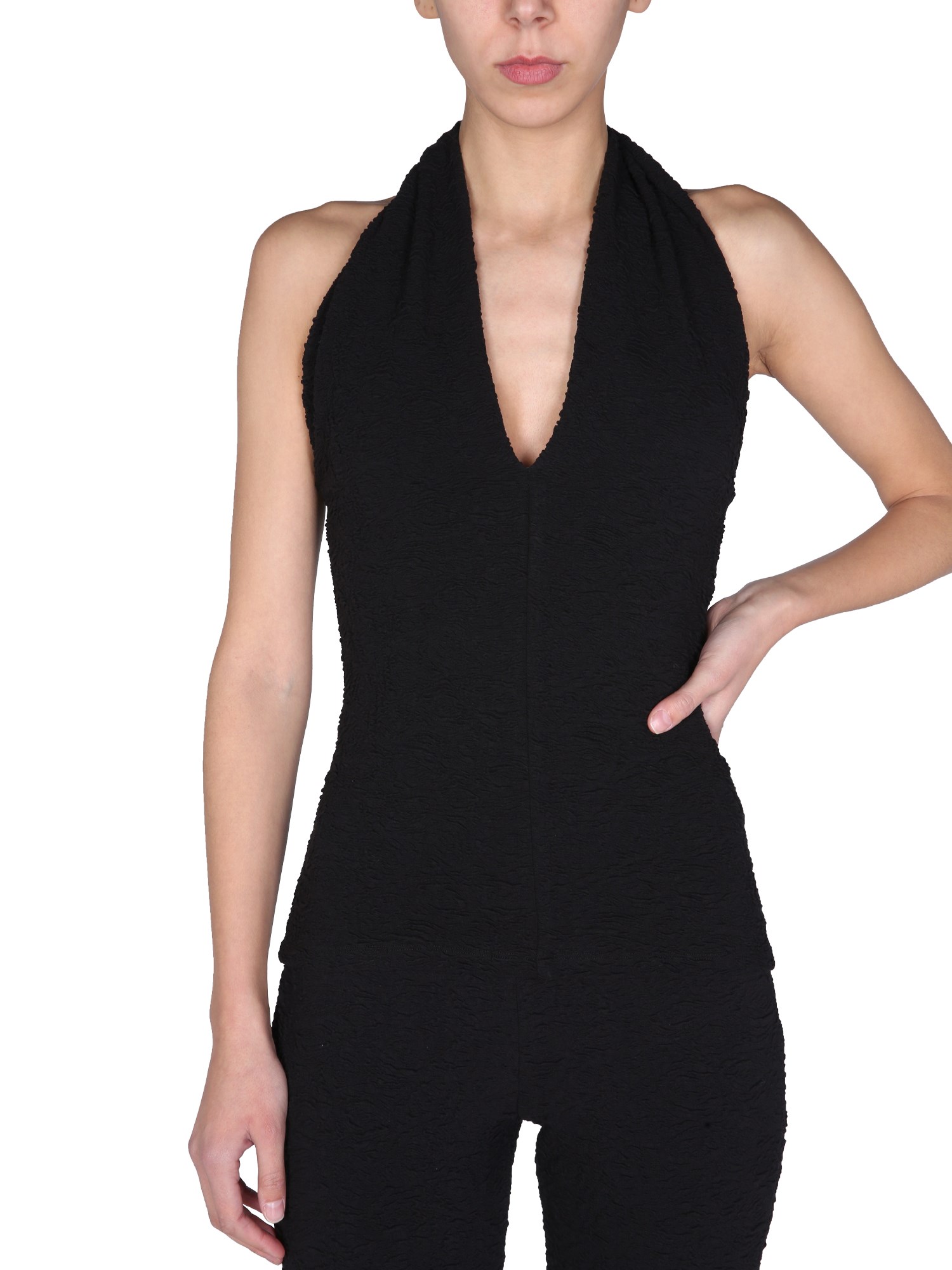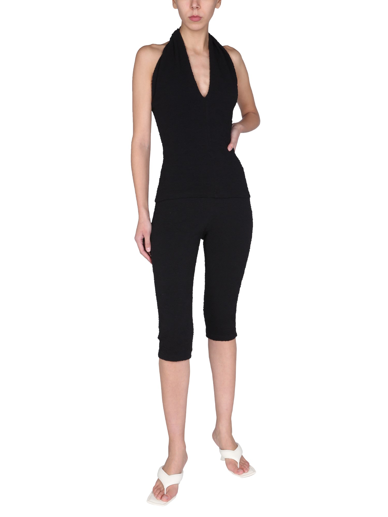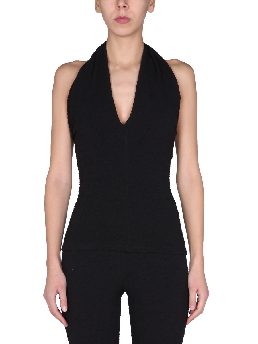 - V-NECK- BACK KNOT - 75% COTTON, 25% POLYAMIDE- MADE IN ITALY- MODEL IS 180 CM TALL AND WEARS SIZE 40 IT