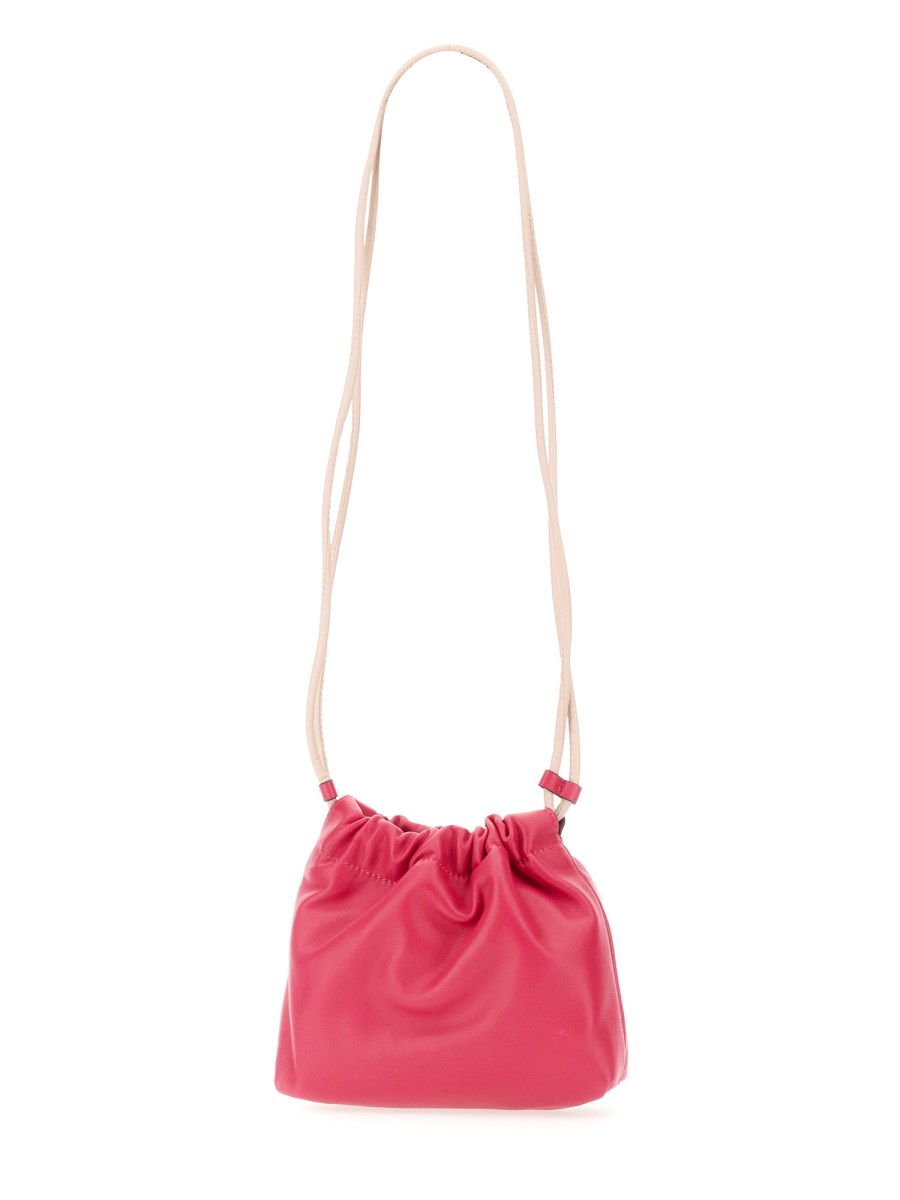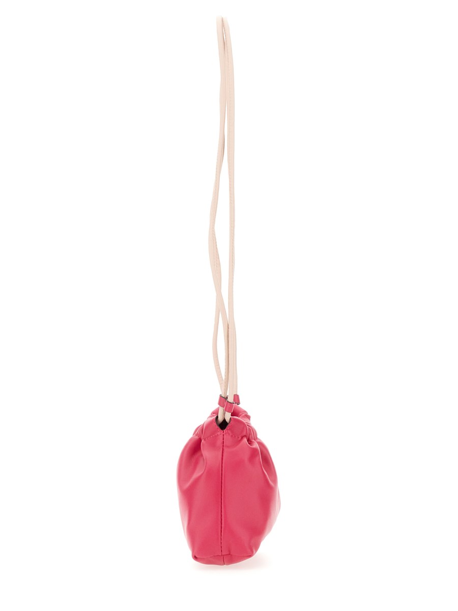 N21's small bag is the epitome of adorable portability and practicality. It's a wonderful accessory to your everyday bag and is made from lambskin leather. A mini handbag crafted from lambskin leather with a front logo and drawstring fastening. You can fit all your necessities into one convenient bag.