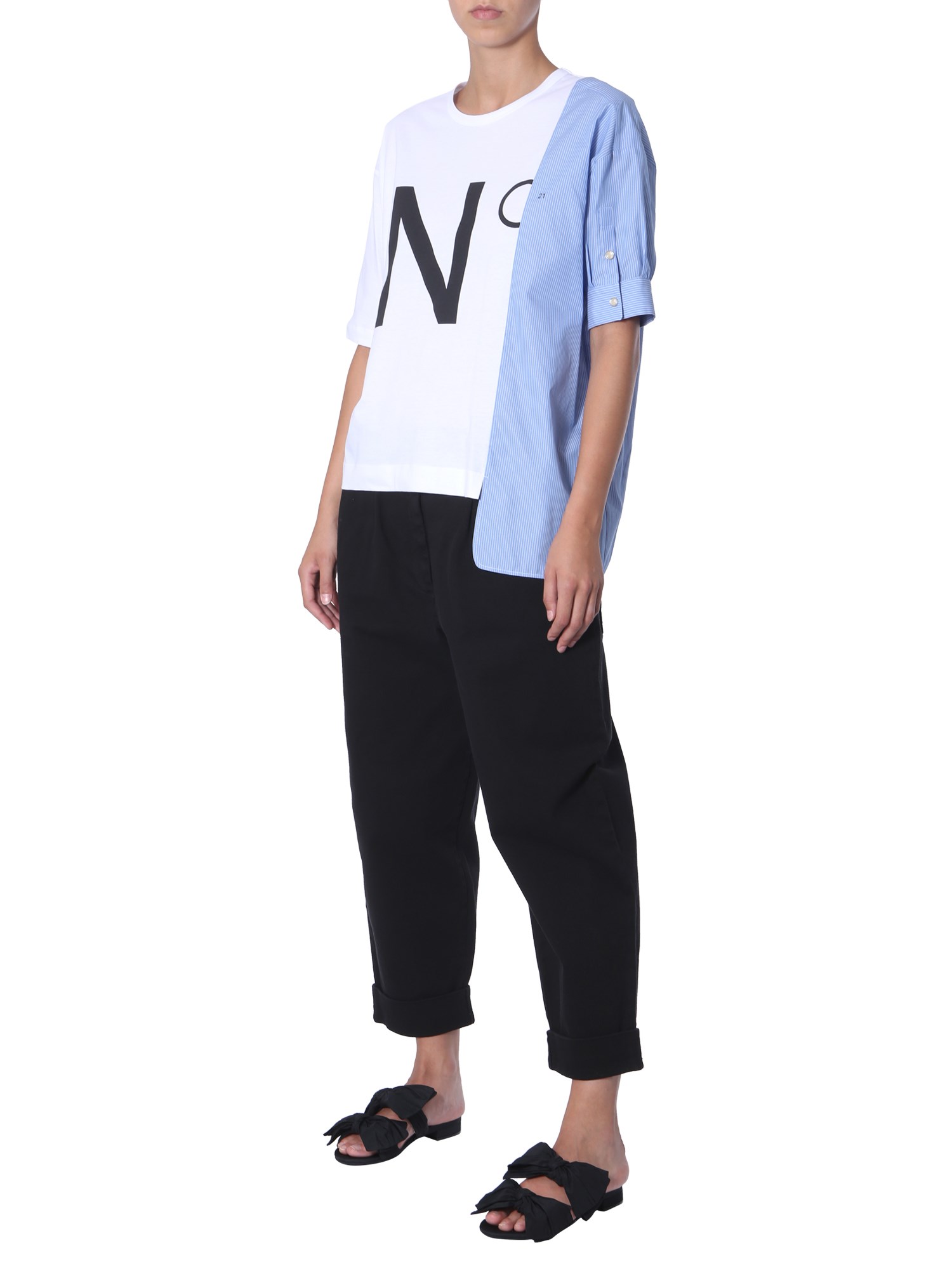 Flaunt your amazing choice in clothing with these high-waist jeans from N°21. The jeans are made in a combination of cotton and elastane that ensures breathability and stretch ability. They have a popular lapelled bottom that combines with loose-fit design to let you enjoy a cool and stylish ensemble.