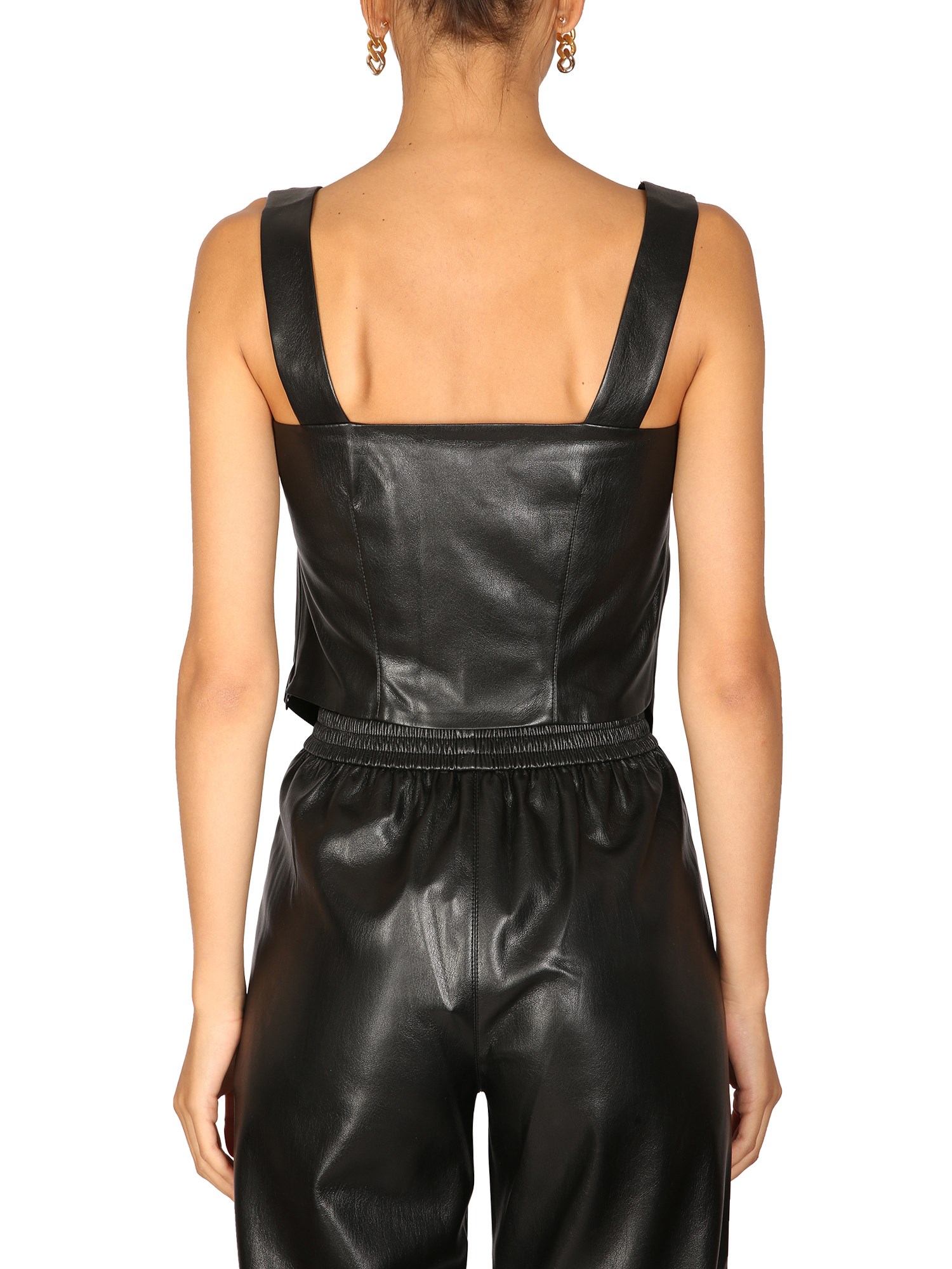 This stylish faux leather draped top by Nanushka is perfect for the season. It features a drape detail on the front and back of the shirt, a sleeveless design, and a draped neckline. It also has a subtle sheen that will look good with any skin tone. Pair this top with your favourite denim and a pair of boots for a casual day out.
