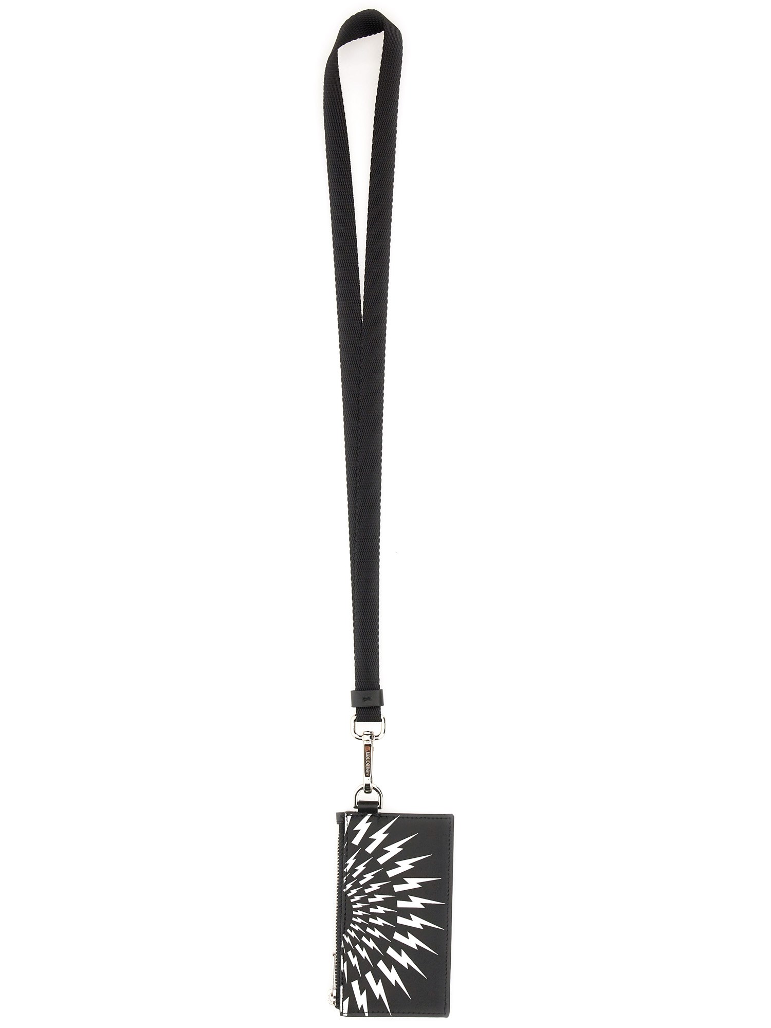 This card holder from Neil Barrett features a unique thunderbolt print that adds a modern and edgy touch to your everyday essentials. With its slim profile, this card holder easily slips into your pocket or bag, providing a convenient way to carry your essential cards wherever you go. The compact size ensures that it won't take up too much space and remains practical for daily use.