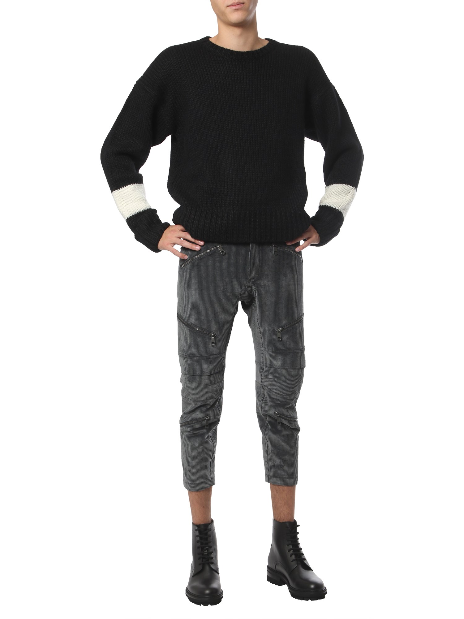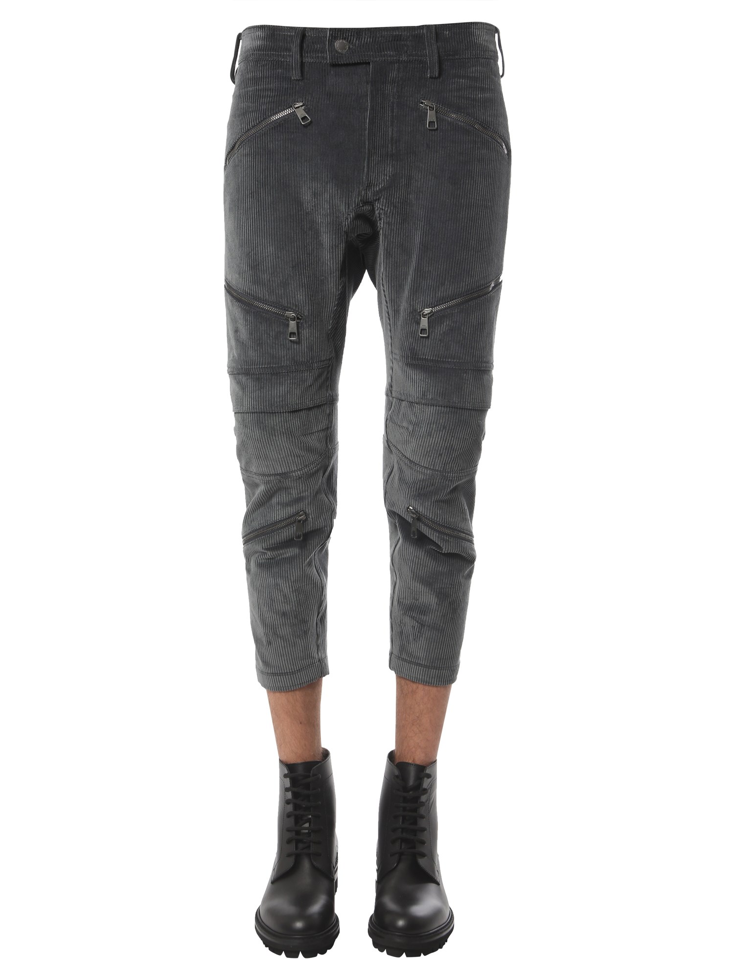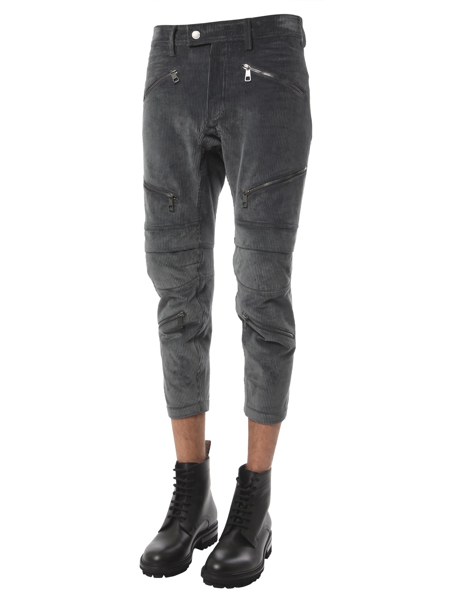 The Ergodynamic Motor Cross velvet pants by Neil Barrett are designed to the purest style form. These ribbed pants are made with 76% cotton for comfort, 22% polyamide for resilience, and 2% elastane for stretchability. They have removable knee pads to perform all kinds of activities conveniently. The one back and two side zip pockets are included for functionality.
