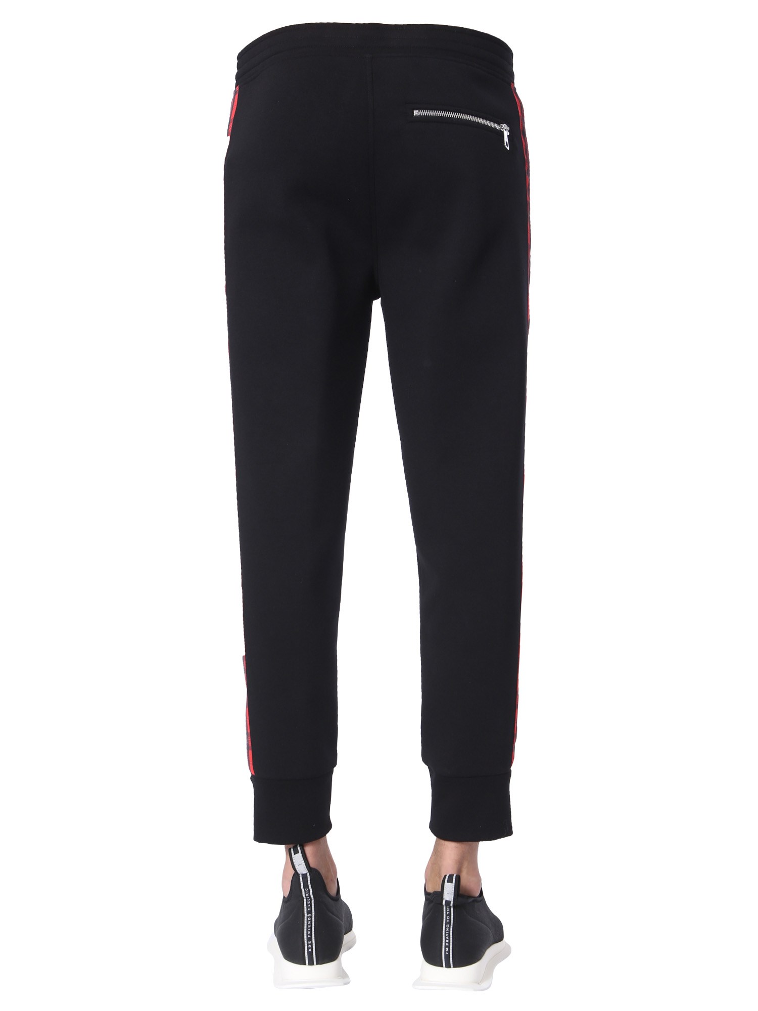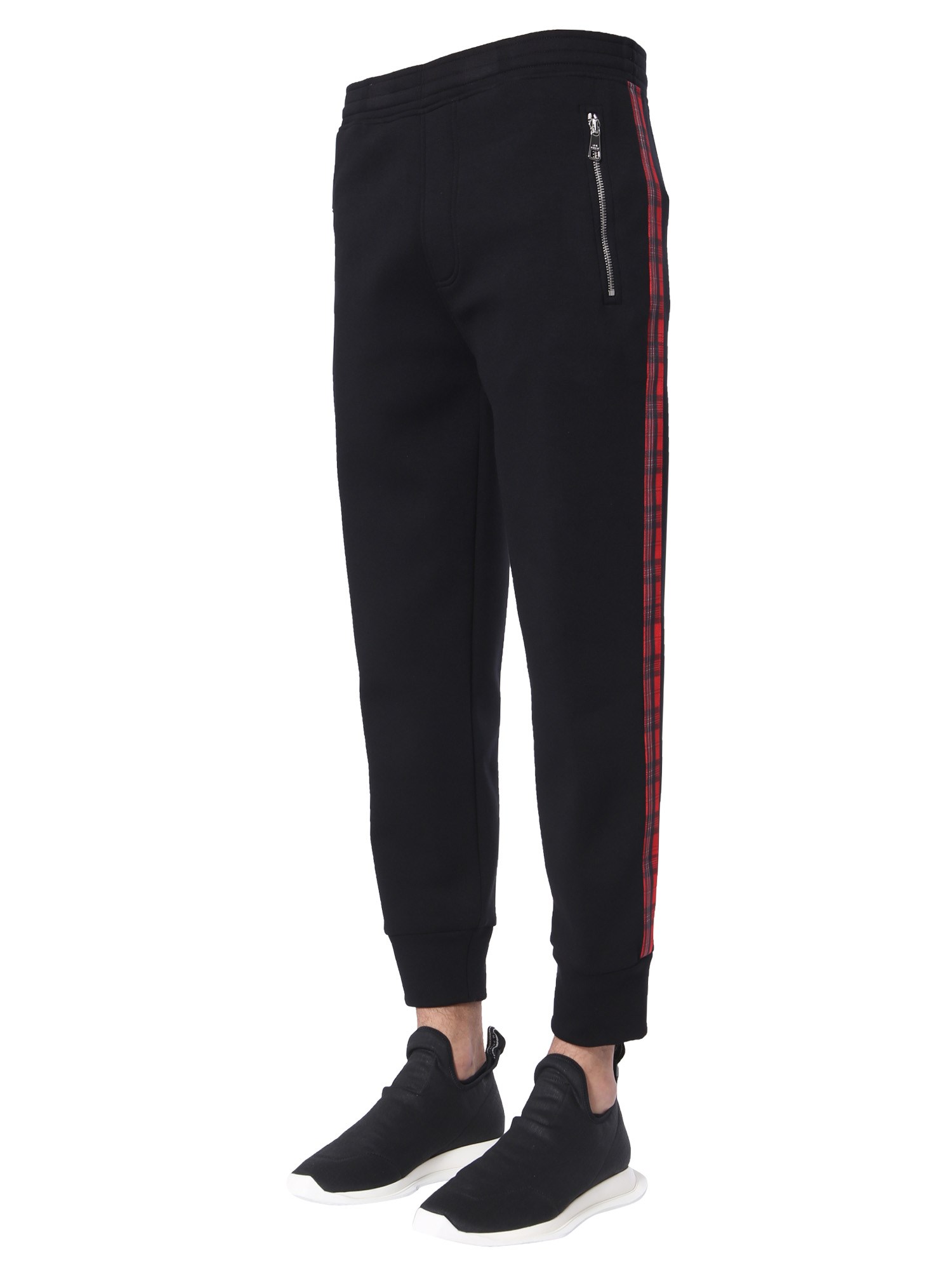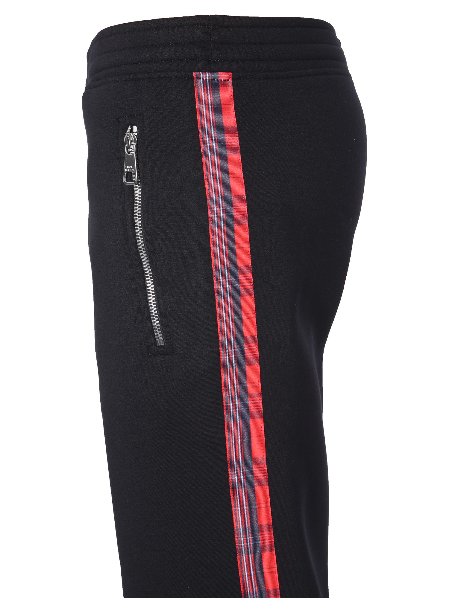 Whether you’re going for jogging or having a house party, these skinny fit trousers from Neil Barrett. The trousers are made from a blend of viscose and elastane that ensures a stretch and shape retention. They feature an elastic waistband closure with coulisse to enjoy comfortable wear all day long. With the tartan sidebands, the trousers look trendy and will raise your attle quotient when paired with a plain T-shirt.