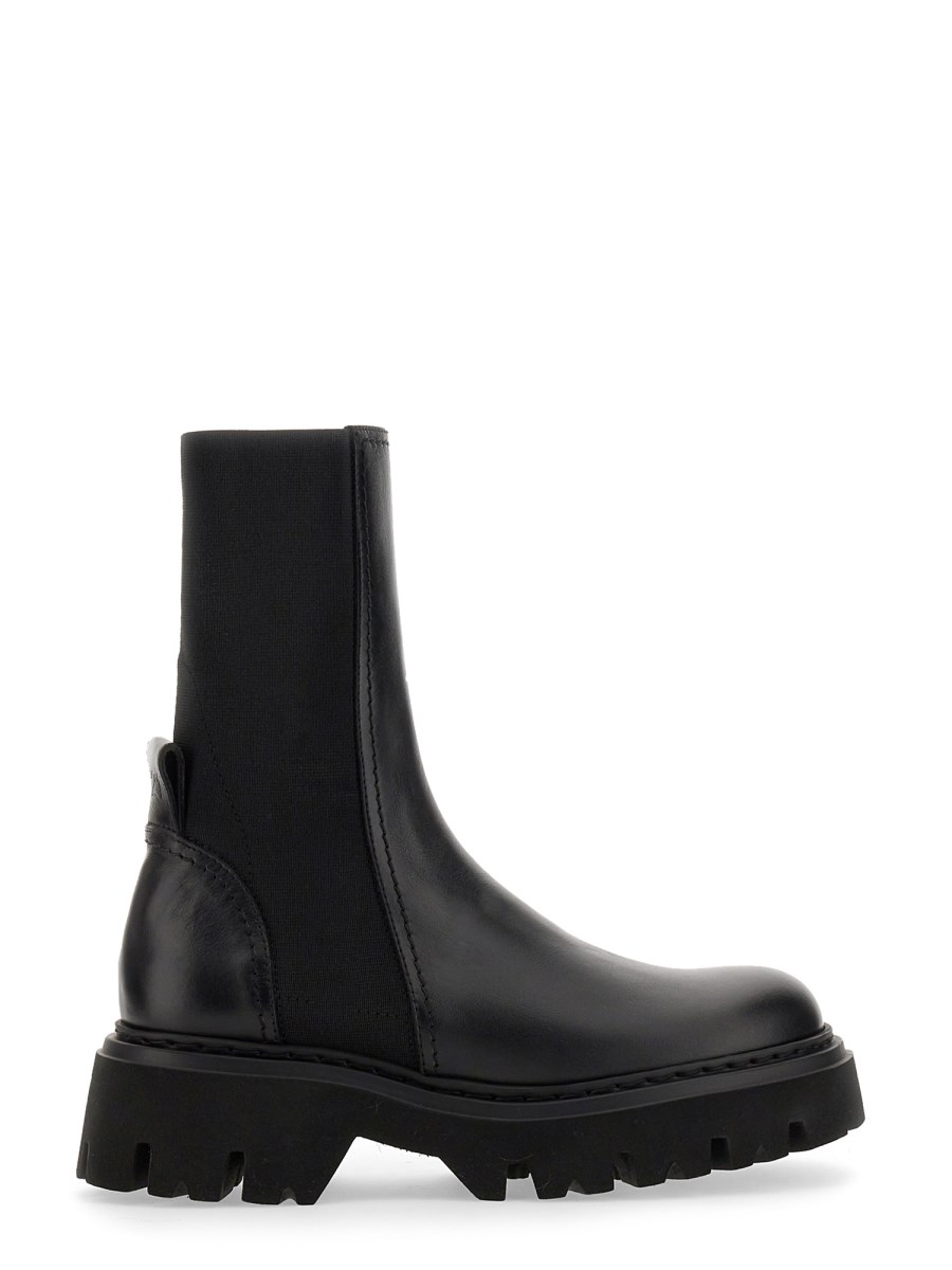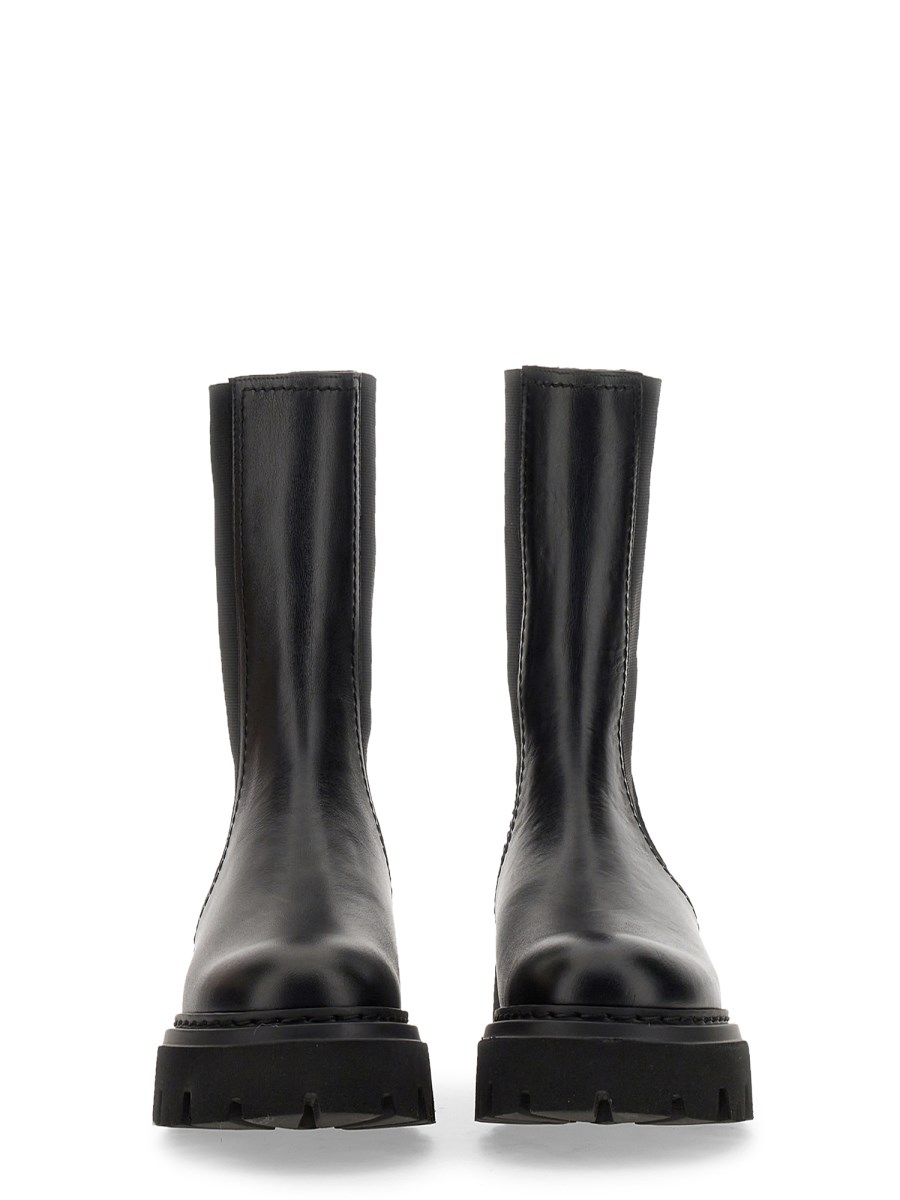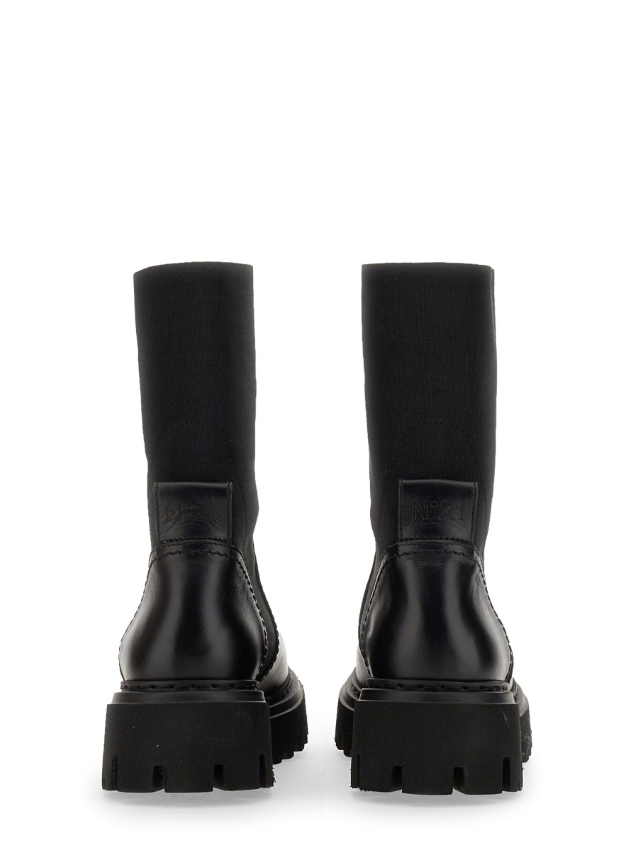 The Chelsea boots from N°21 are a staple in the shoe world, with their classic style and timeless appeal. It features a leather upper, elastic side panel, and square toe. The slip-on style boots have a block-heel design. The combination of soft suede and leather provides a comfortable, casual look.