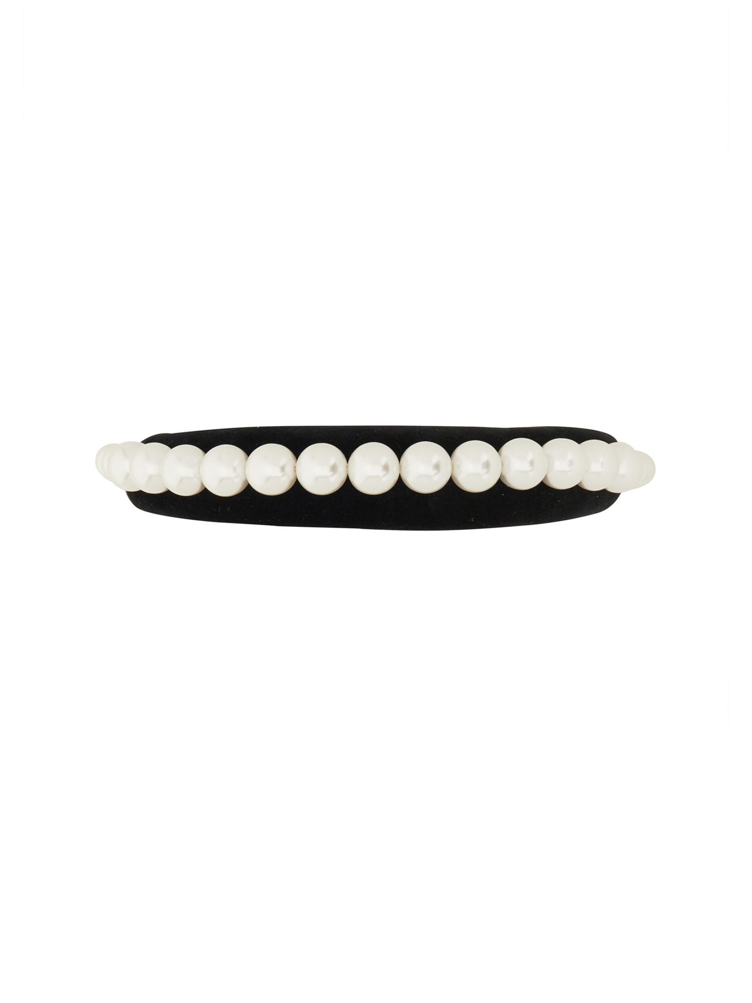 The Velvet Headband with Pearls from Nina Ricci exudes elegance and sophistication, making it a perfect accessory for any occasion. Crafted from luxurious velvet, this headband features exquisite pearl embellishments that add a touch of glamour. Its versatile design allows it to complement both casual and formal attire, ensuring you make a stylish statement wherever you go. Ideal for enhancing your hairstyle, this headband combines comfort with high fashion, making it a must-have addition to your accessory collection.