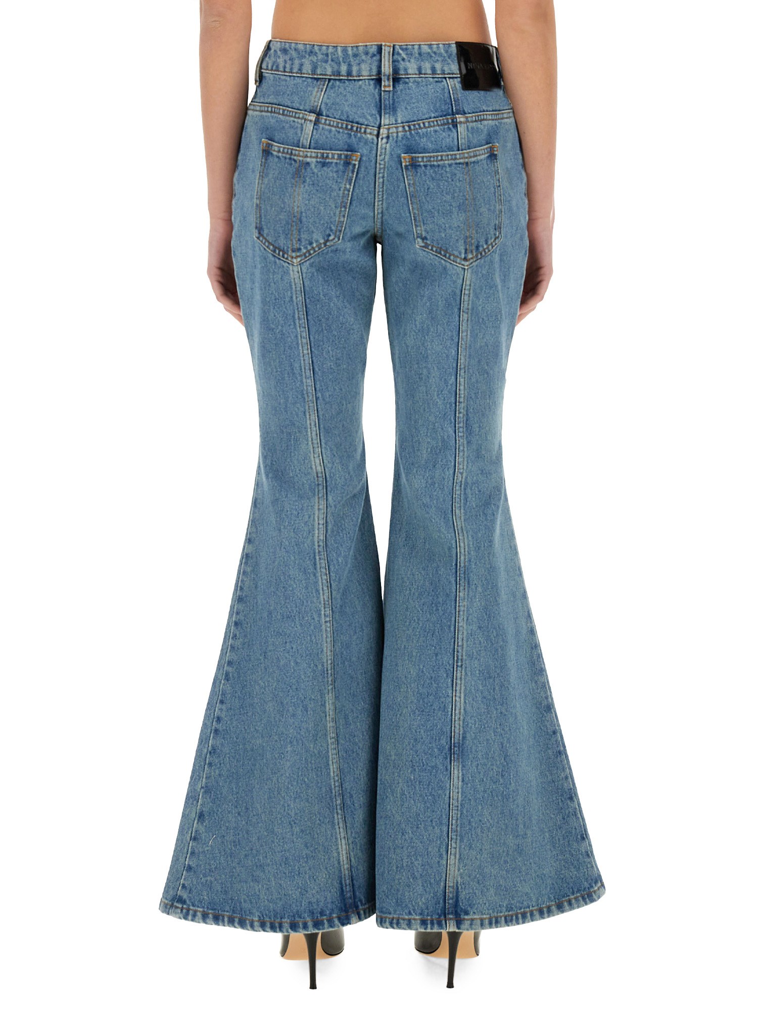 Elevate your wardrobe with the Flared Jeans from Nina Ricci, a perfect blend of classic style and modern flair. Crafted from high-quality denim, these jeans feature a flattering flared silhouette that elongates the legs and adds a touch of sophistication to any outfit. The versatile design allows for easy pairing with both casual and dressy tops, making them an essential addition to your collection. Experience comfort and elegance with every wear, and step out in confidence knowing you look effortlessly chic.