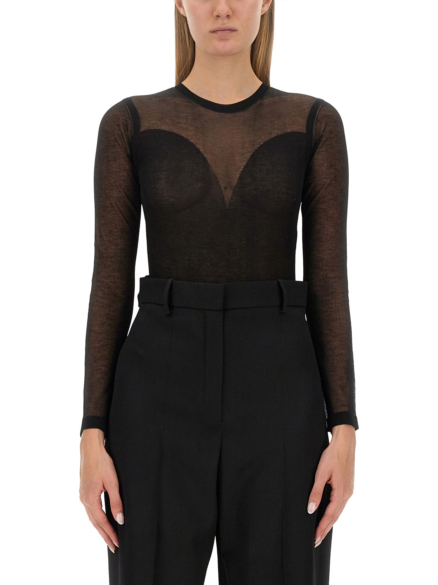 This top from Nina Ricci is a versatile top that can be worn for work or a casual outing. The material is soft and stretchy, so it will move with you. The sleeves are full- length, so it can be worn with your favourite pair of leggings or jeans. This top is perfect for the fall and winter months, with its cosy texture and cool material.