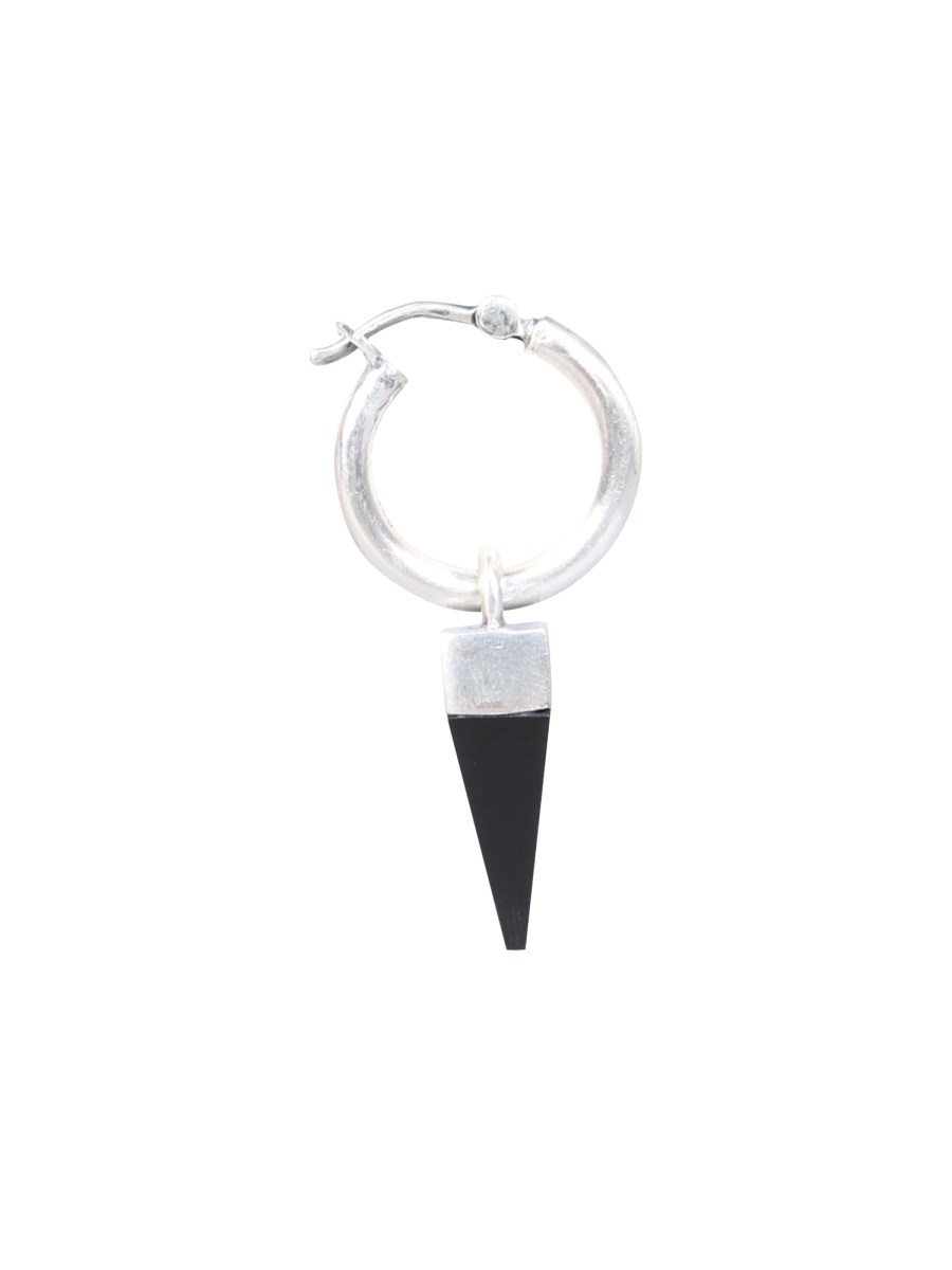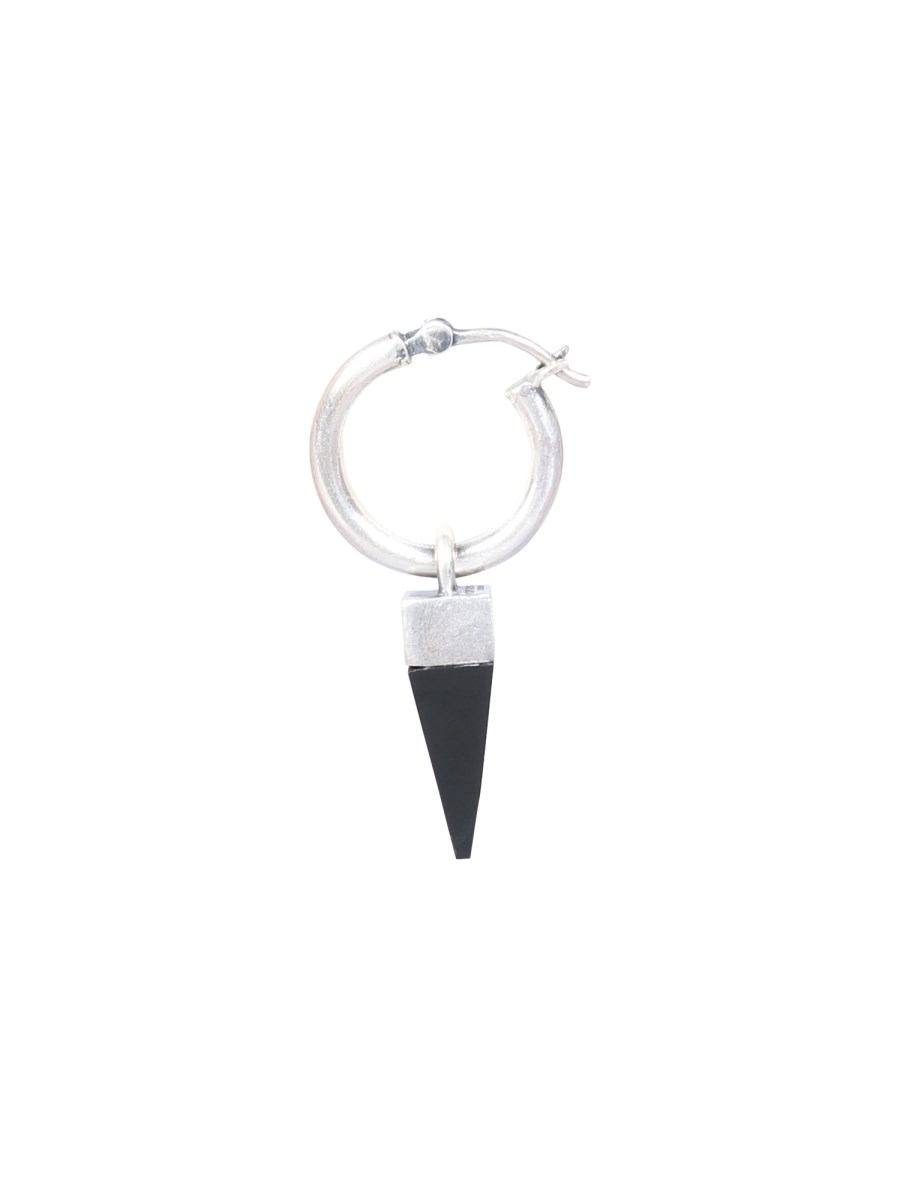 Complete your casual look with the Single Earring from Northskull. The earring features a beautiful design with a stylish pattern. Crafted using a winning combination of sterling silver and onyx, this earring has a shiny surface. The pyramid stone charm gives this earring a gorgeous look. It has a clip closure for ease wearing.