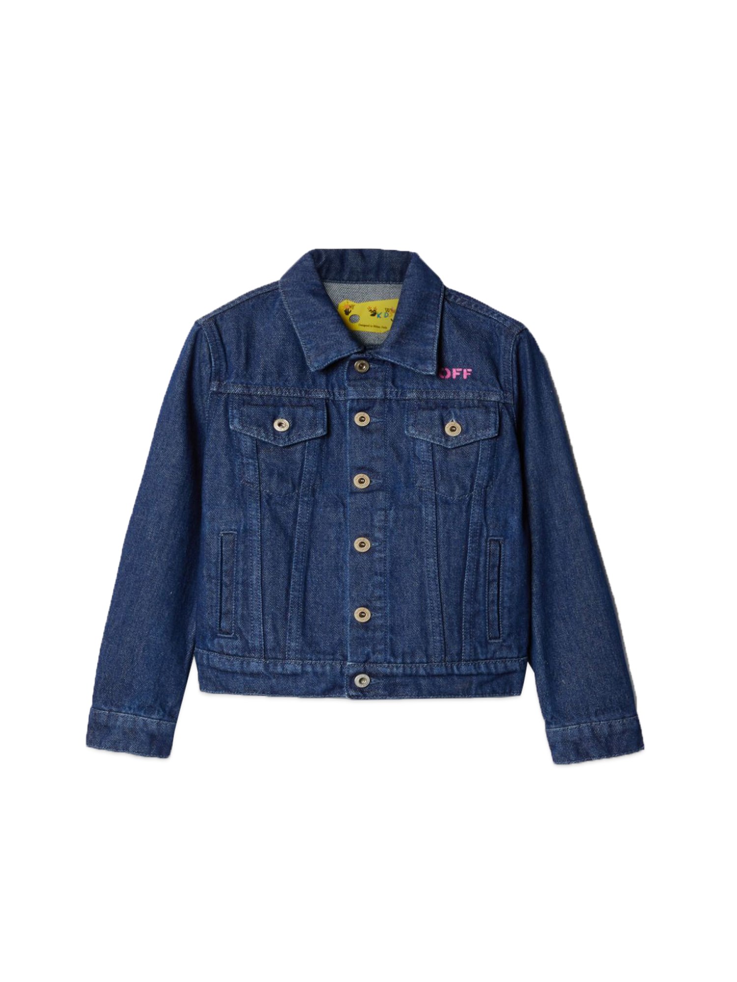 Elevate your street style with this off stamp plain denim jacket from Off-White. Crafted from high-quality denim, this jacket features the iconic Off-White stamp logo on the back, adding a touch of urban edge to your look. The classic denim jacket silhouette is perfect for layering over any outfit, making it a versatile and stylish addition to your wardrobe. Whether you're dressing up for a night out or keeping it casual during the day, this Off-White denim jacket is sure to make a statement.