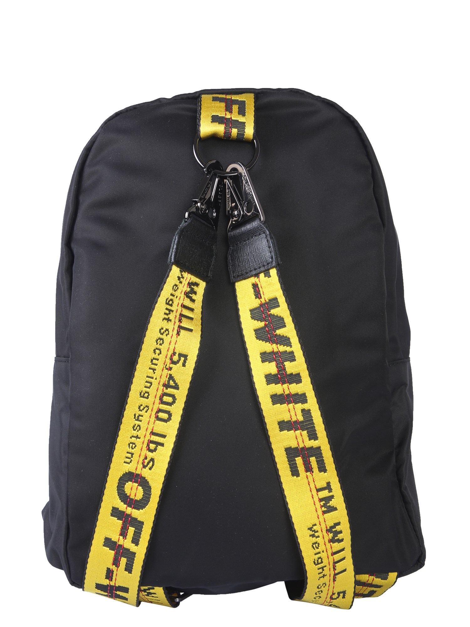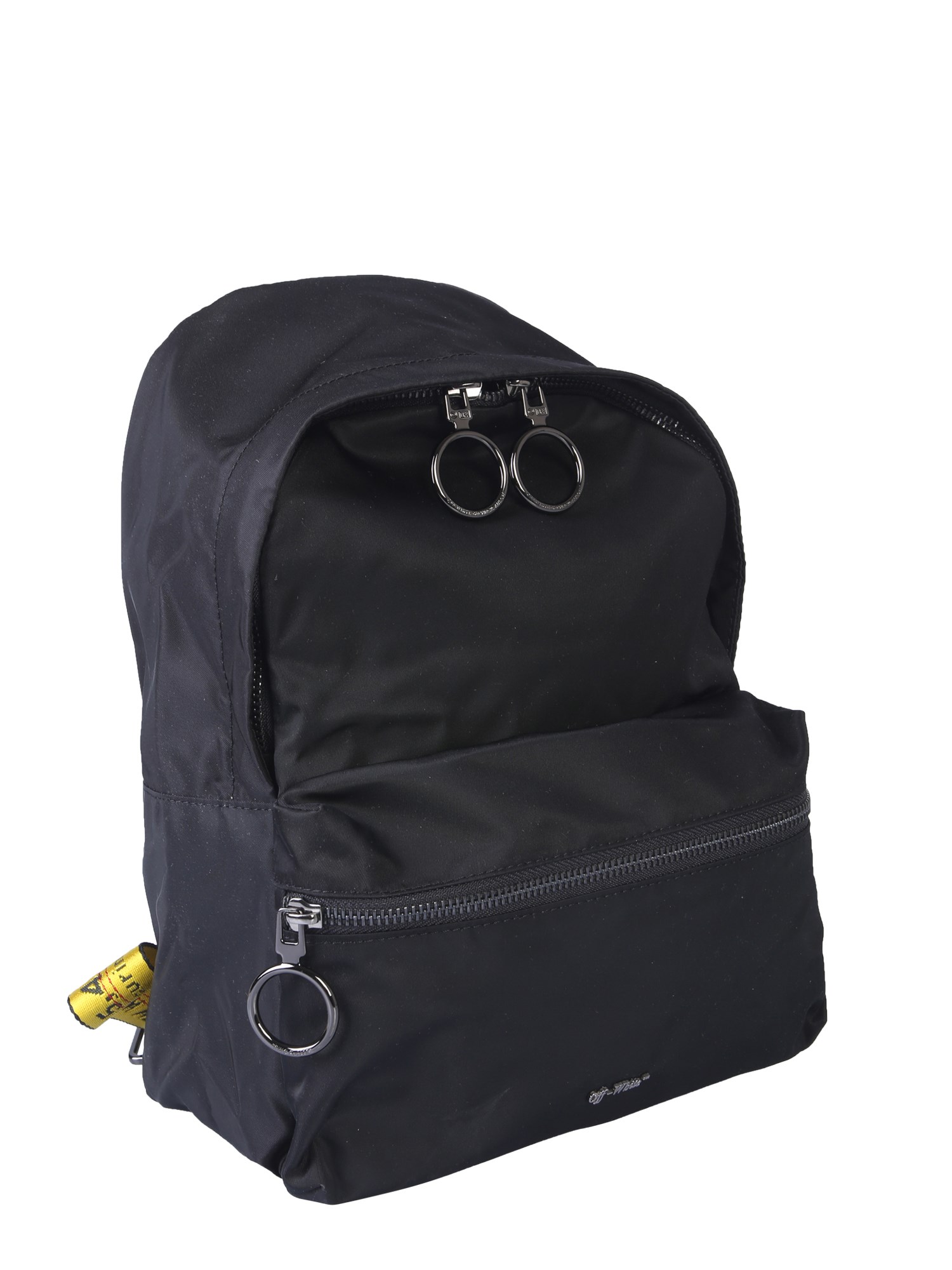 Carry all your essential items in an organized way by loading them up in this Off-White backpack with logoed shoulders. Using mostly polyamide, this bag is strong and long-lasting while also featuring a smooth surface. The zip closure is attached with large hoops to make it easy to work with.
