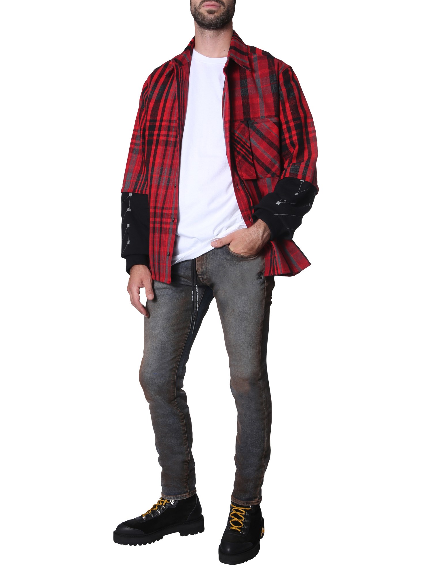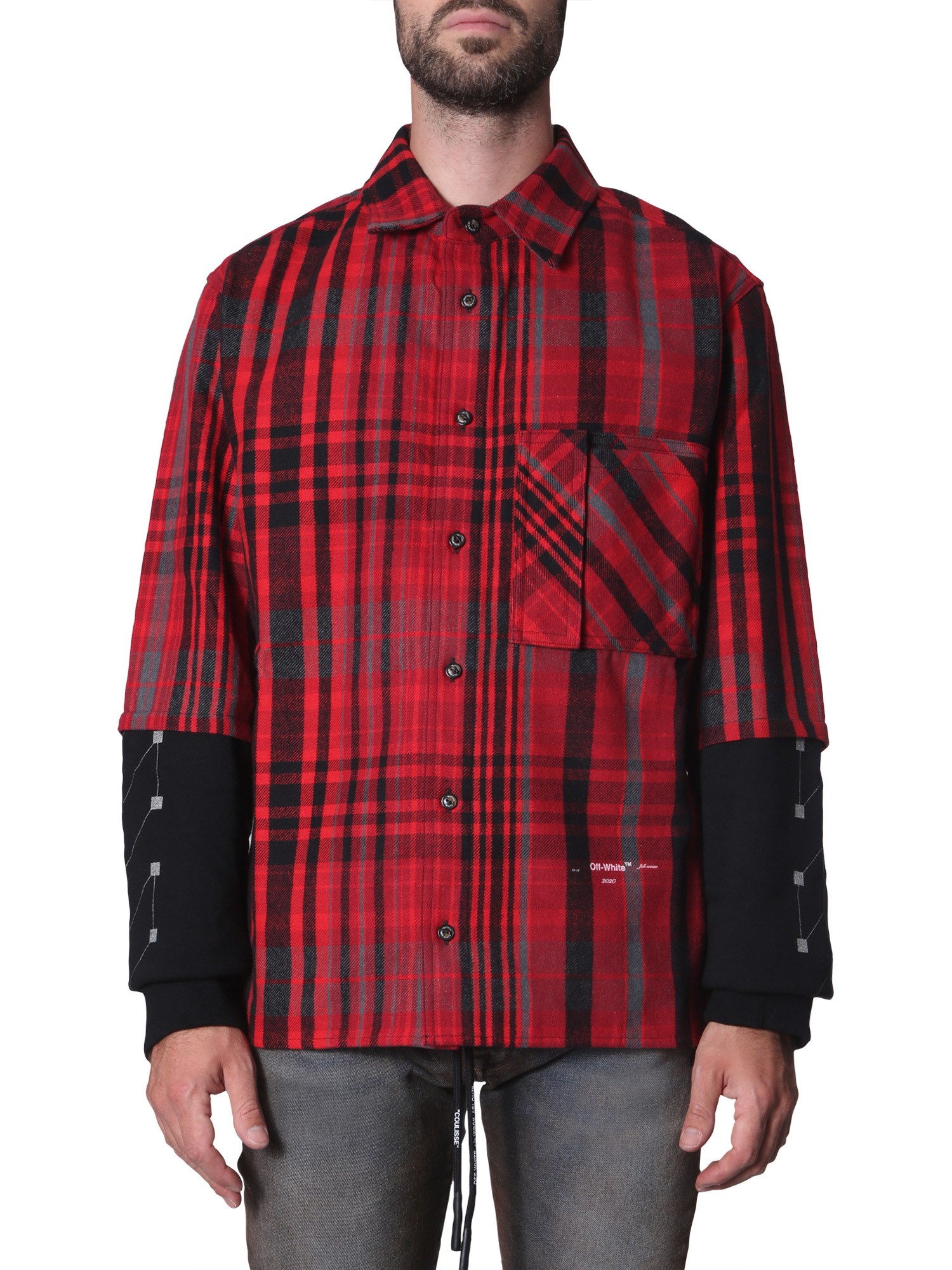 Head out for the date night in the Tartan Fantasy shirt from Off-White. This printed shirt is made with a blend of cotton, polyester, viscose, and polyamide to keep you at comfort throughout the time. It has a front button closure for an easy wear. There are two chest pockets for you to keep all the essentials safe.