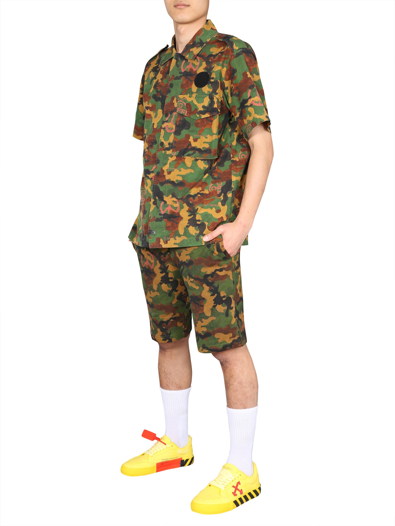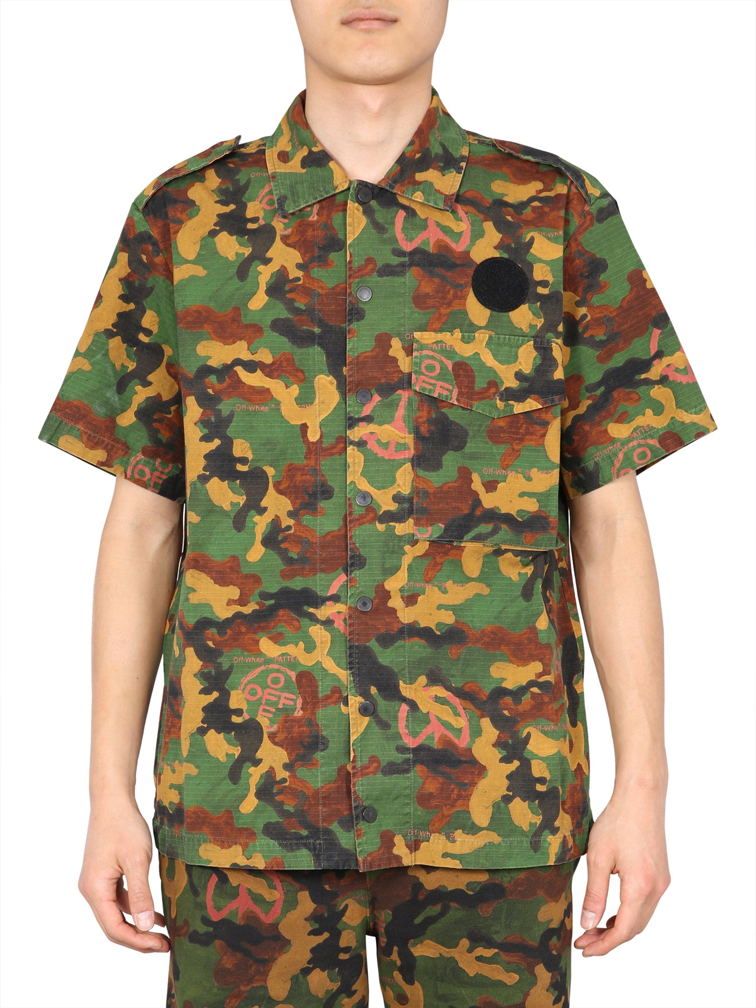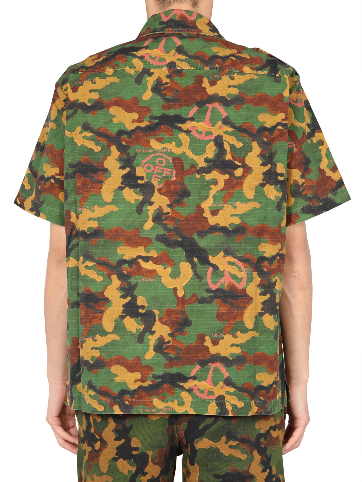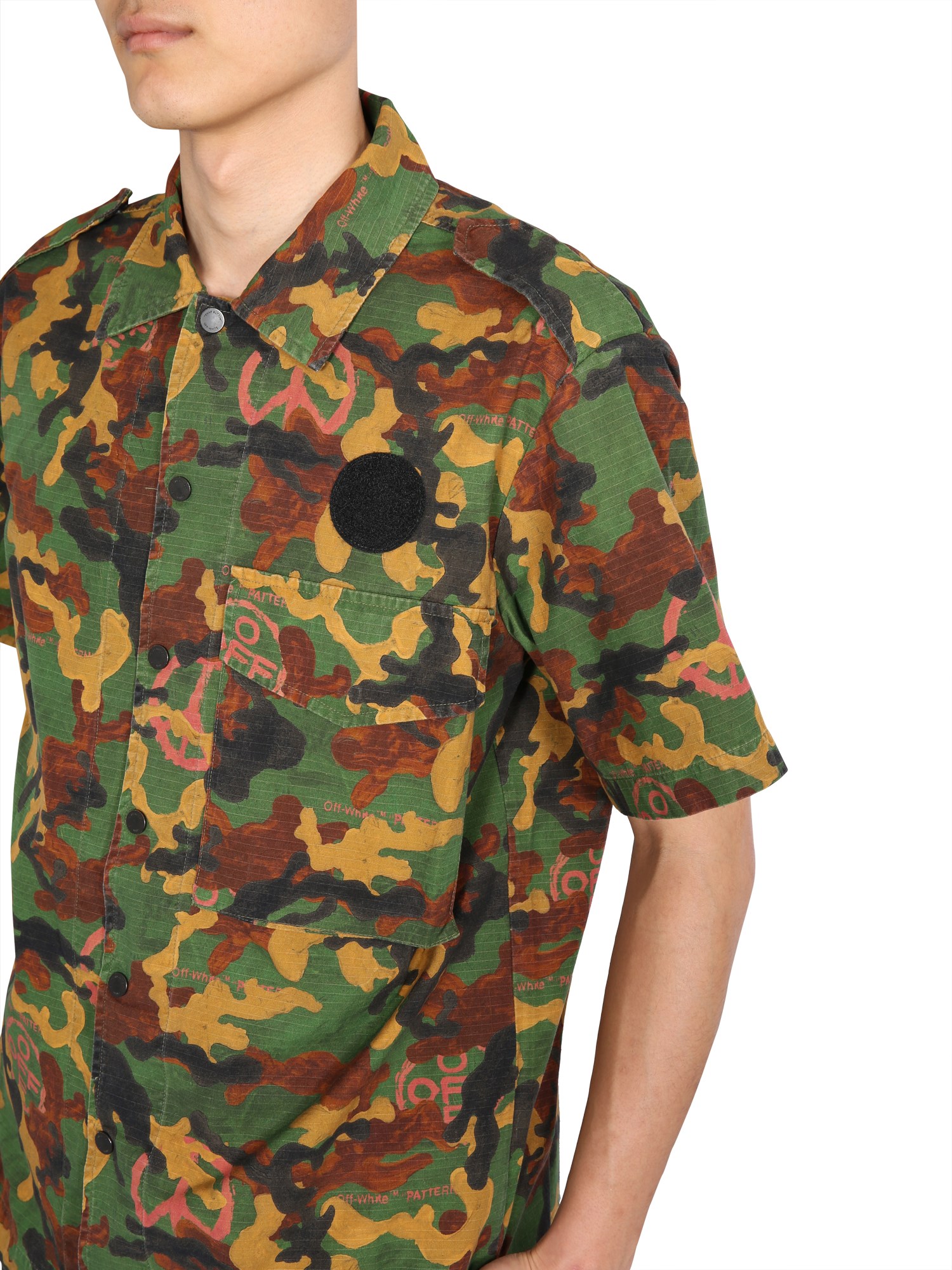 Look stylish, look attractive in the camouflage shirt by Off-White. Made of 100% cotton, this army print shirt would keep you comfortable in every season. It has an automatic button closure and a chest pocket with flap. Pair up the shirt with army cargos and shoes to create the “look of the day”.