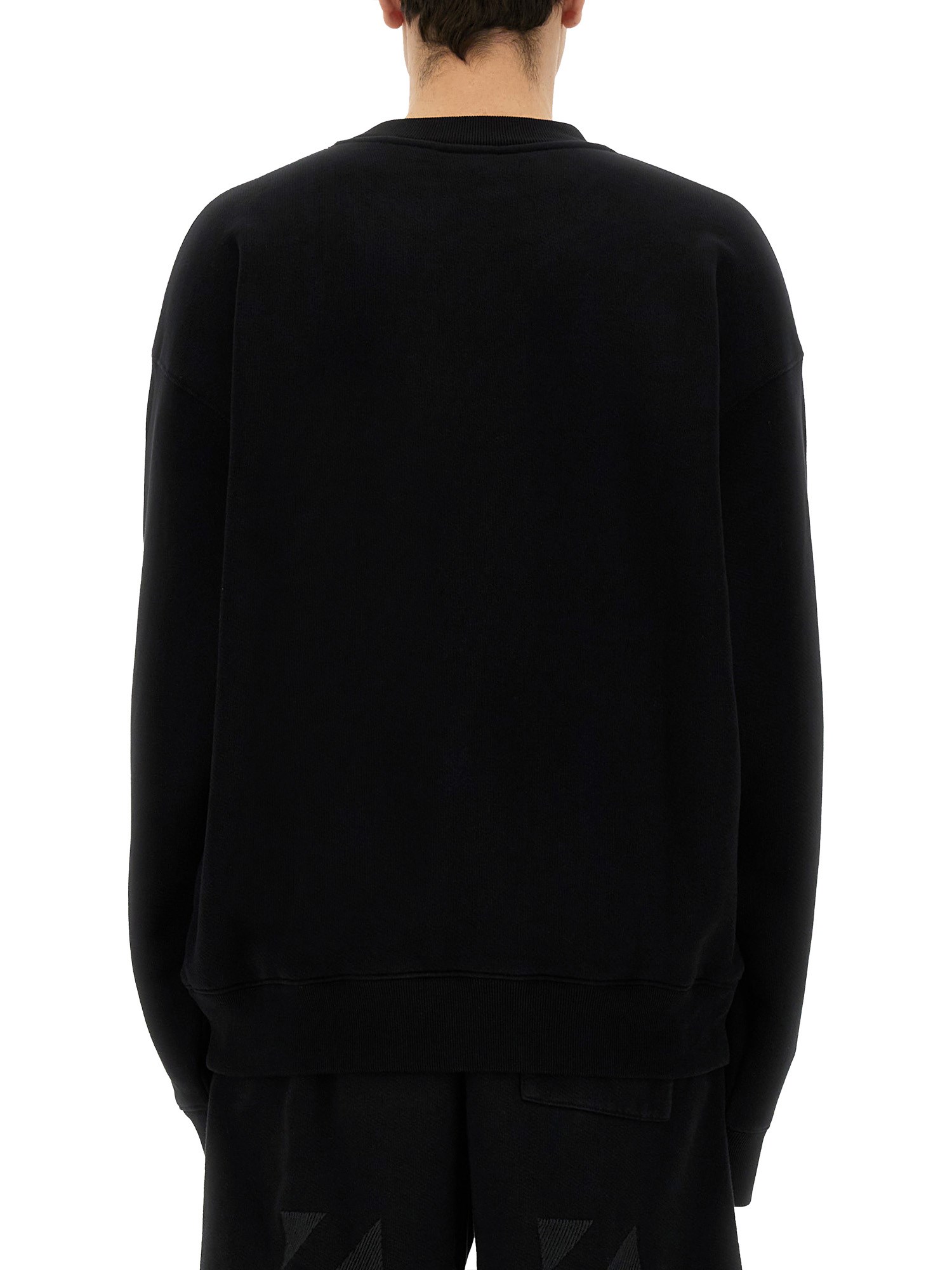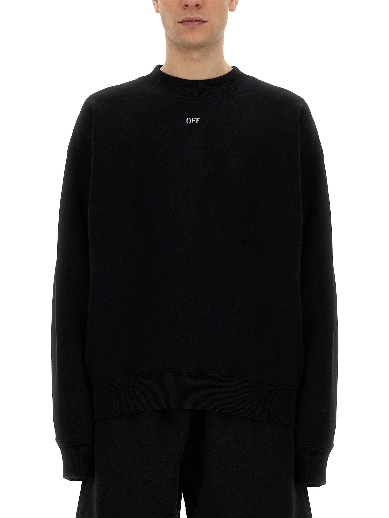 This Off-White sweatshirt features a distinctive logo, embodying the brand's signature streetwear aesthetic. Crafted from high-quality materials, it offers both comfort and style, making it a versatile addition to any wardrobe. The bold logo prominently displayed enhances its contemporary appeal, while the relaxed fit ensures ease of movement. Ideal for casual outings or lounging, this sweatshirt seamlessly combines fashion and functionality.