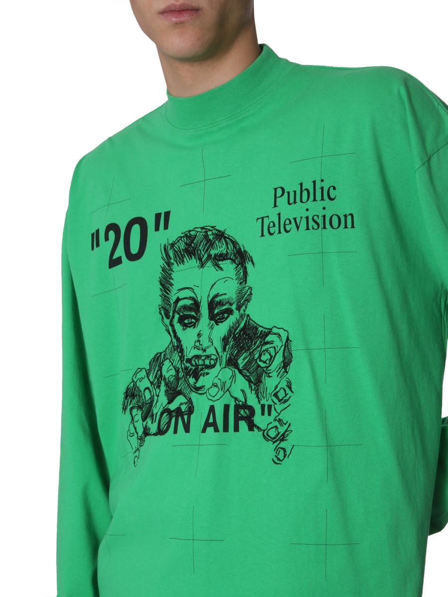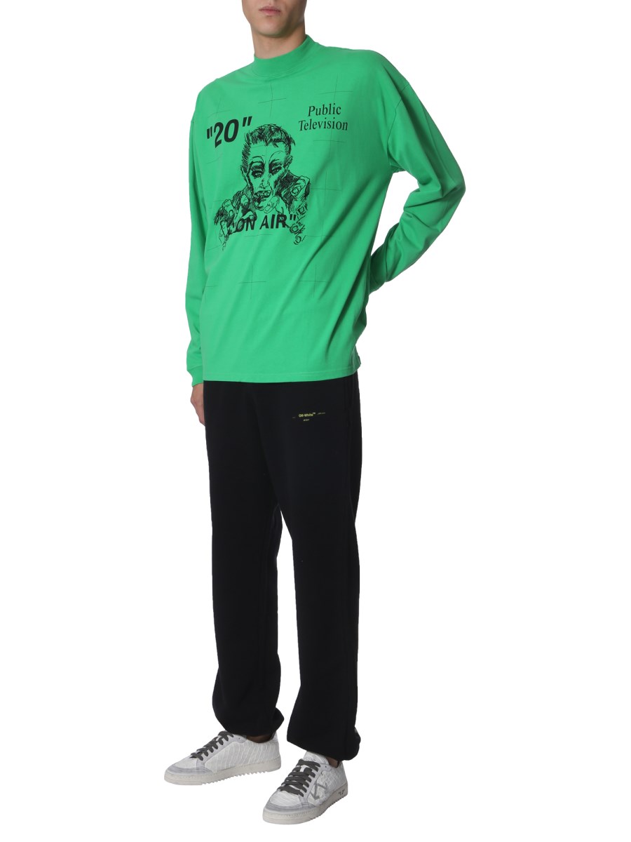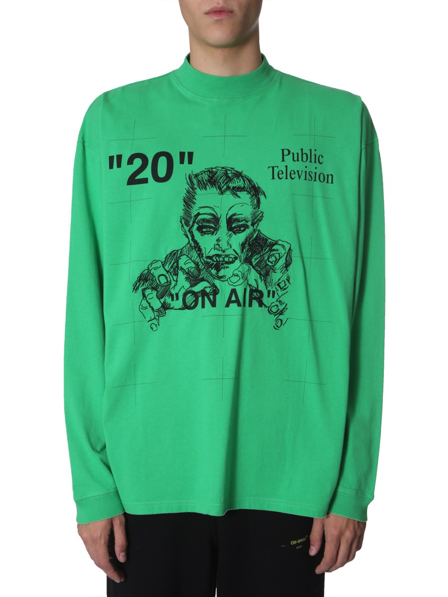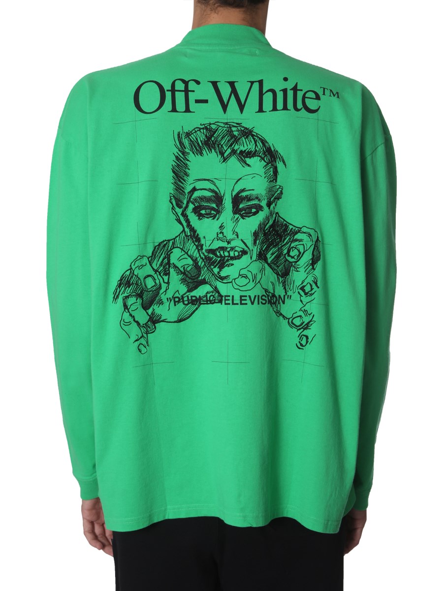 Add a pop of bright and vibrant colours to the wardrobe with this oversize fit T-shirt from Off-White. The "mirko artist" print at the front enhances its style quotient. Being cotton based, the T-shirt is breathable and has excellent colour retention. Also, the brushed interior gives a smooth and comfortable next-to-skin feel.