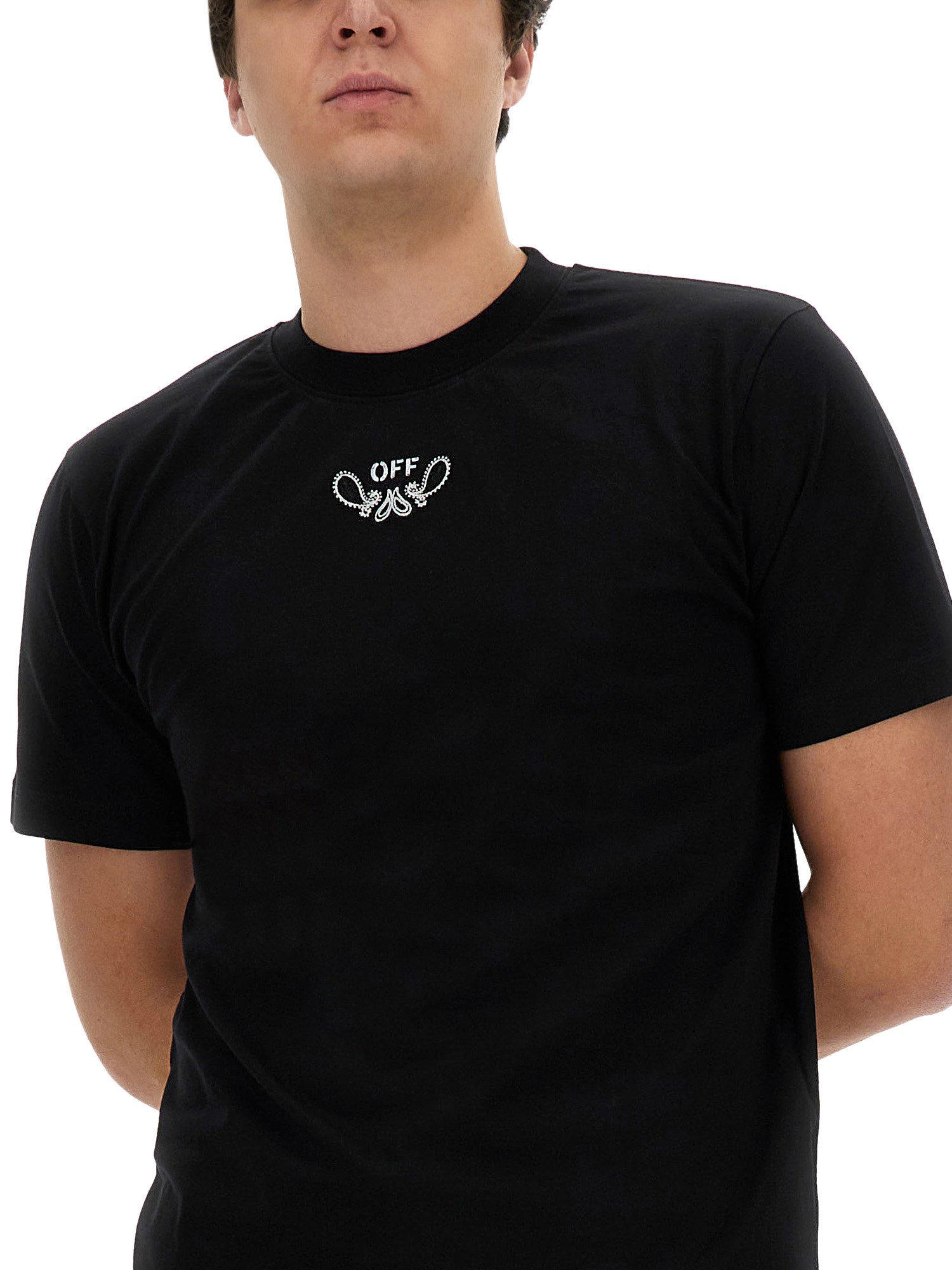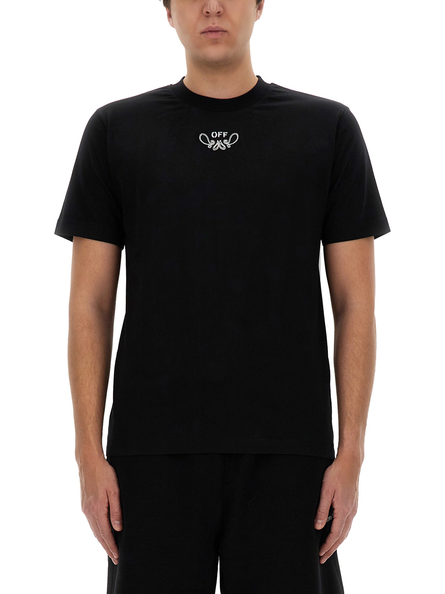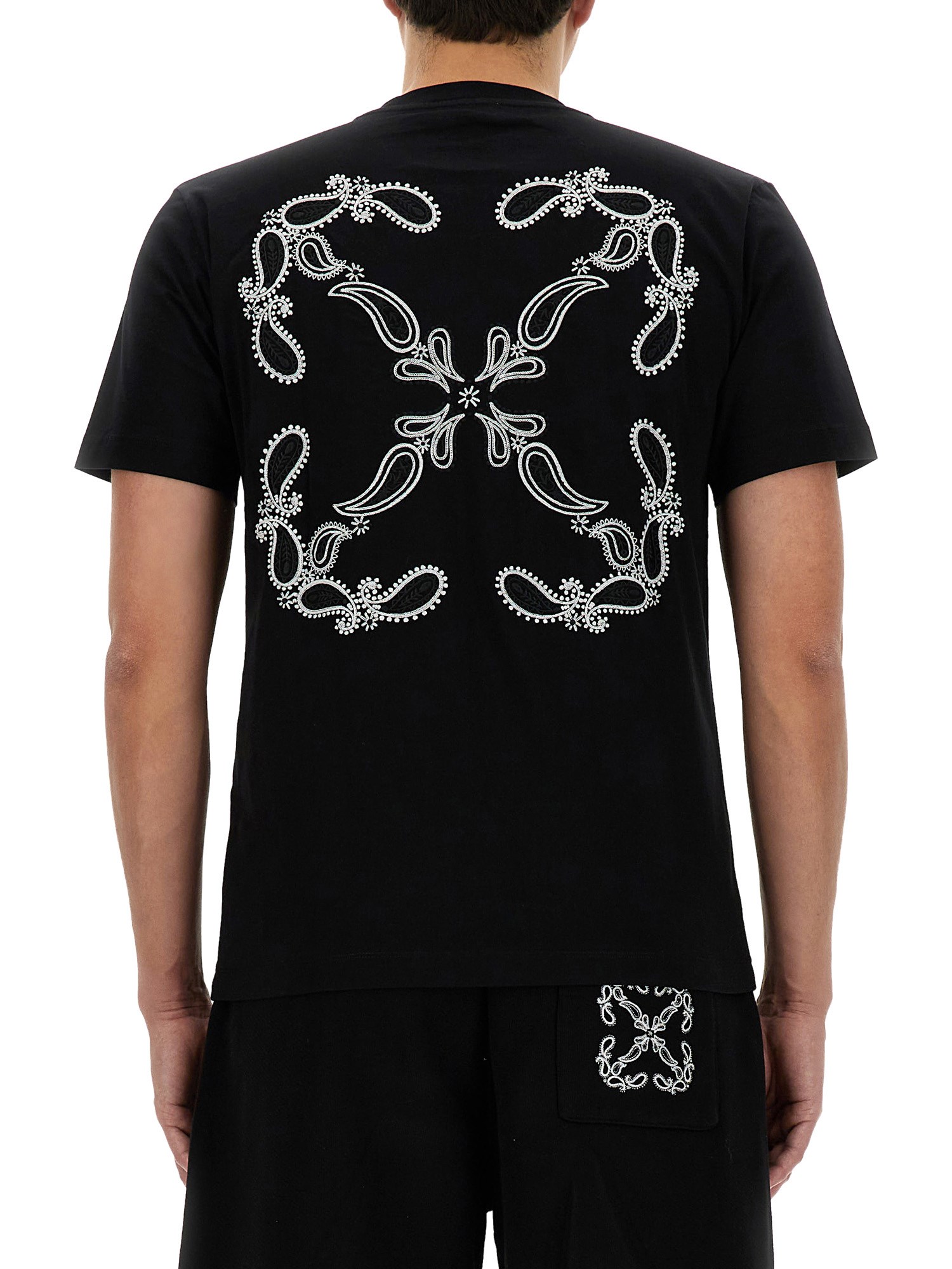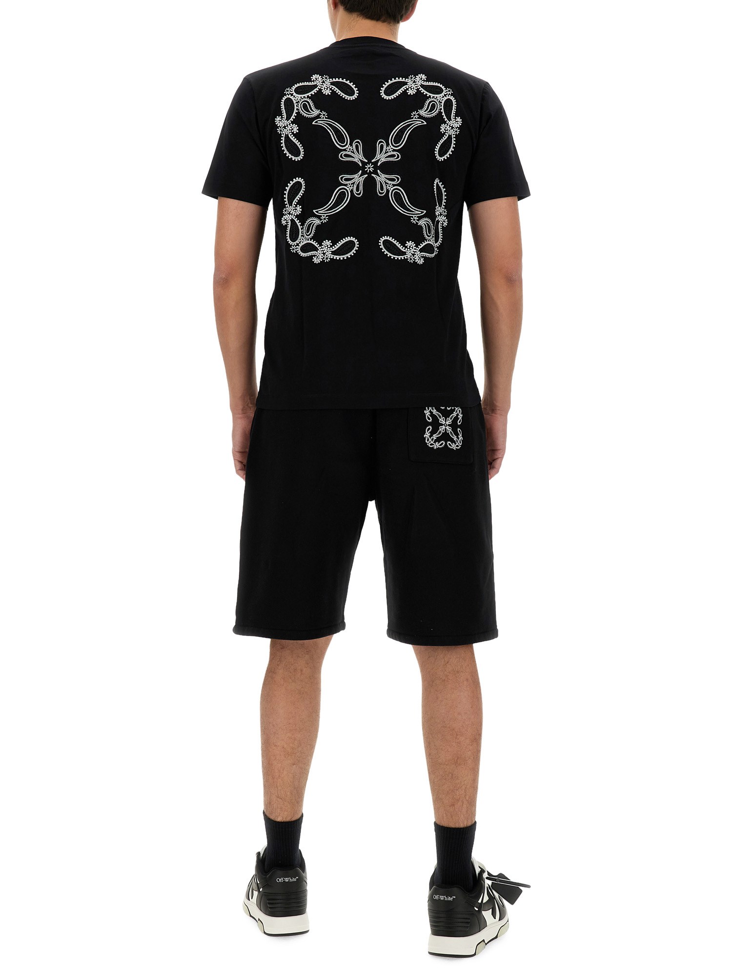 Elevate your streetwear style with this unique Bandana Pattern T-shirt from Off-White. Featuring a bold bandana print throughout the shirt, this piece combines edgy design with high-quality construction. Made from premium materials, this T-shirt offers both comfort and style, making it a must-have addition to your wardrobe. Stand out from the crowd with this eye-catching piece from Off-White.