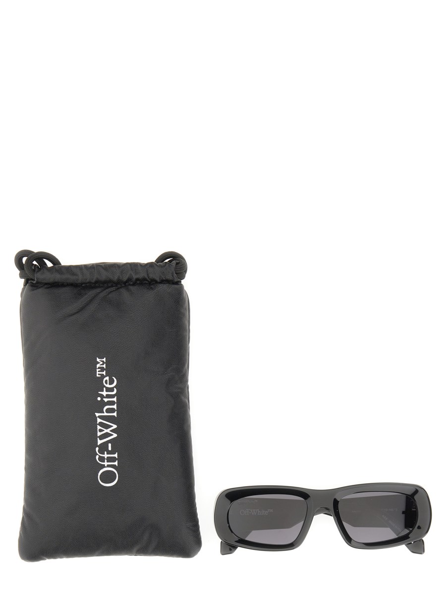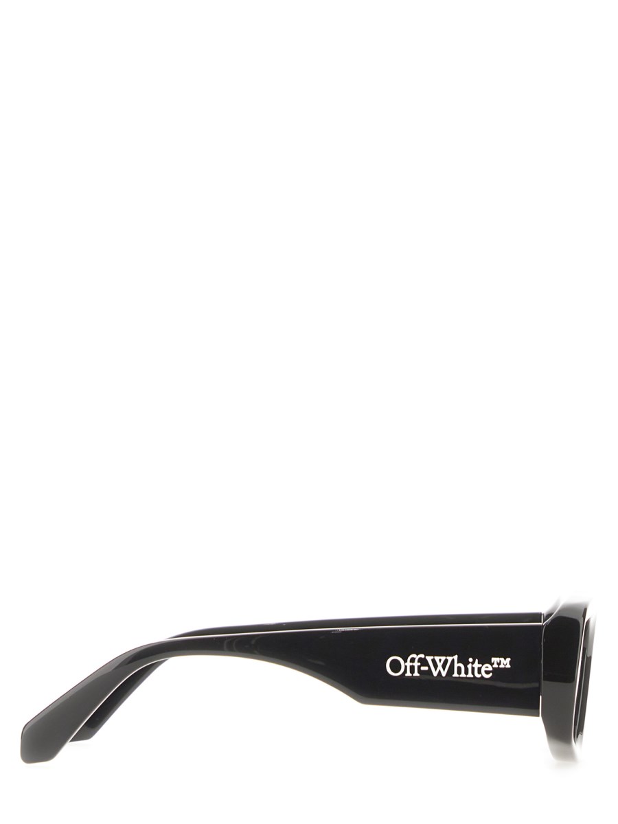 These acetate sunglasses from Off-White feature a large side logo that has a slightly distressed look and a black frame with mirrored lenses. The logo is a perfect addition to any outfit and will give your outfit a cool, edgy look. Luxurious acetate sunglasses that are both stylish and practical.