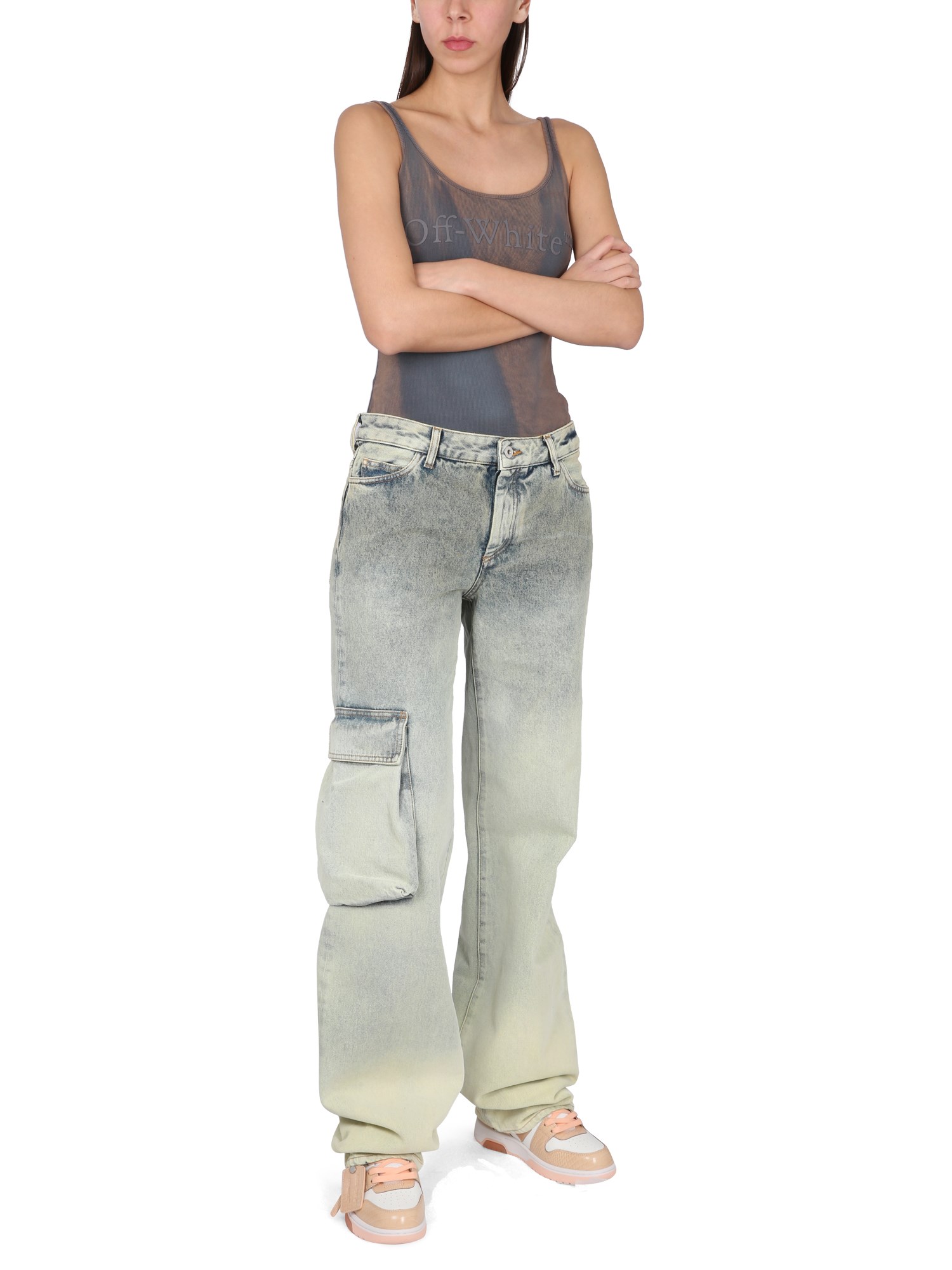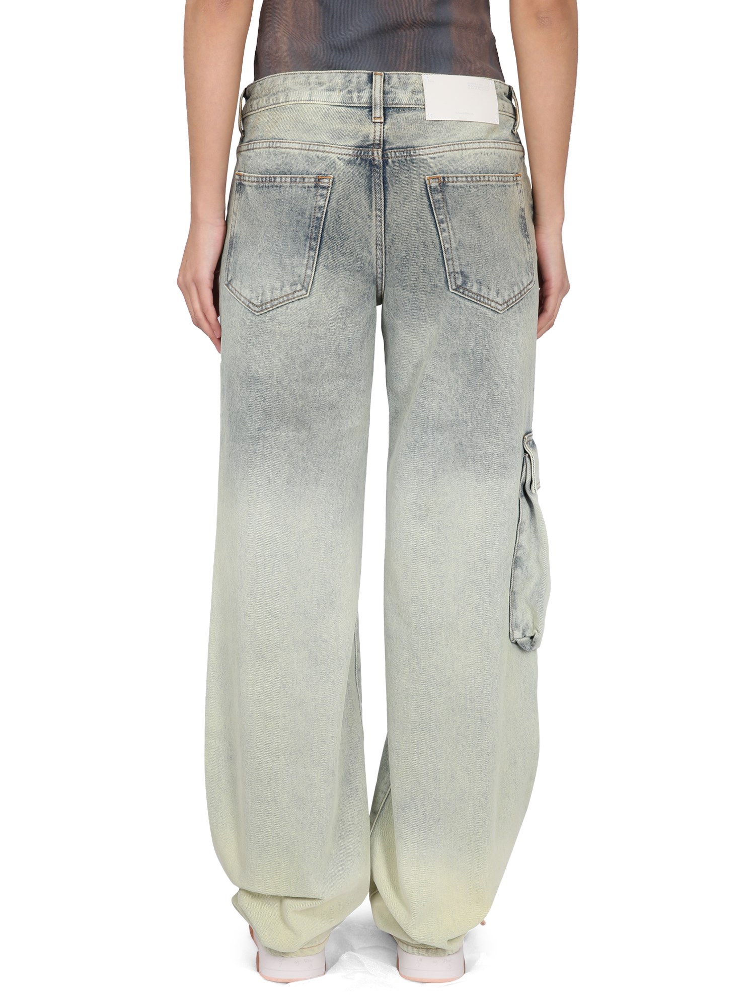 These five pocket jeans from Off-White are a basic, comfortable pair of denim for any occasion. These jeans feature a zipper closure and buttoned pockets for convenience. They are made from soft cotton denim that is comfortable and durable. hey are a great addition to your fall wardrobe and can be worn with a variety of outfits.