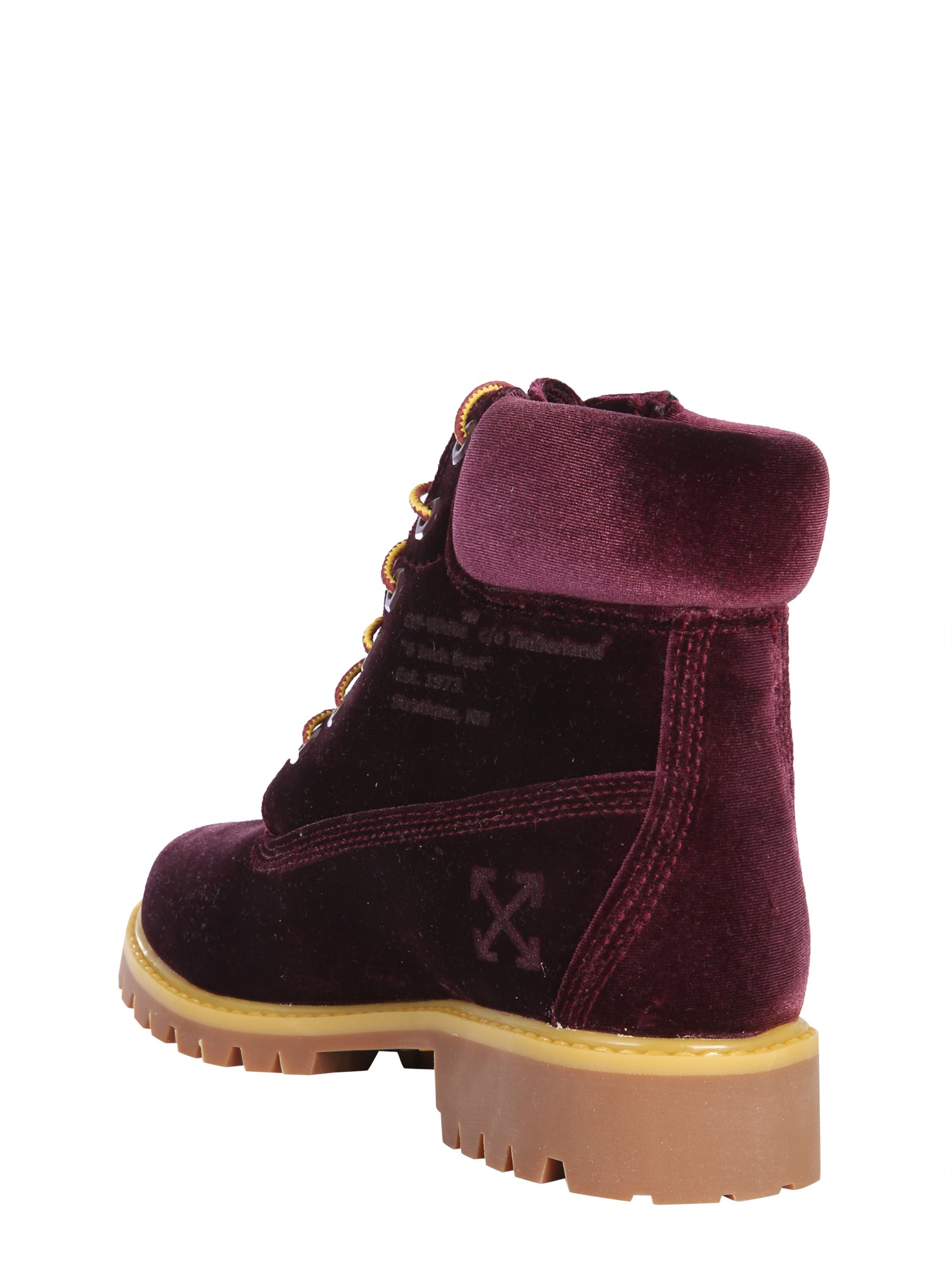 - PRODUCED BY THE COLLABORATION WITH TIMBERLAND, THE BOOTS PRESENT BOTH THE "TIMBERLAND" METAL LOGO, LETTERING LOGO, AND ARCHIVE "OFF WHITE" ICON PRINT.